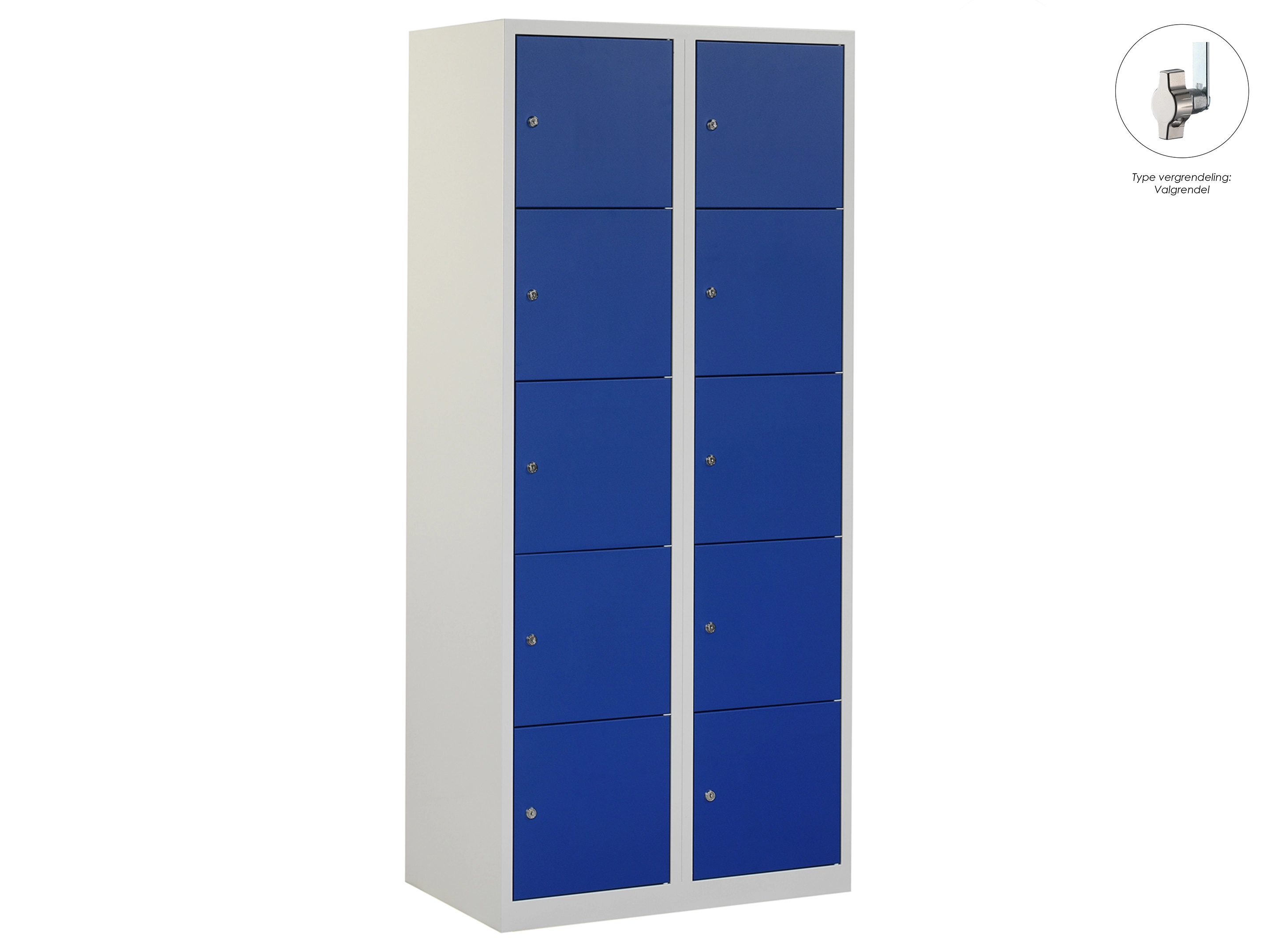 Locker PH - 2 kolomen, 10 deuren, 180x60x50 cm, grijs/blauw, valgrendel