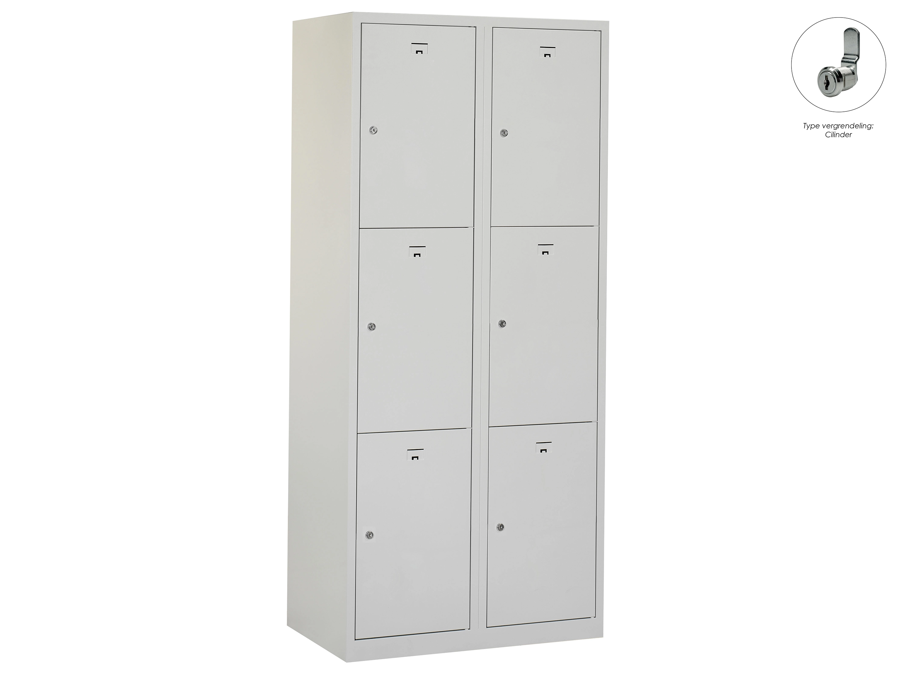 Locker PH - 2 kolomen, 6 deuren, 180x80x50 cm, grijs/grijs, cilinder