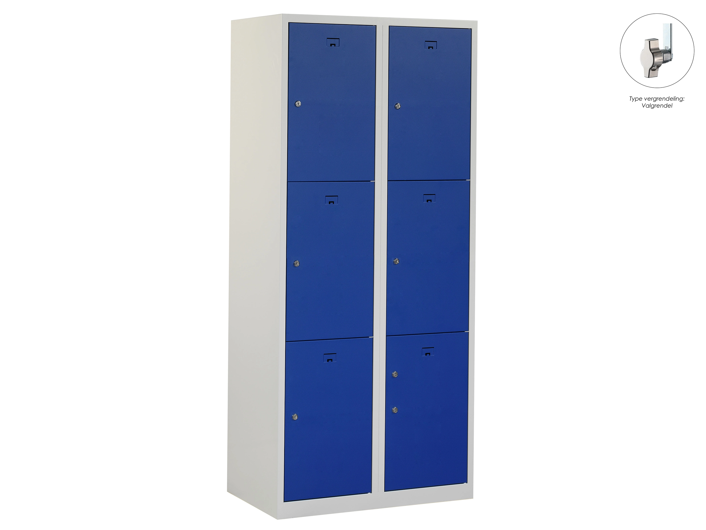 Locker PH - 2 kolomen, 6 deuren, 180x80x50 cm, grijs/blauw, valgrendel