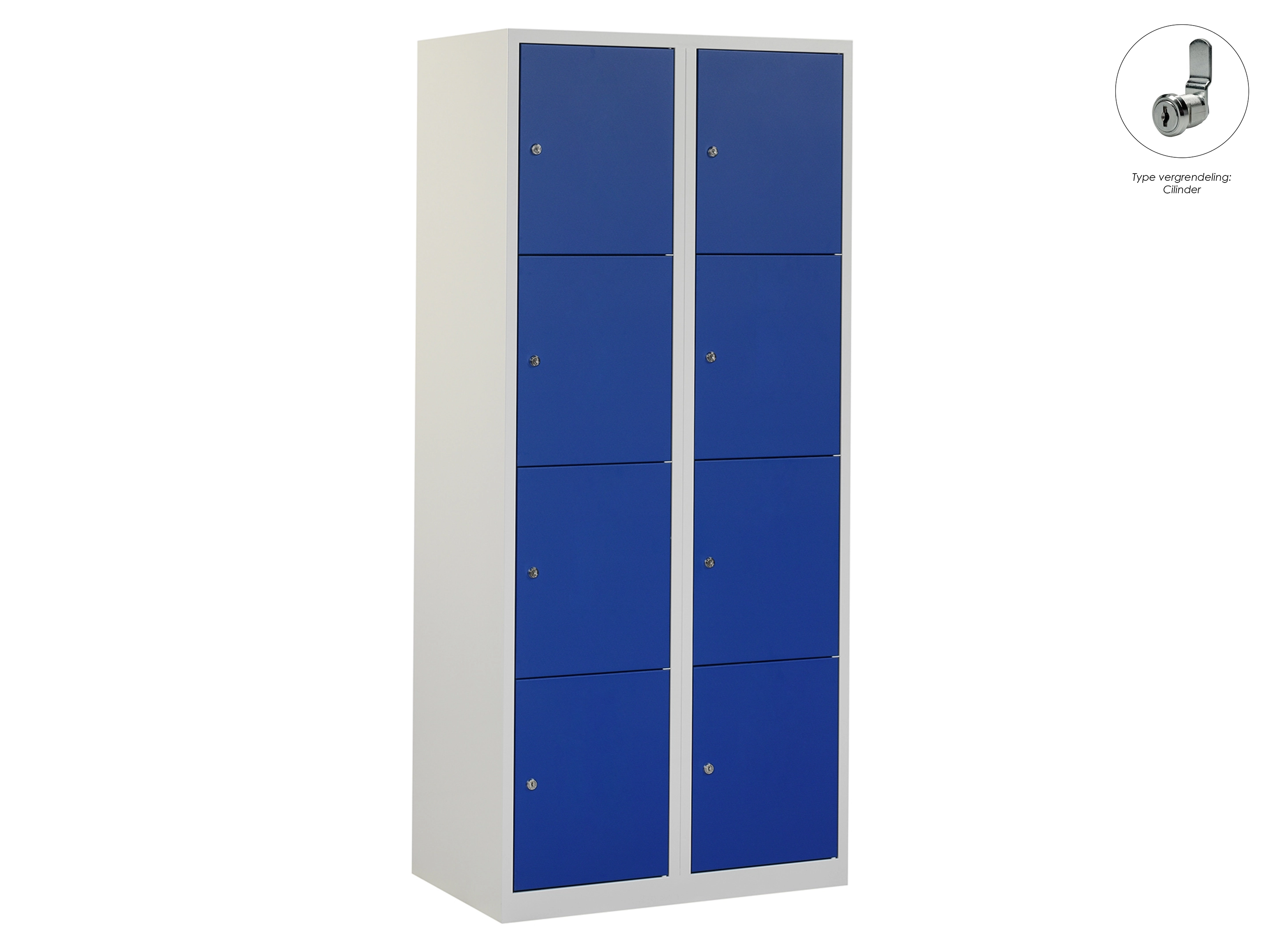 Locker PH - 2 kolomen, 8 deuren, 180x60x50 cm, grijs/blauw, cilinder