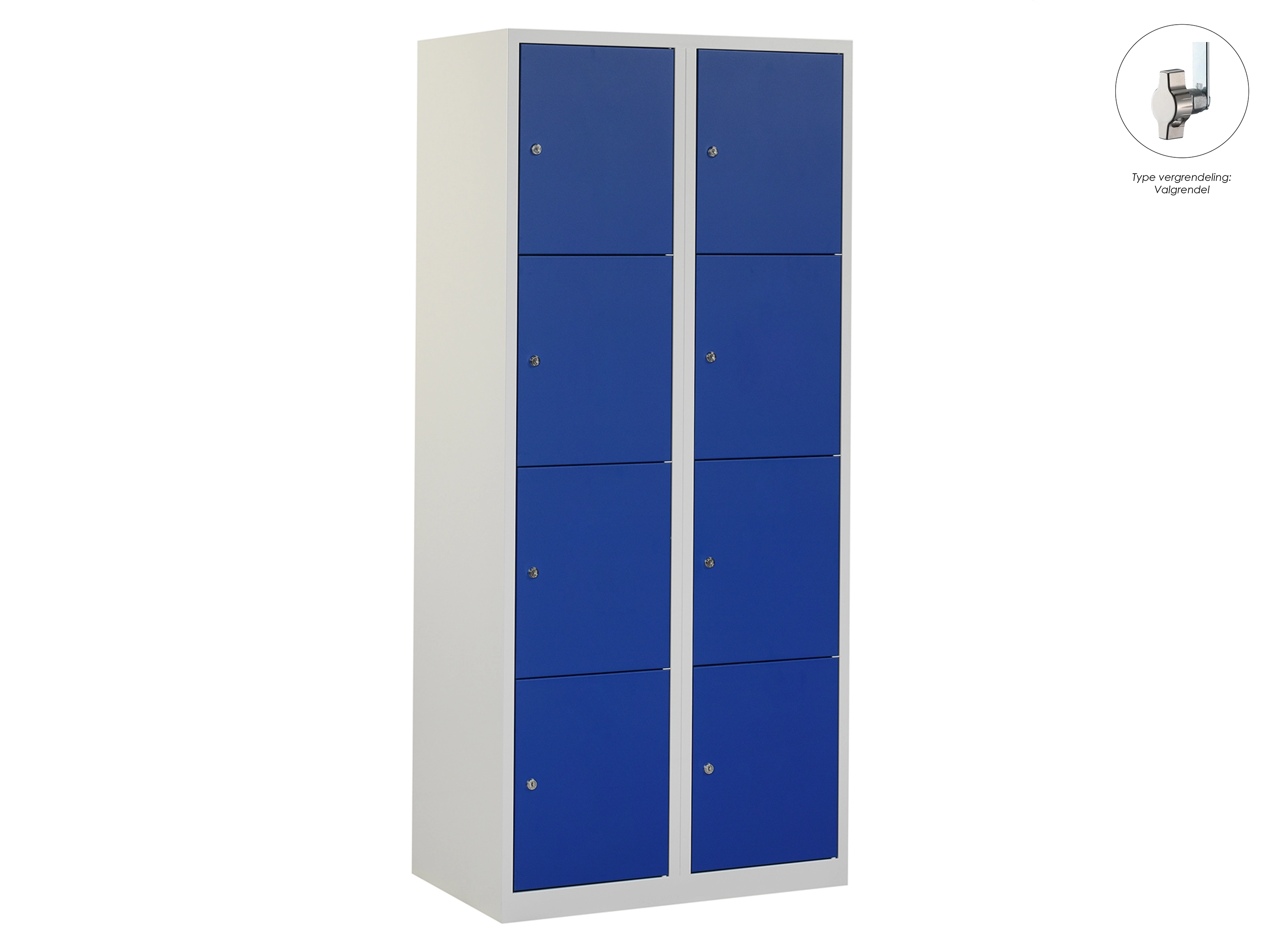Locker PH - 2 kolomen, 8 deuren, 180x80x50 cm, grijs/blauw, valgrendel