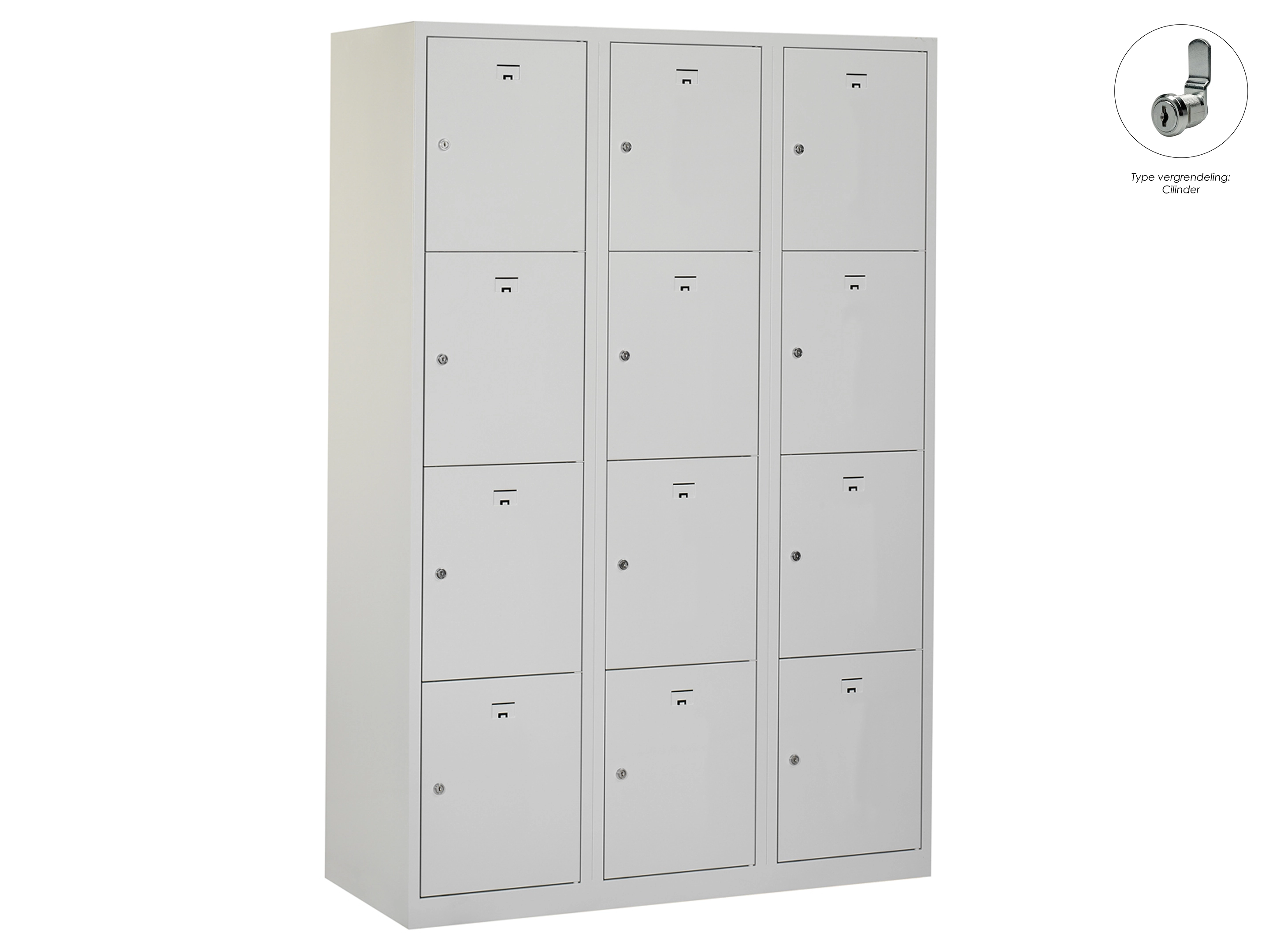 Locker PH - 3 kolomen, 12 deuren, 180x120x50 cm, grijs/grijs, cilinder
