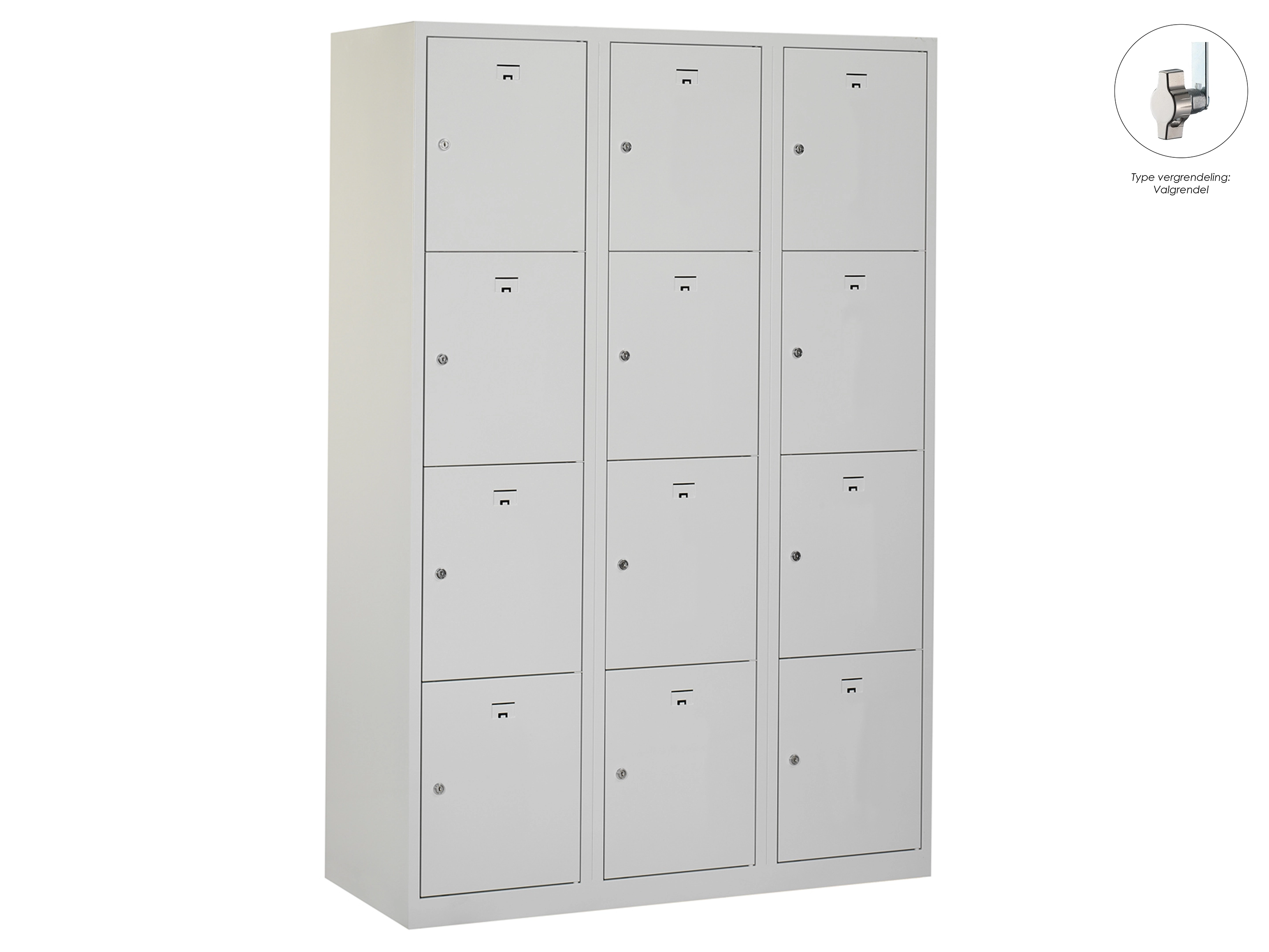 Locker PH - 3 kolomen, 12 deuren, 180x120x50 cm, grijs/grijs, valgrendel