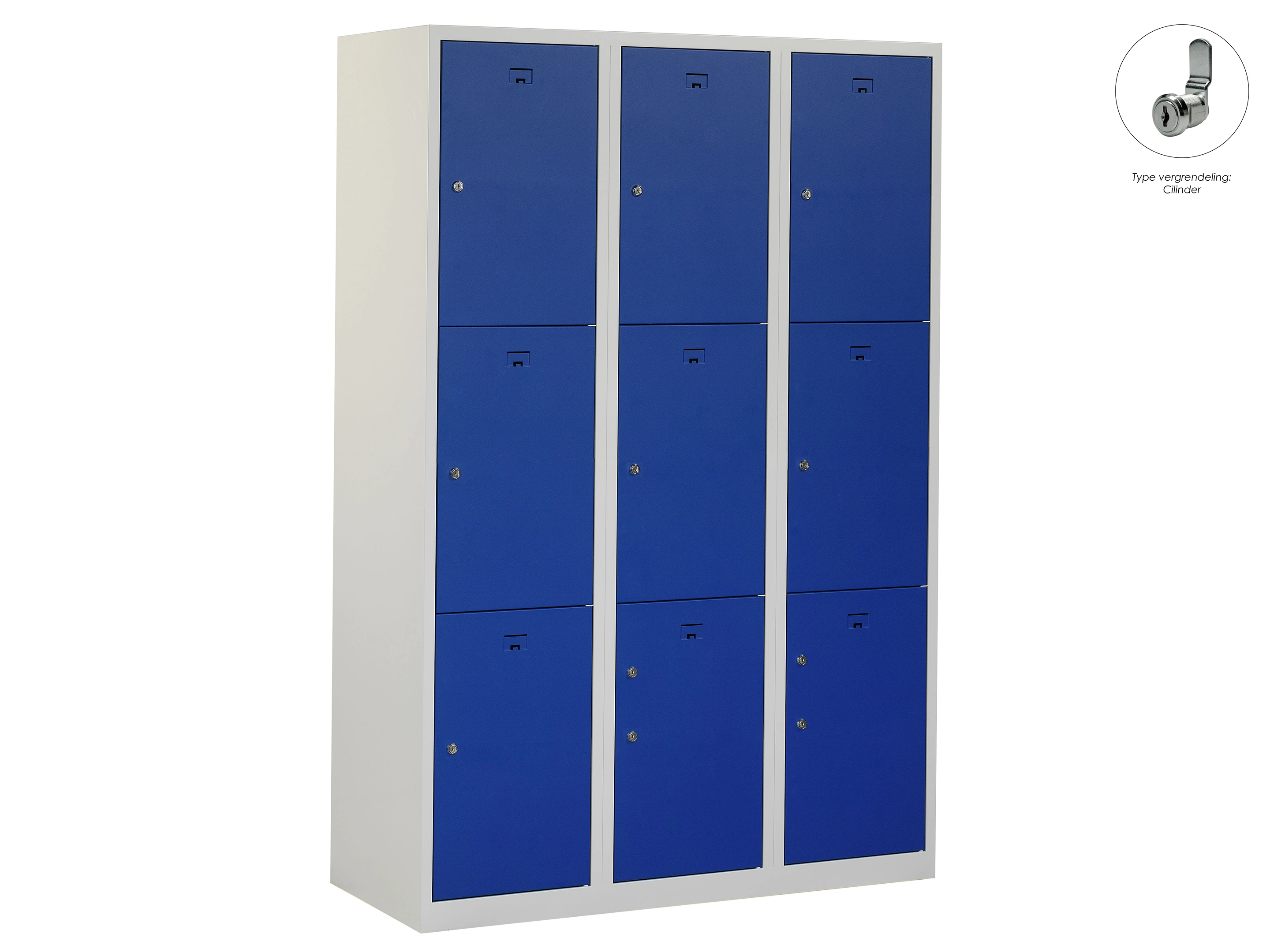 Locker PH - 3 kolomen, 9 deuren, 180x120x50 cm, grijs/blauw, cilinder