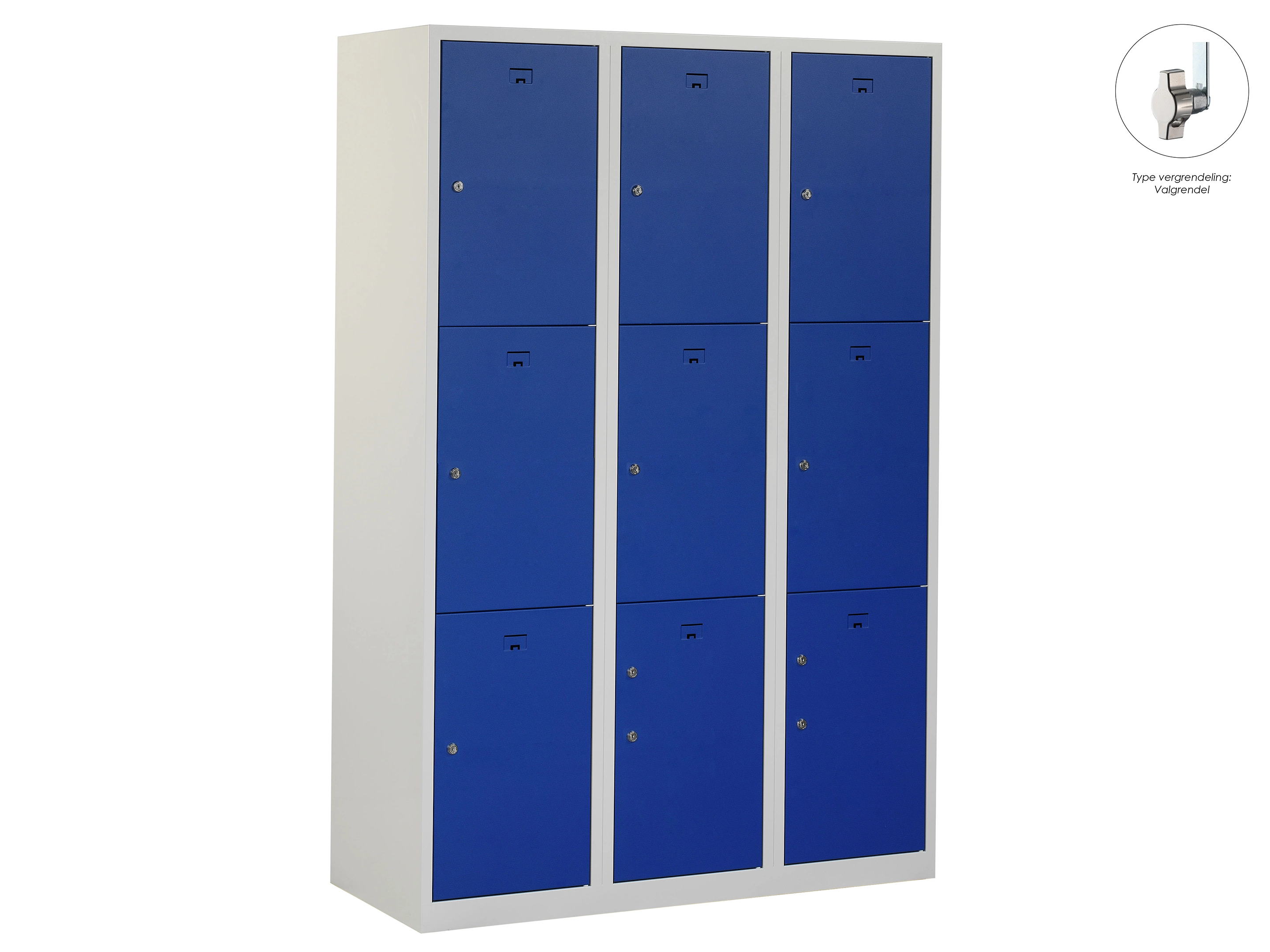 Locker PH - 3 kolomen, 9 deuren, 180x120x50 cm, grijs/blauw, valgrendel