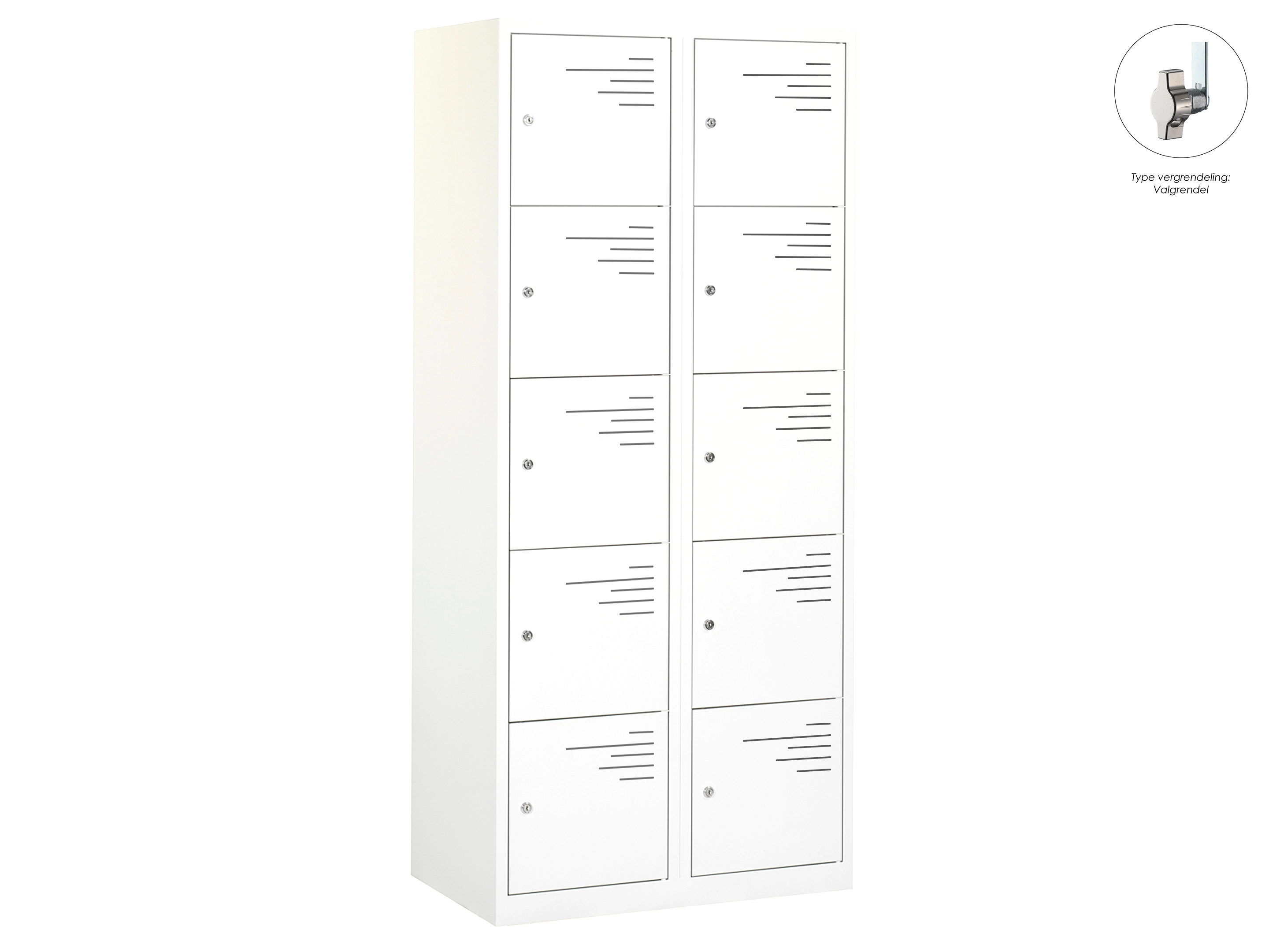 Locker Stripe - 2 kolomen, 10 deuren, 180x80x50 cm, wit/wit, valgrendel