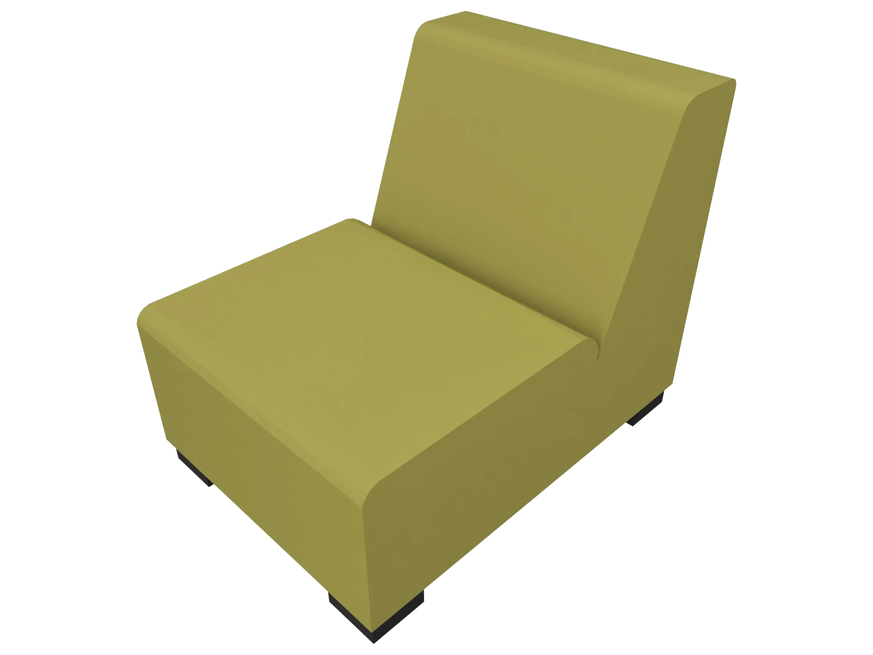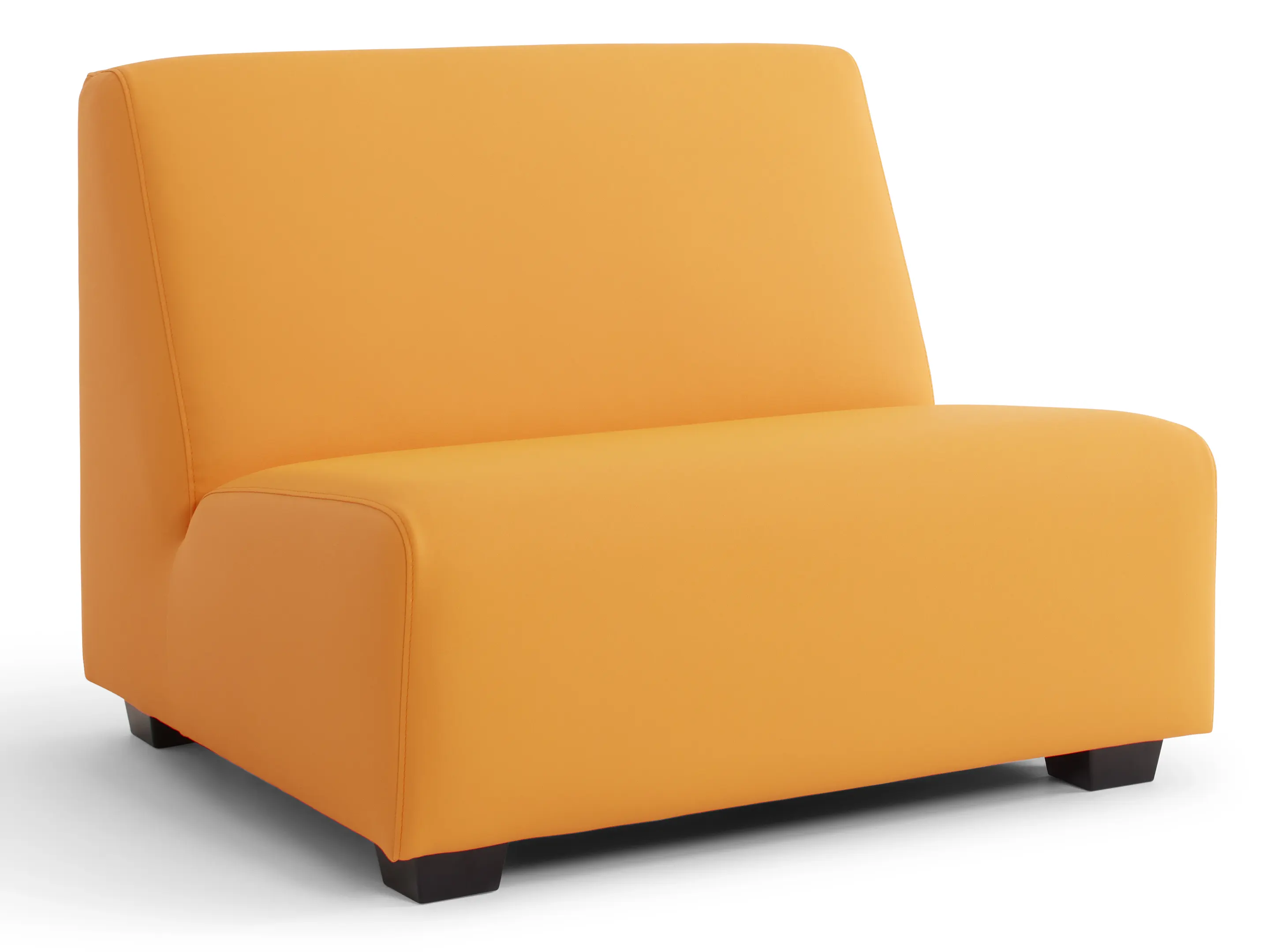 Volledig gestoffeerde 1,5-zits bank, zonder armleggers. Standaard zithoogte 360mm (op 60mm hoge PVC meubelpoot). Afmeting: 900 x 710 x 840mm (BxHxD)