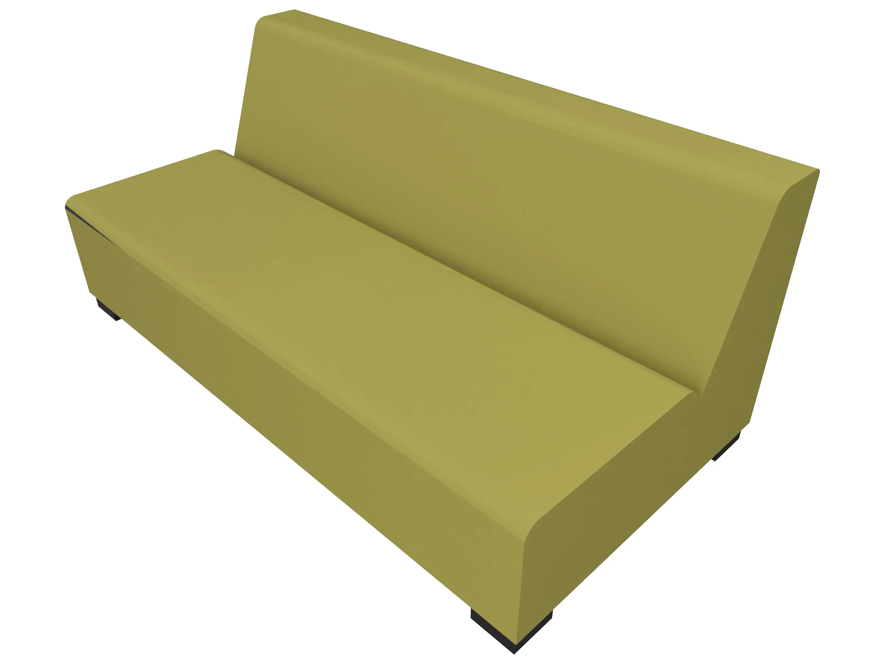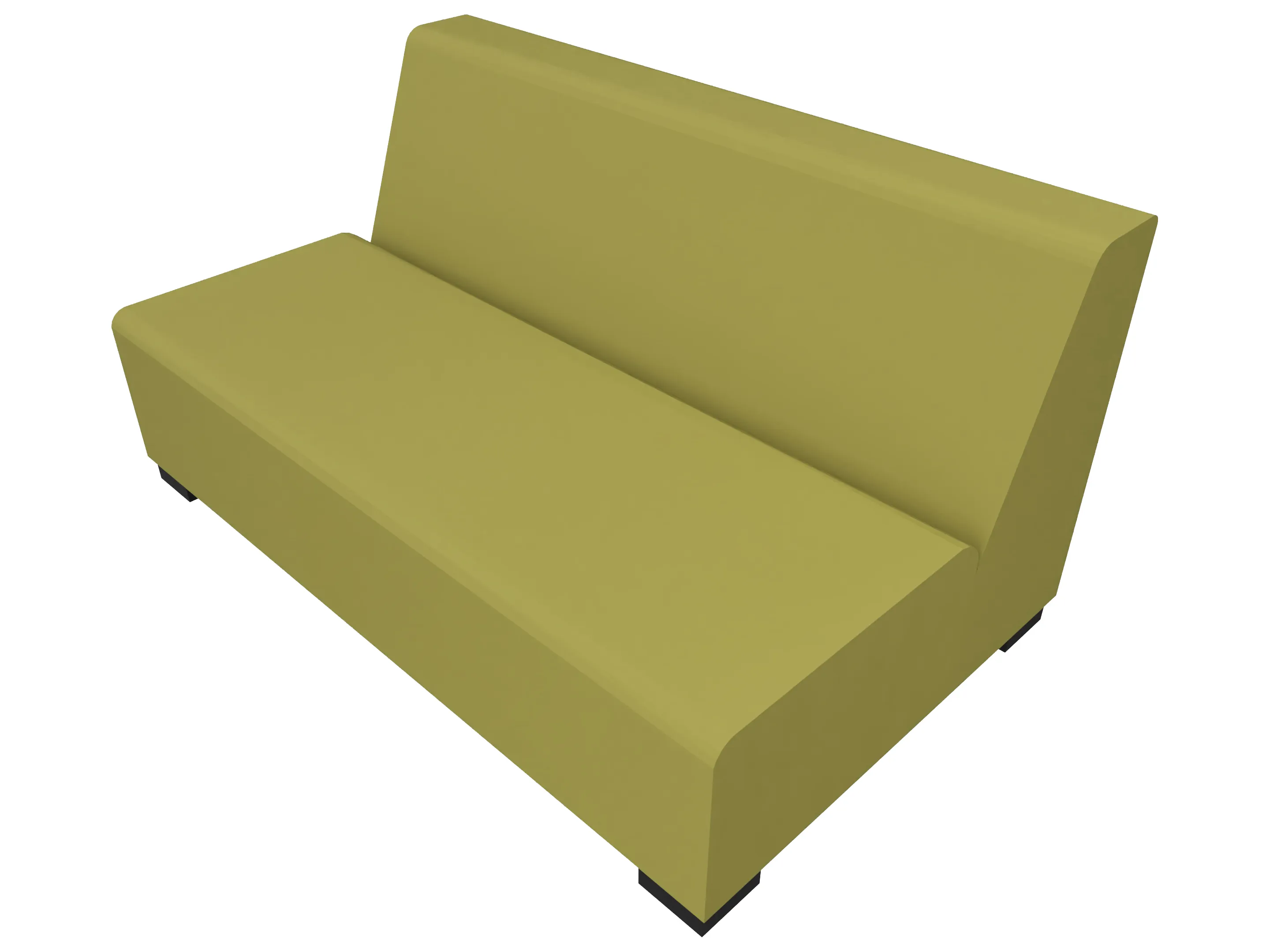 Volledig gestoffeerde 2-zits bank, zonder armleggers. Standaard zithoogte 360mm (op 60mm hoge PVC meubelpoot). Afmeting: 1200 x 710 x 840mm (BxHxD)