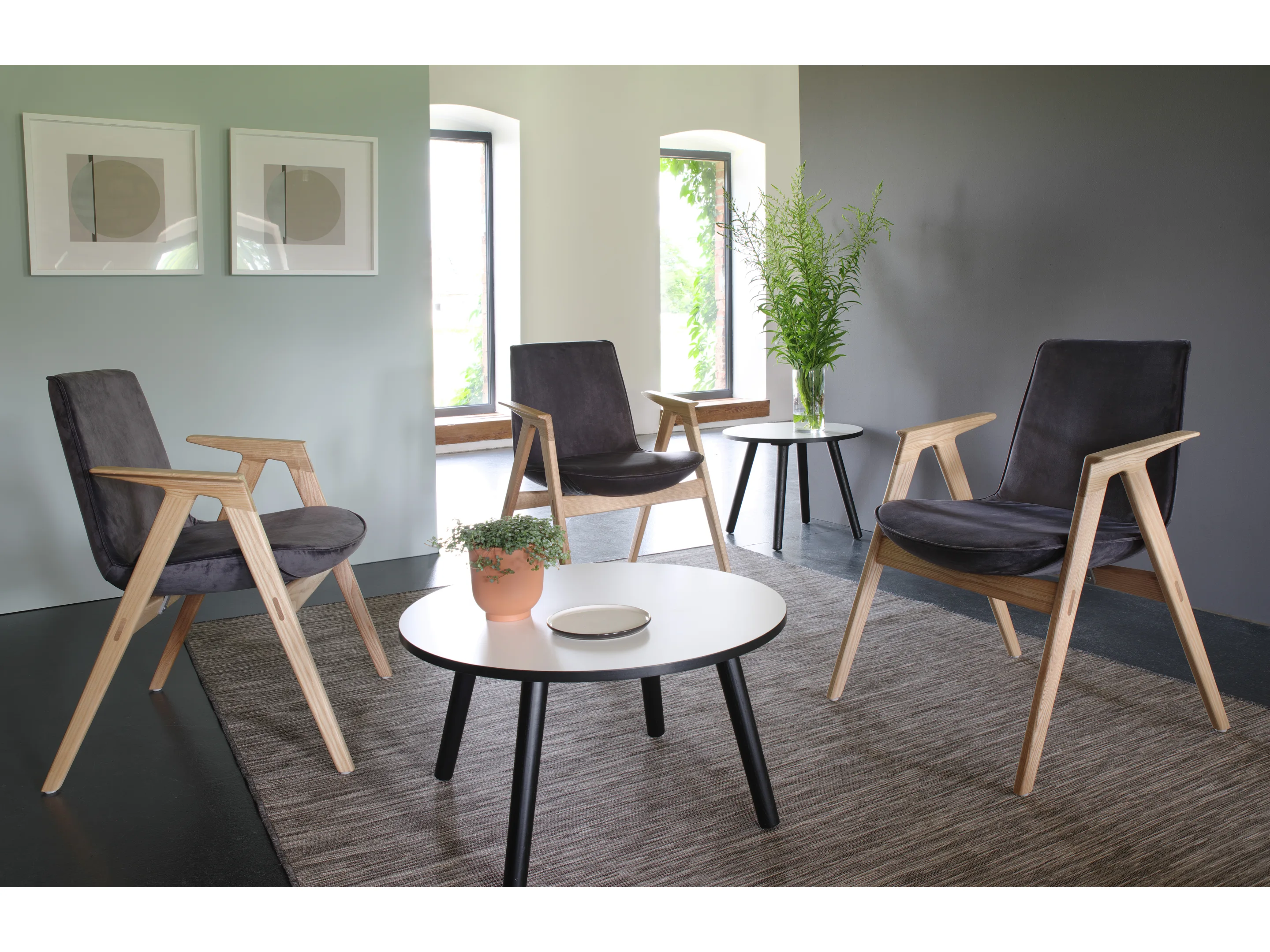 Stoel met sledeframe inclusief armleggers, volledig gestoffeerde kuip met 730mm hoge rugleuning. Armleggers zijn PU (kunststof)