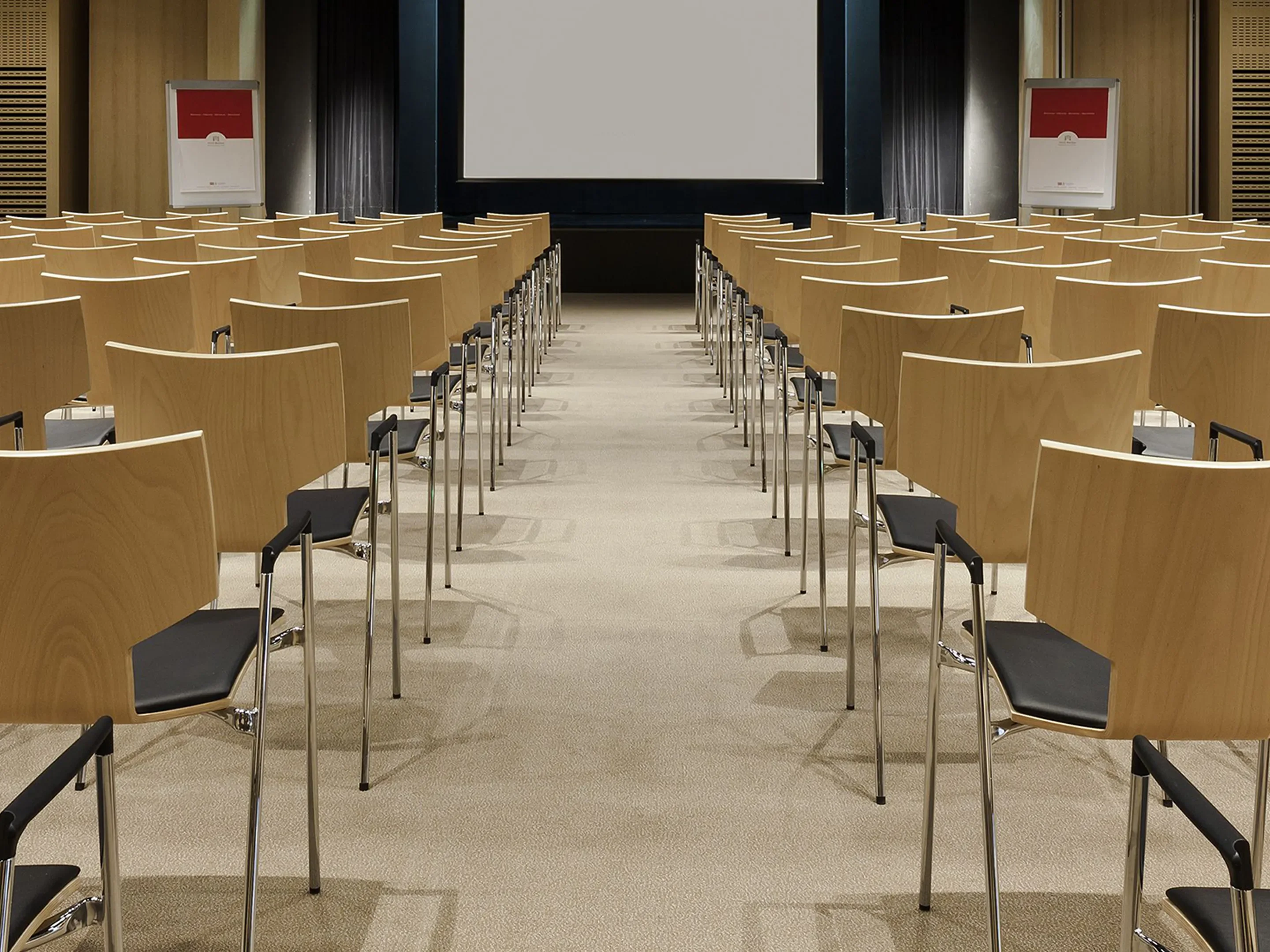 4-poots koppelbaar frame op kunststof glijders met een volledig gestoffeerde kuip. Inclusief armleggers. Stapelbaar tot 12 stuks op transportwagen (verticaal stapelbaar) en 6 stuks vrijstaand.