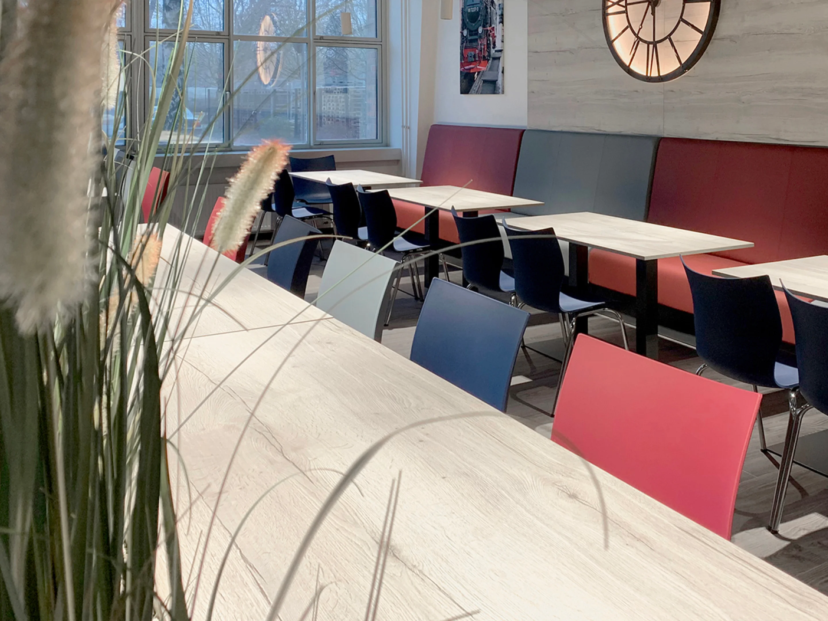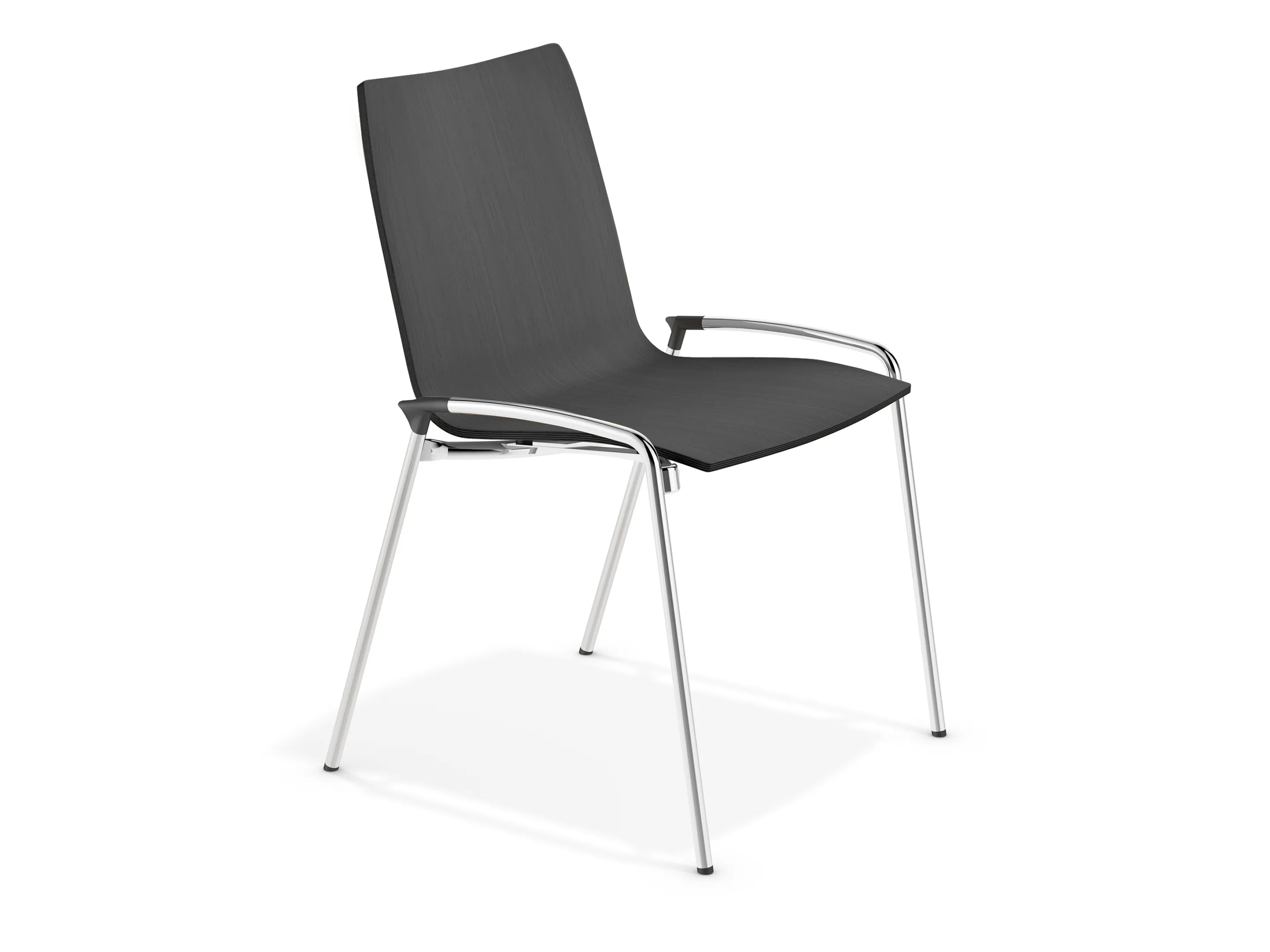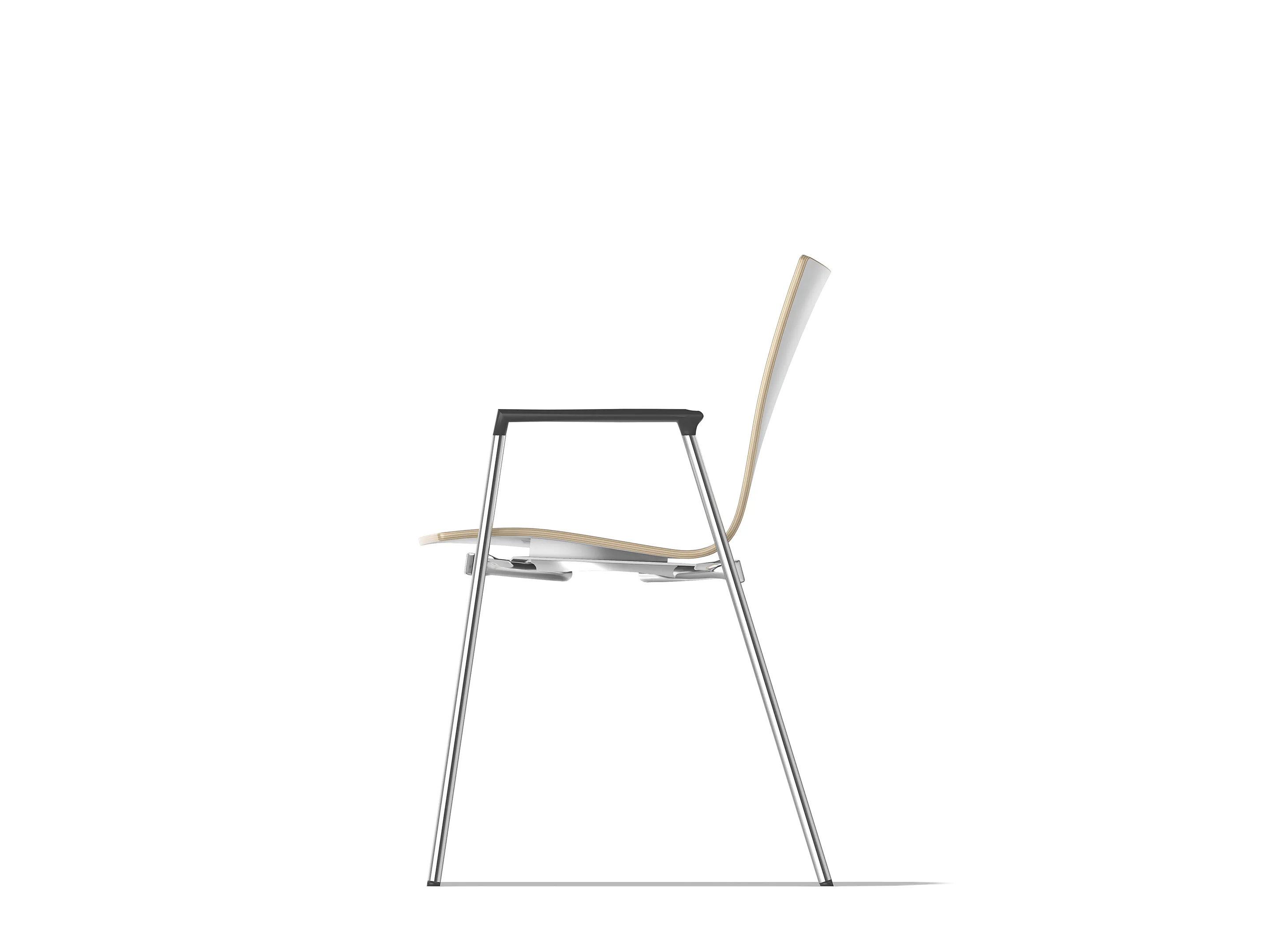 4-poots koppelbaar frame op kunststof glijders met een CPL kuip. Inclusief armleggers. Stapelbaar tot 12 stuks op transportwagen (verticaal stapelbaar) en 6 stuks vrijstaand.