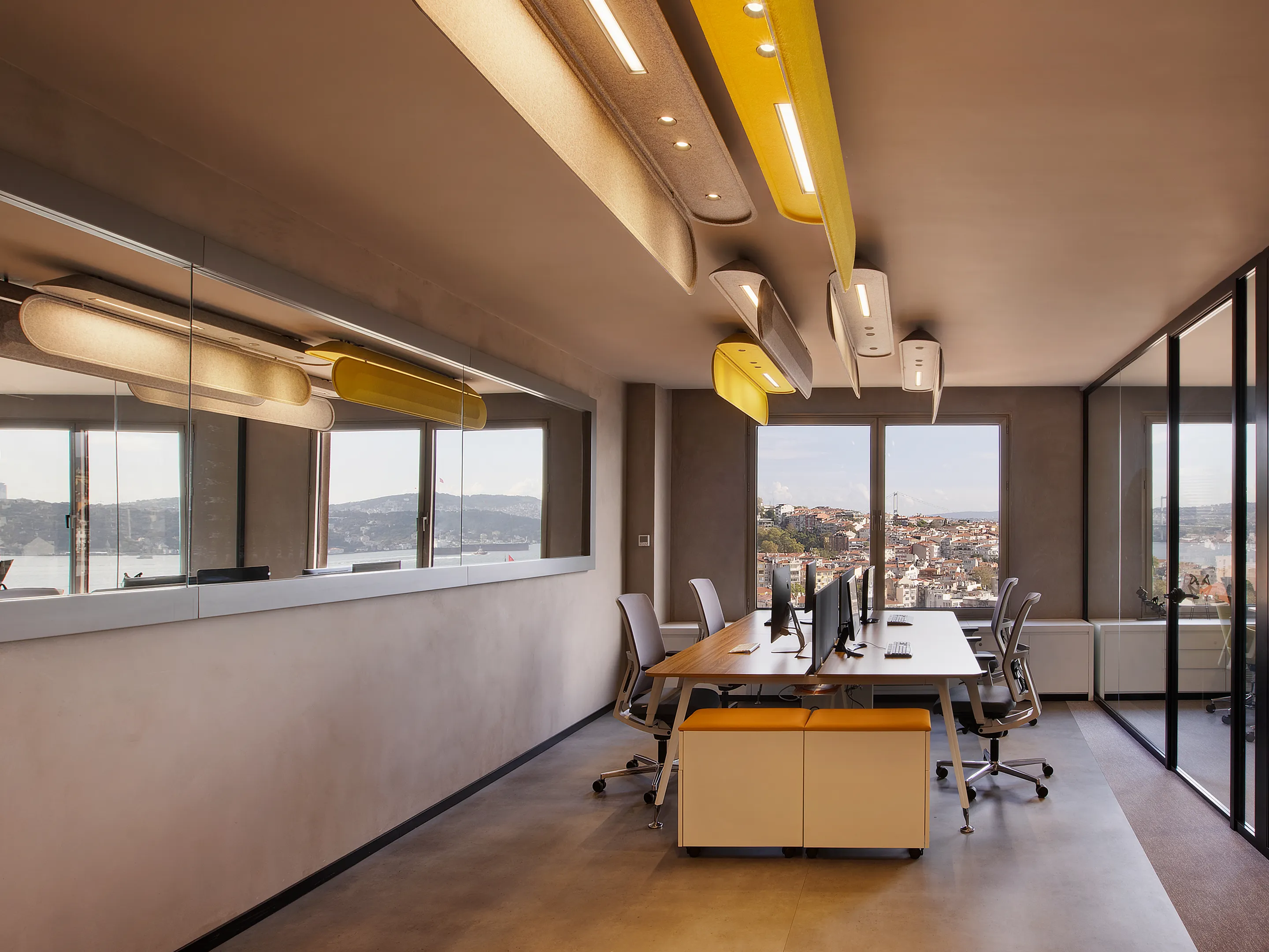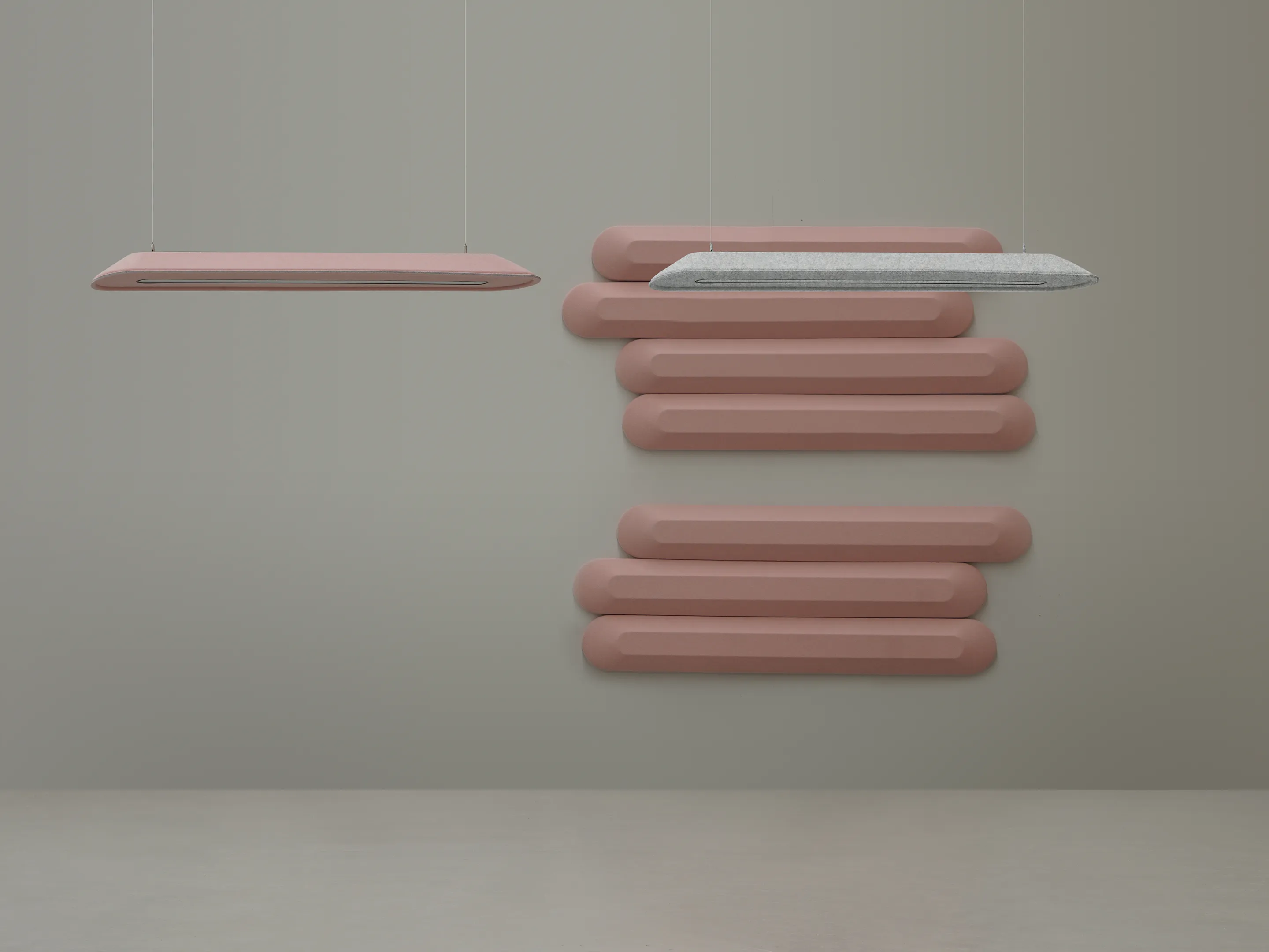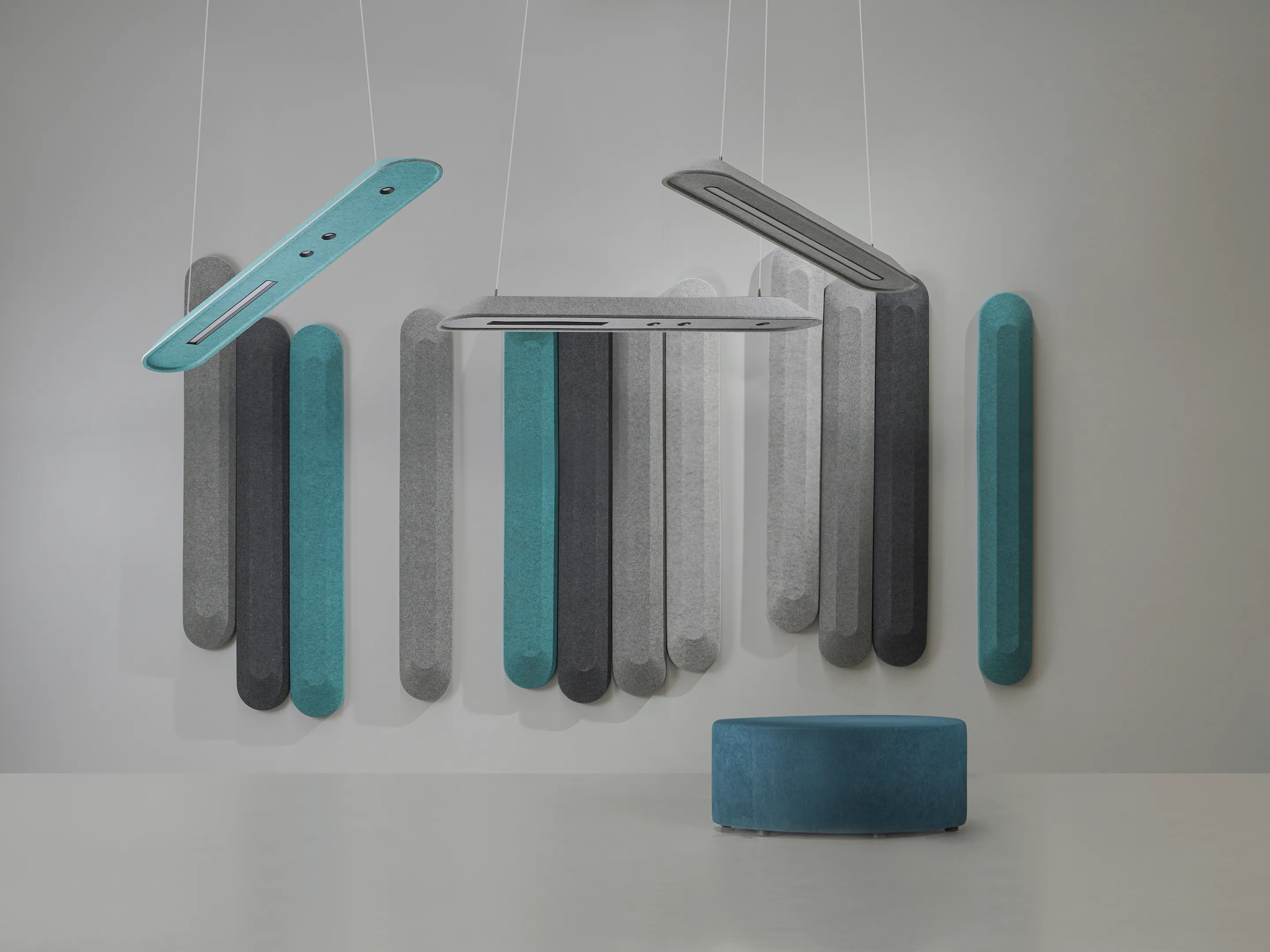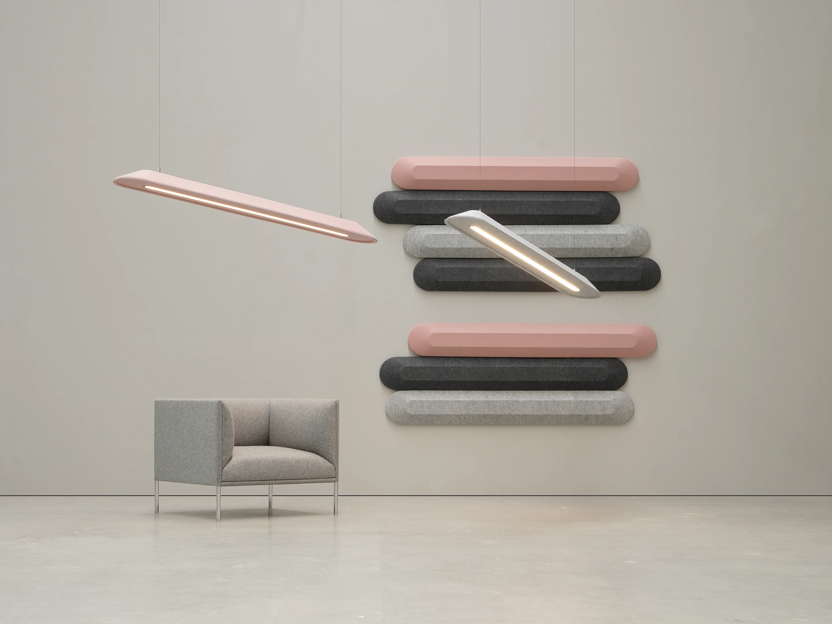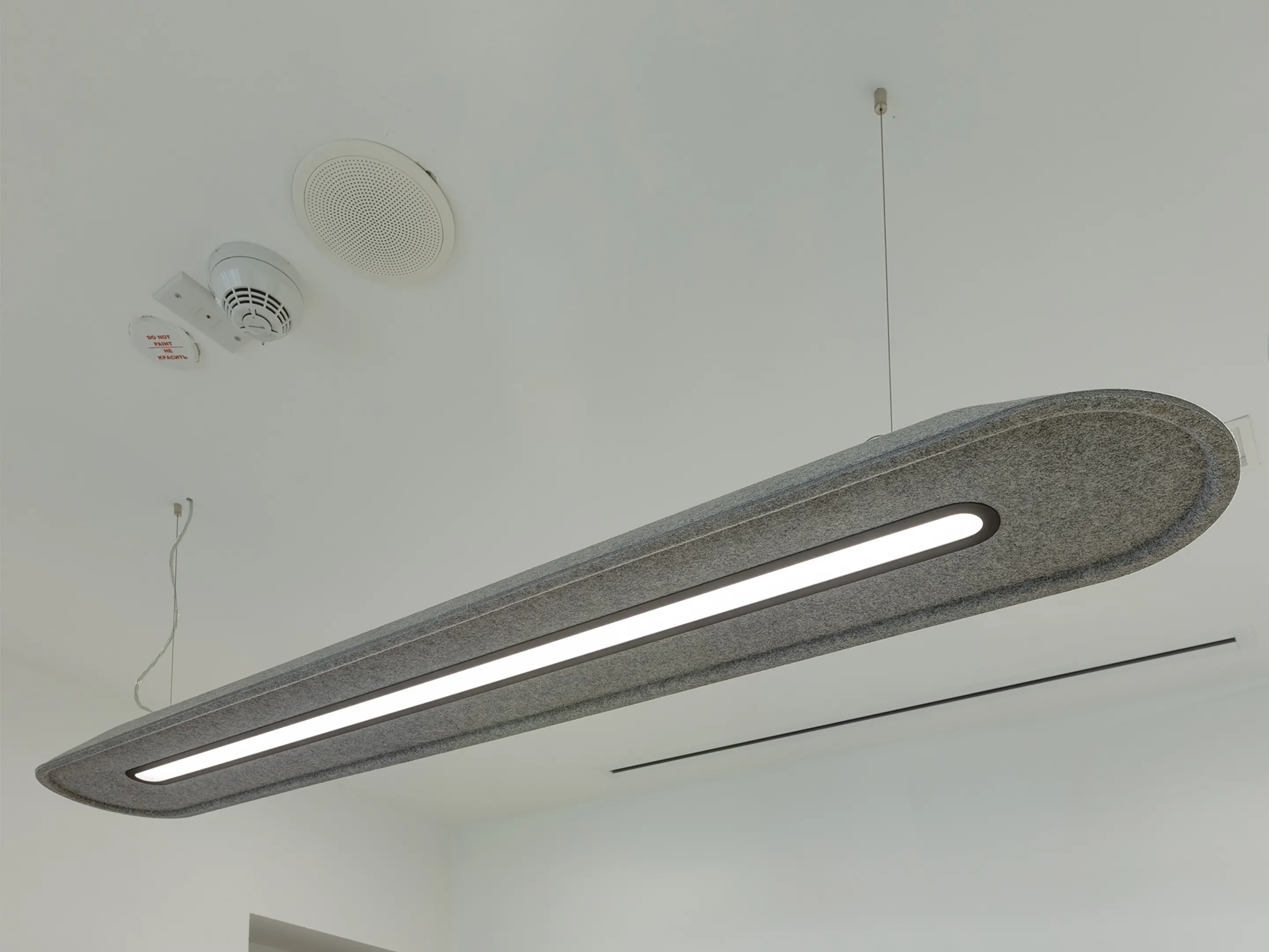 Akoestische hanglamp incl. 33W LED lijnverlichting. Incl. frame, ophangset en installatiehandleiding.
