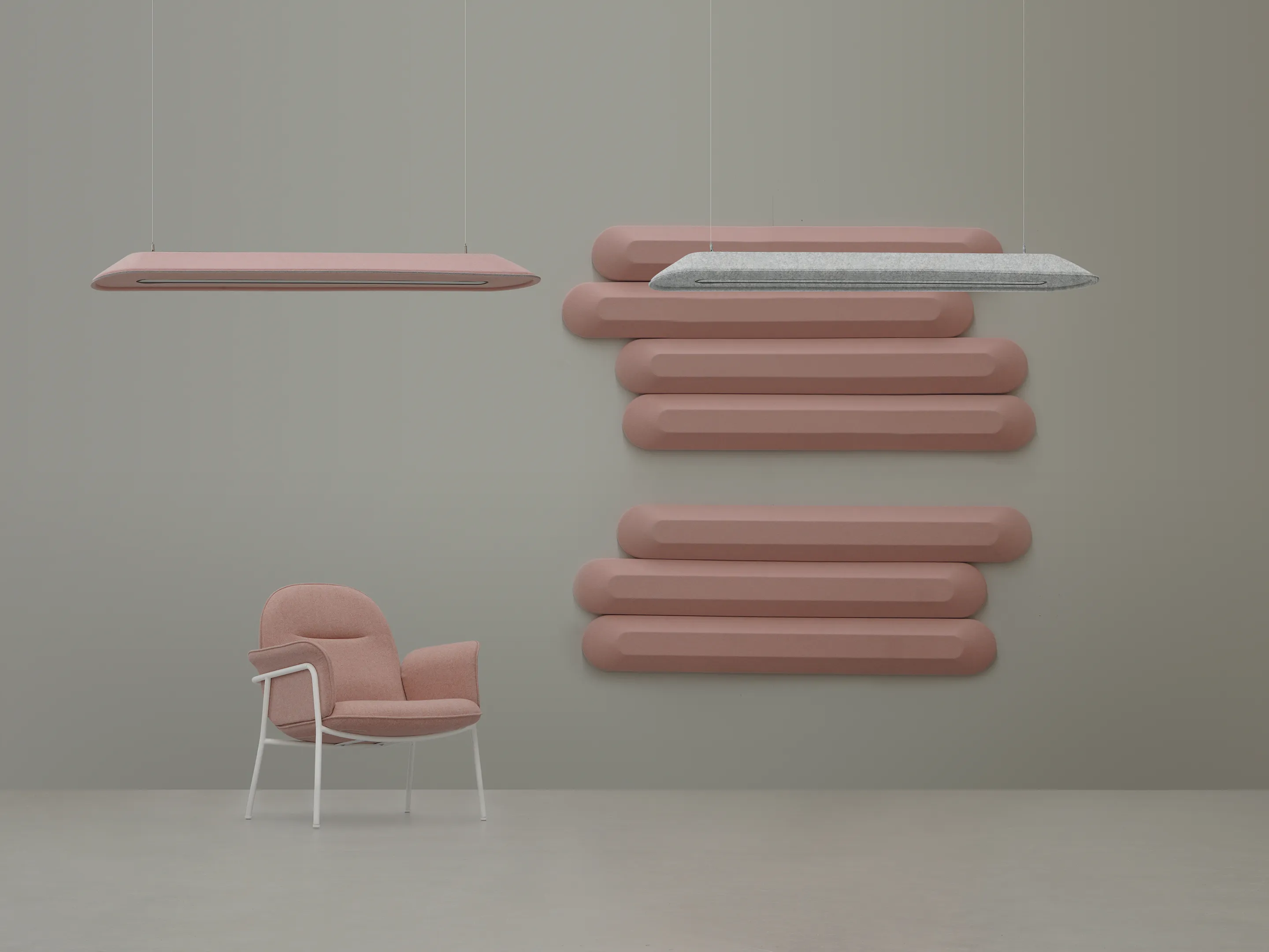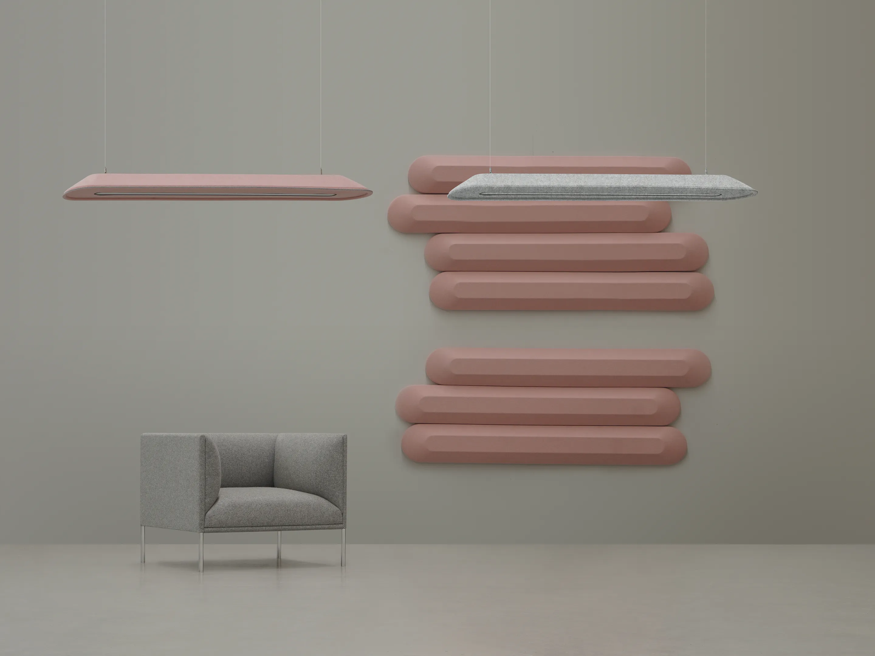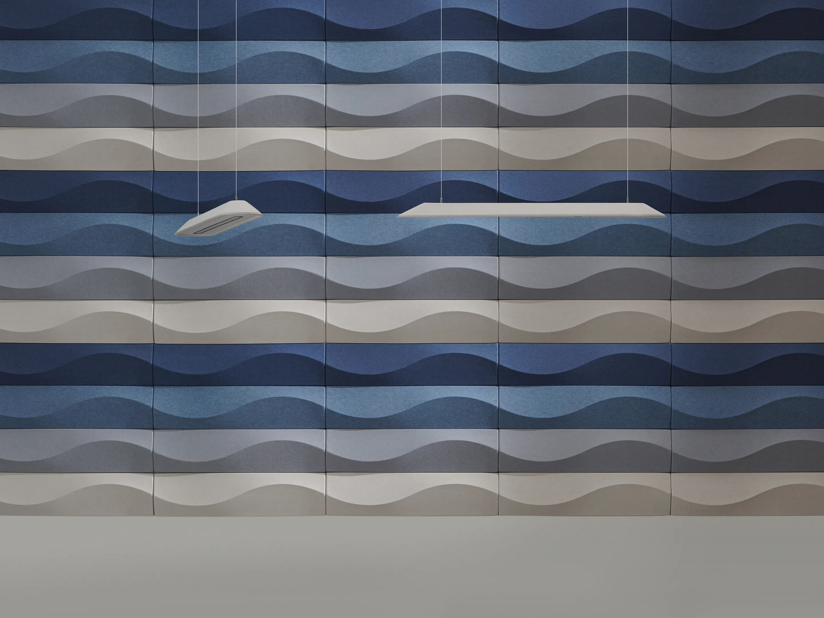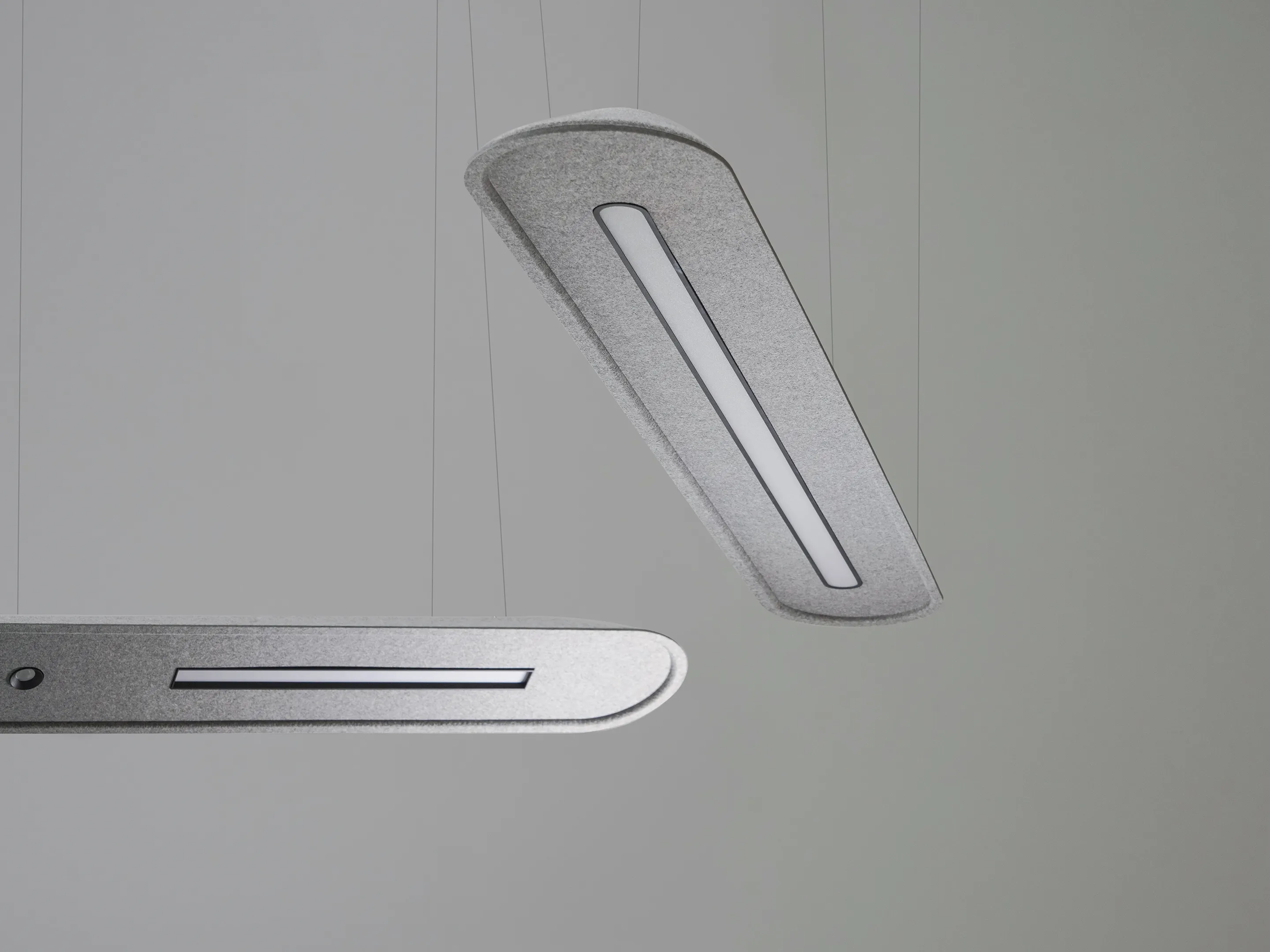 Akoestische hanglamp incl. dimbare 33W LED lijnverlichting. Incl. frame, ophangset en installatiehandleiding.