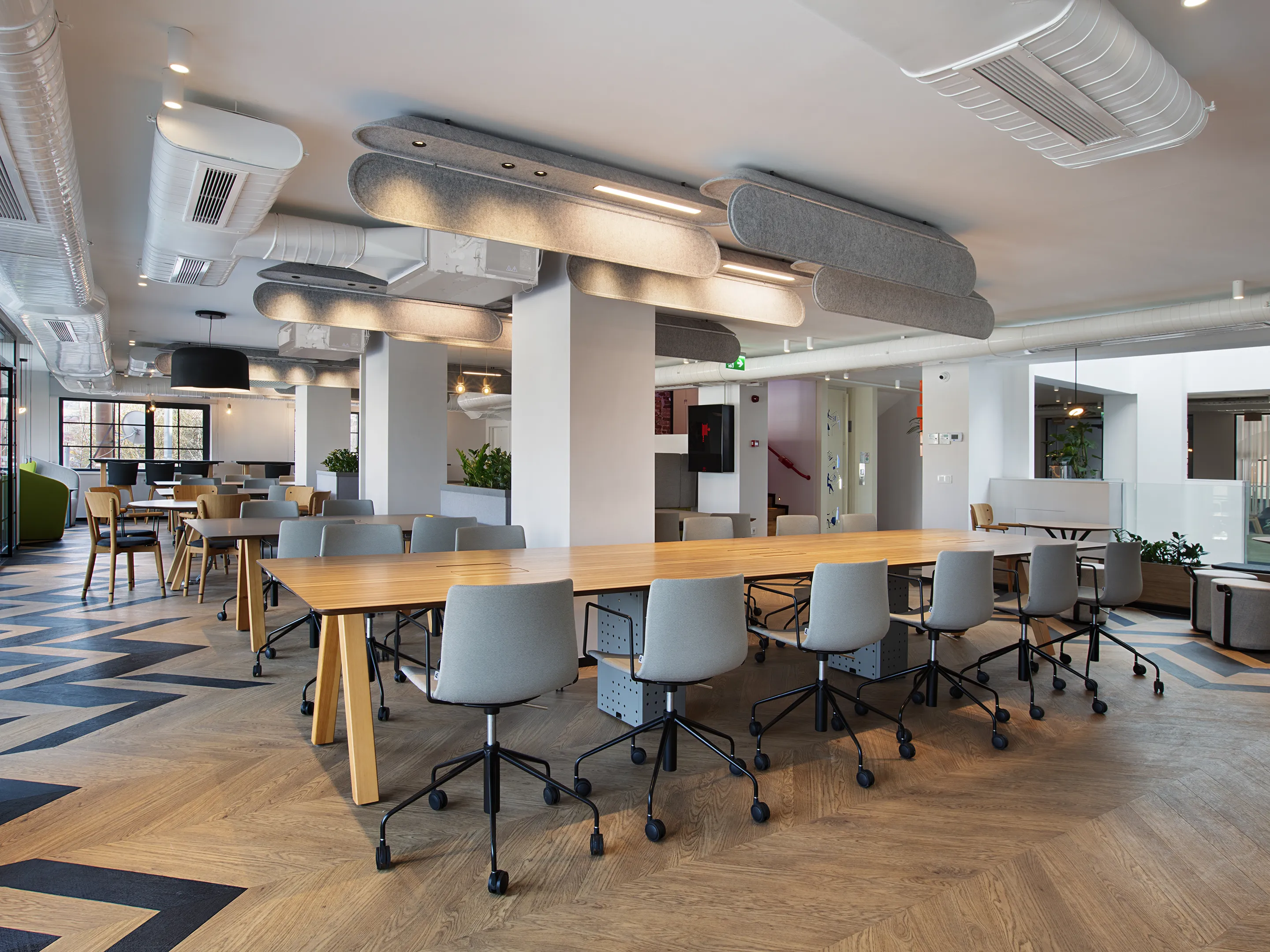Akoestische hanglamp incl. dimbare 25W LED lijn- en spotverlichting. Incl. frame, ophangset en installatiehandleiding.