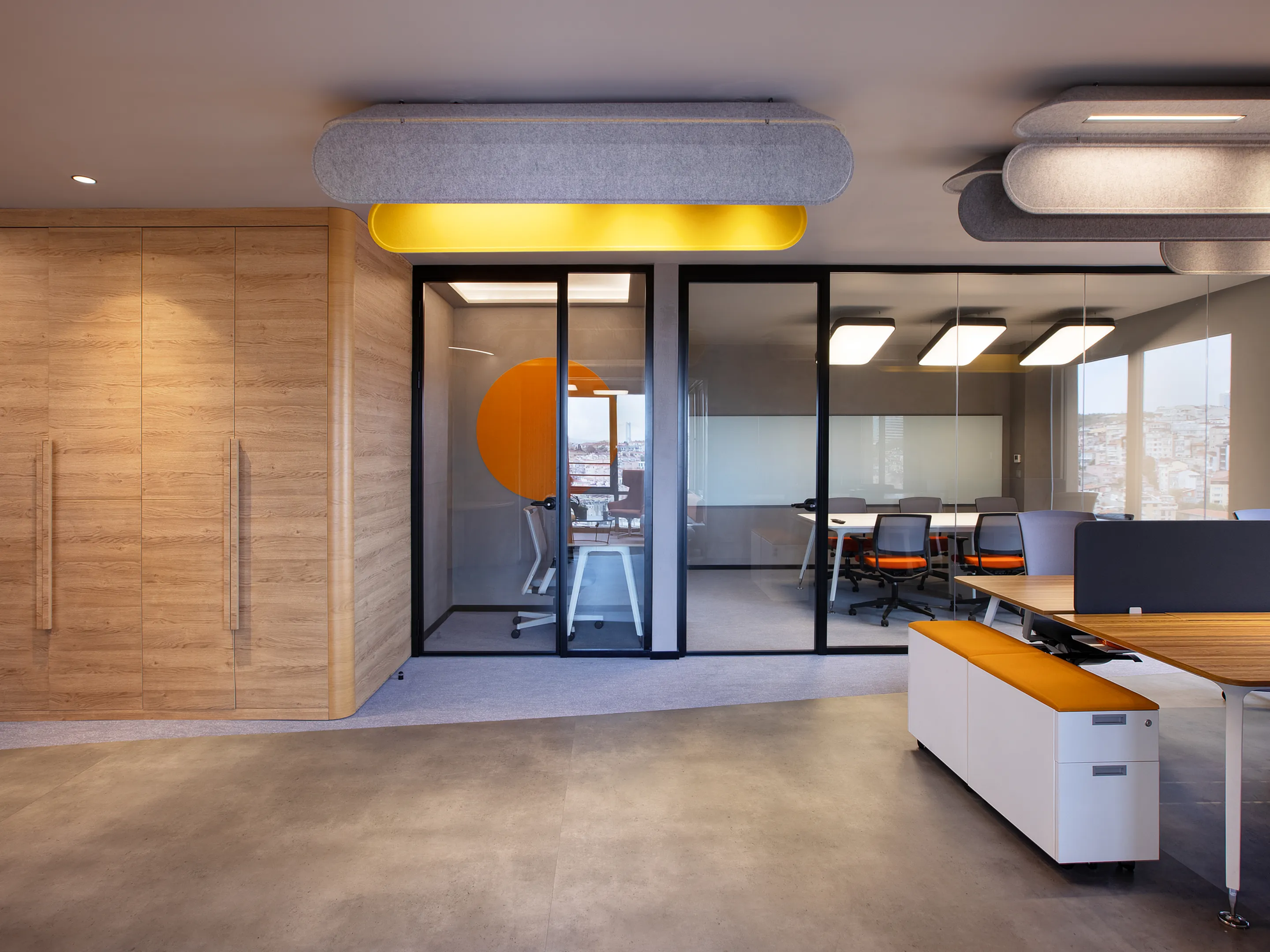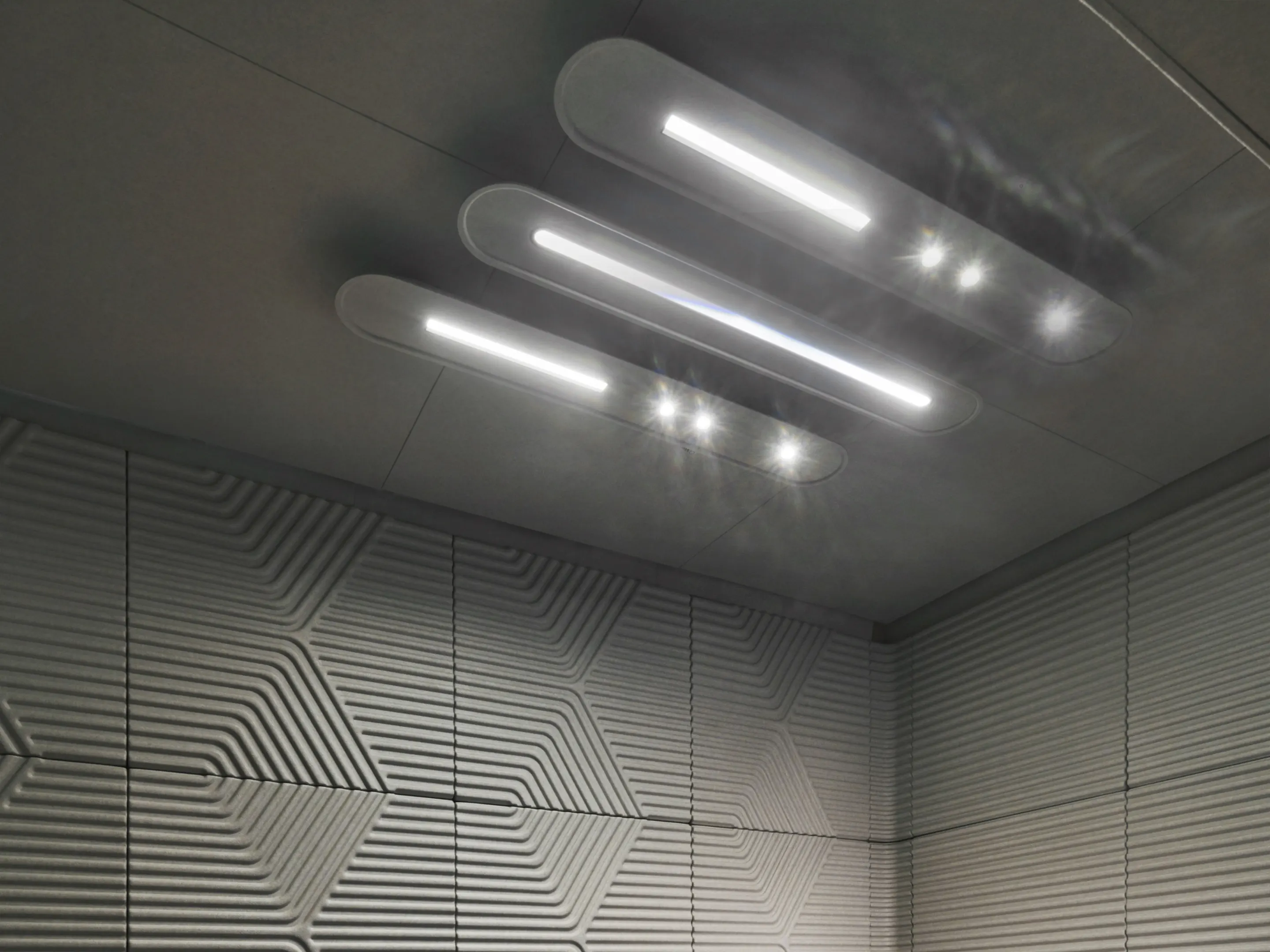 Akoestische lamp opbouw incl. 25W LED lijn- en spotverlichting. Incl. frame, ophangset en installatiehandleiding.