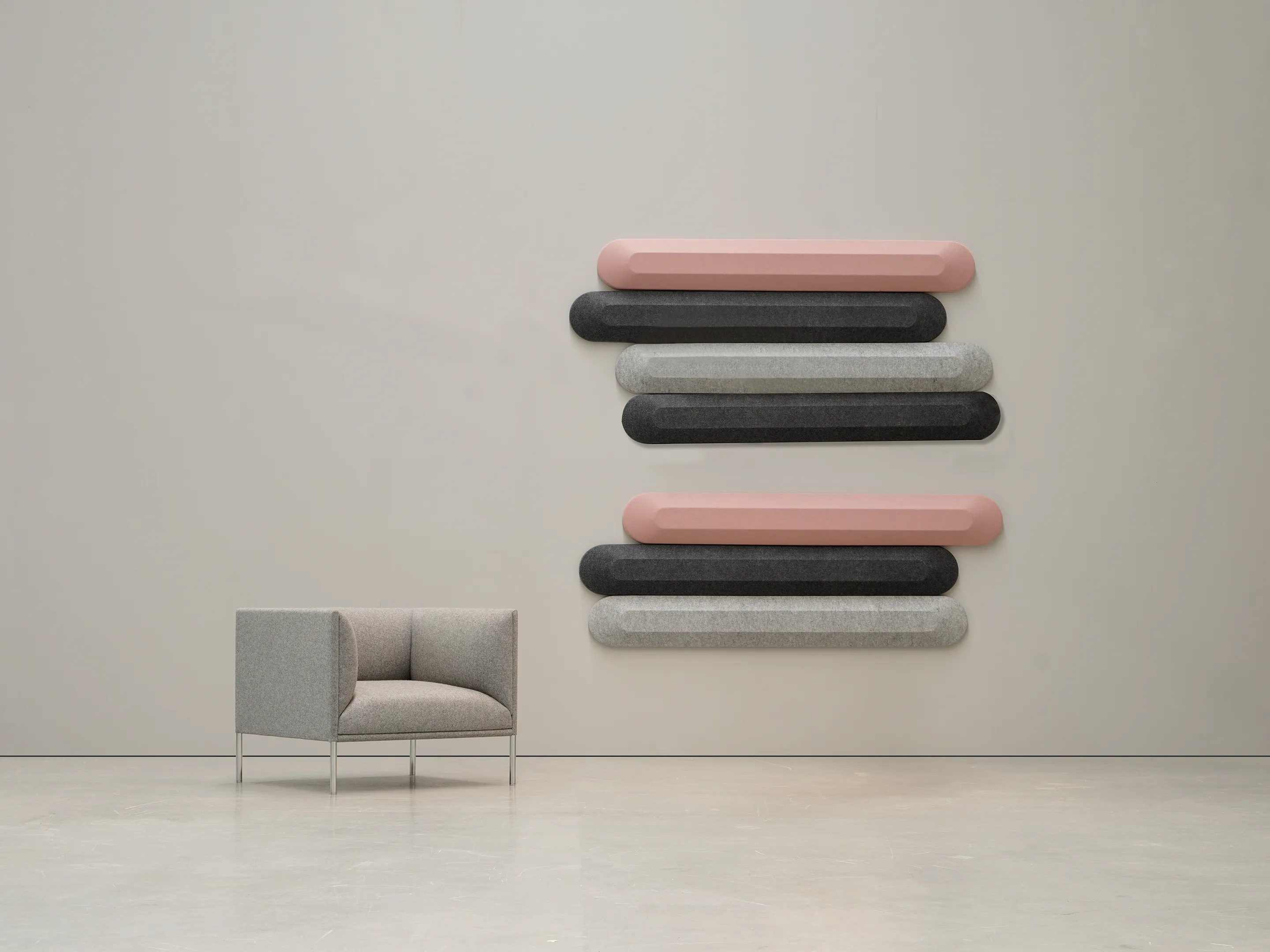 Akoestisch muur- en plafondpaneel zonder print met een NRC Waarde van 0,85. Bevestiging d.m.v. magneetprofiel. Geschikt voor bevestiging aan een wand of plafond. Inclusief schroeven, pluggen en installatiehandleiding.