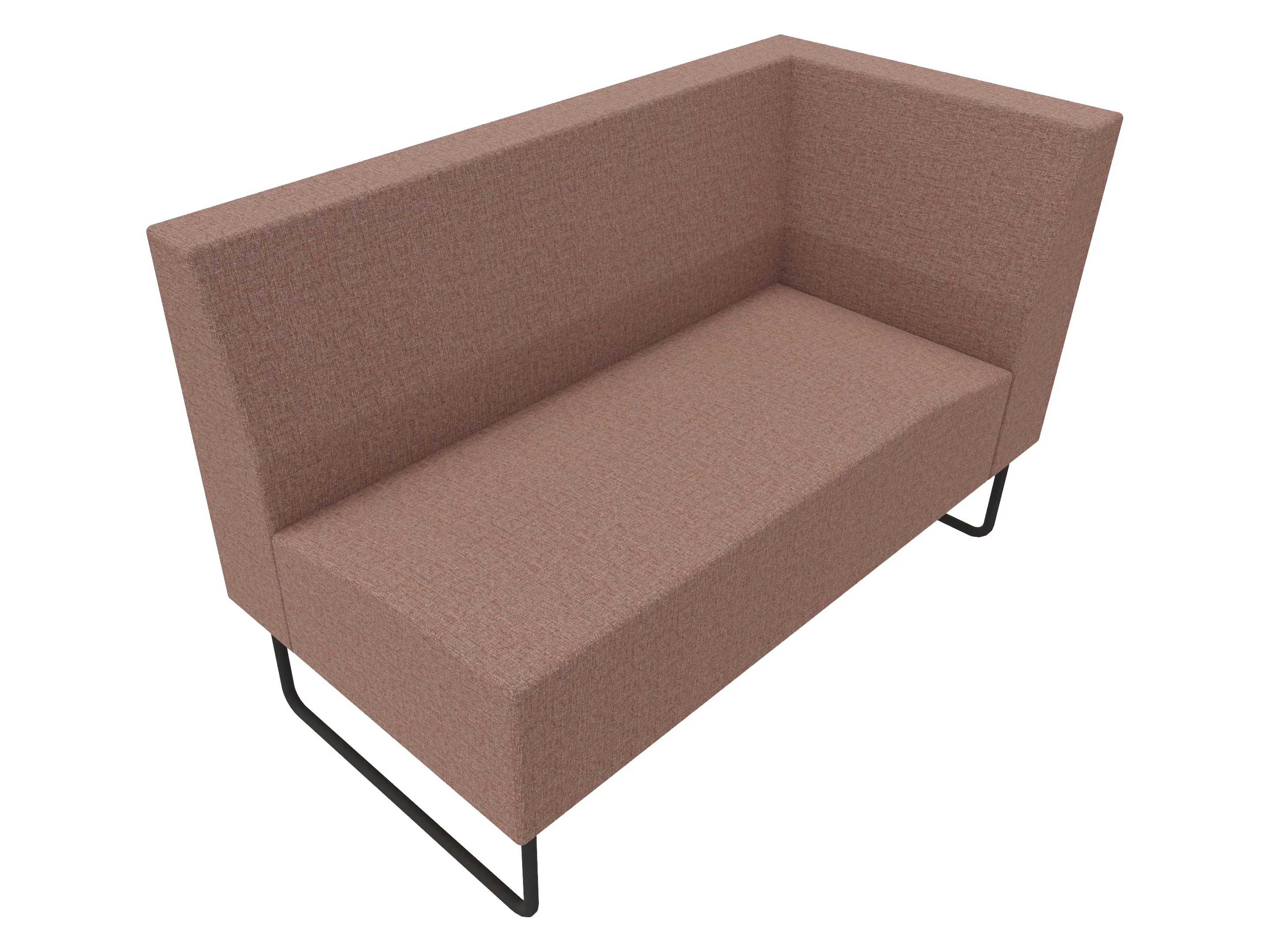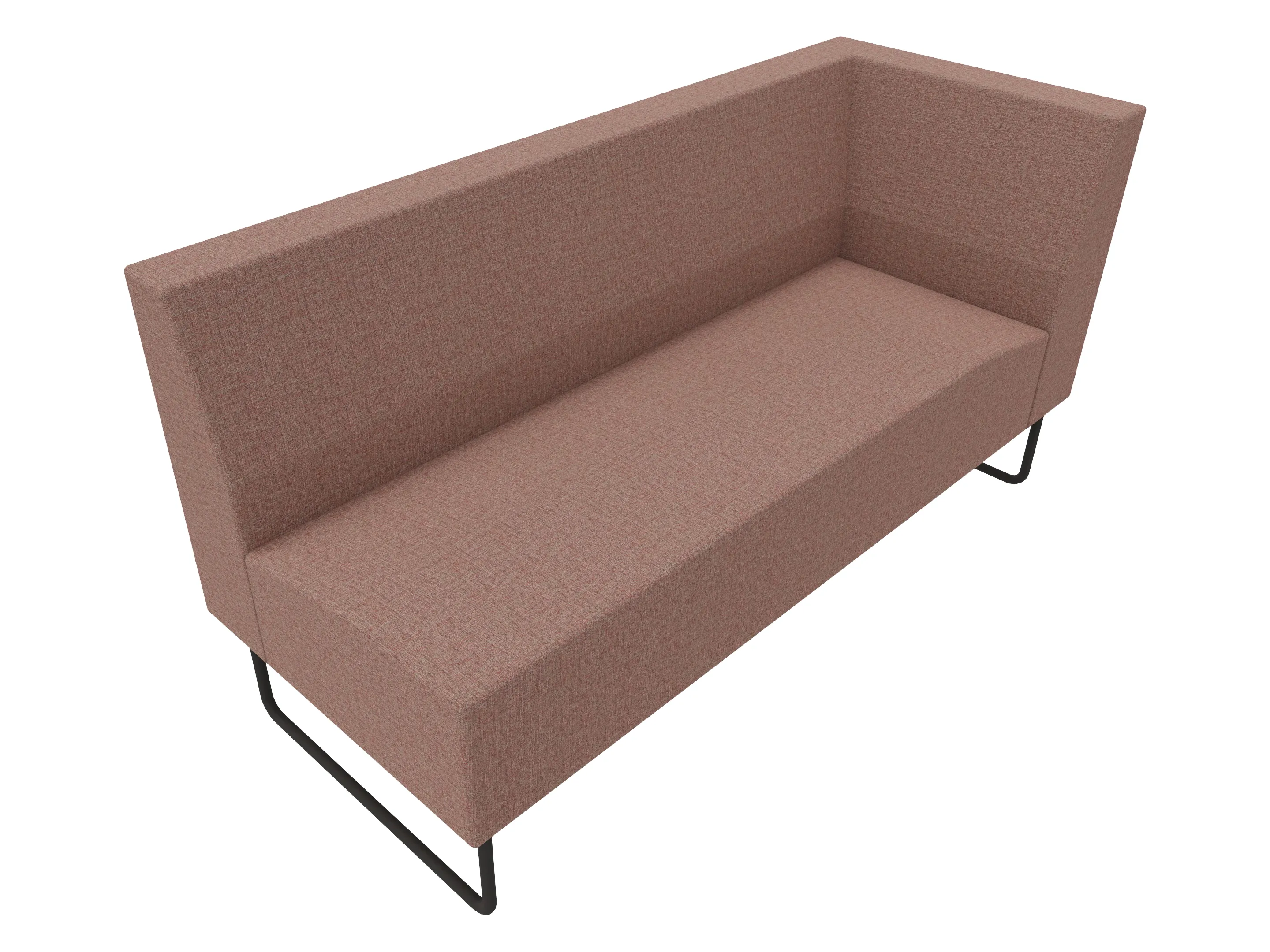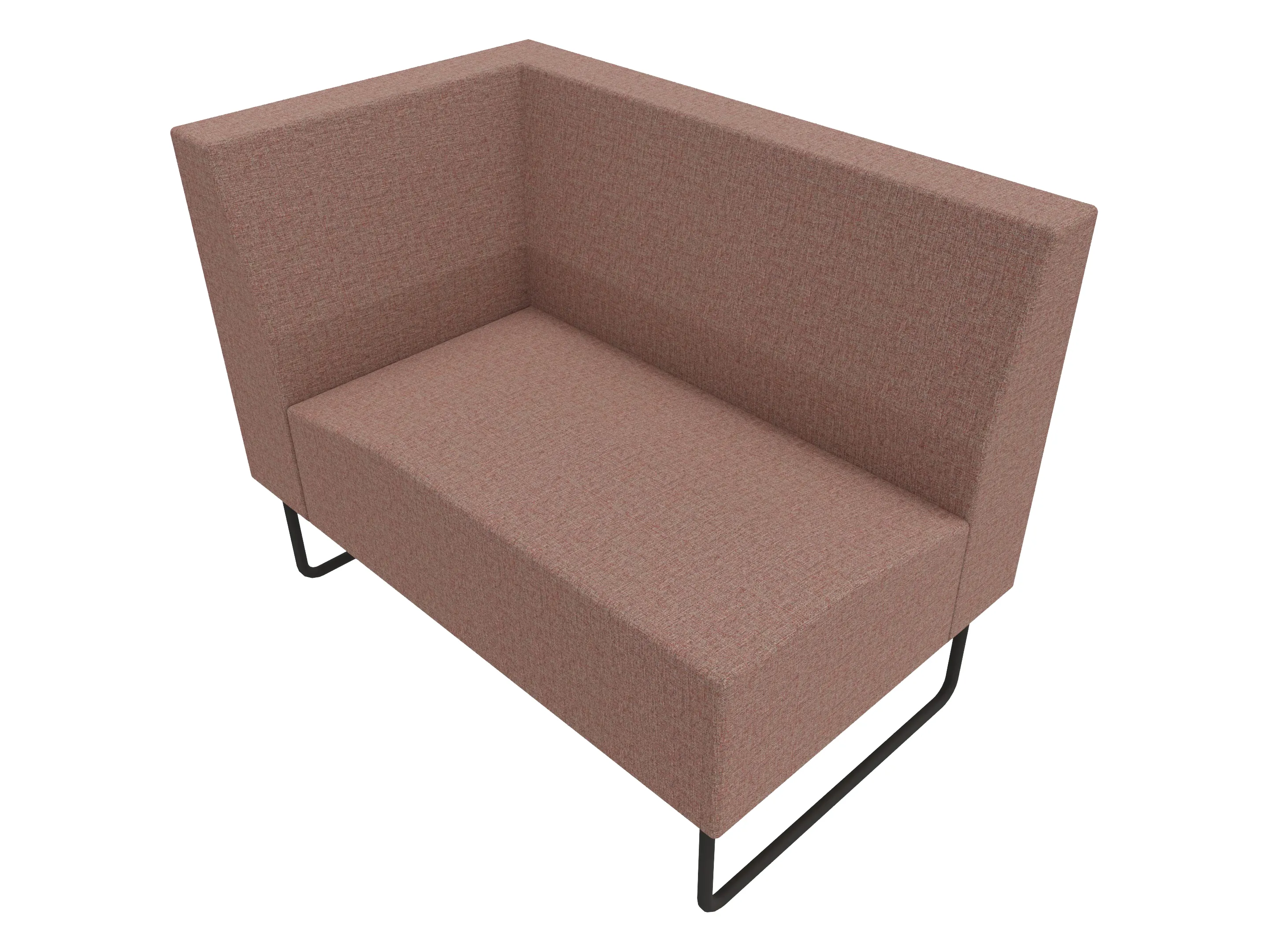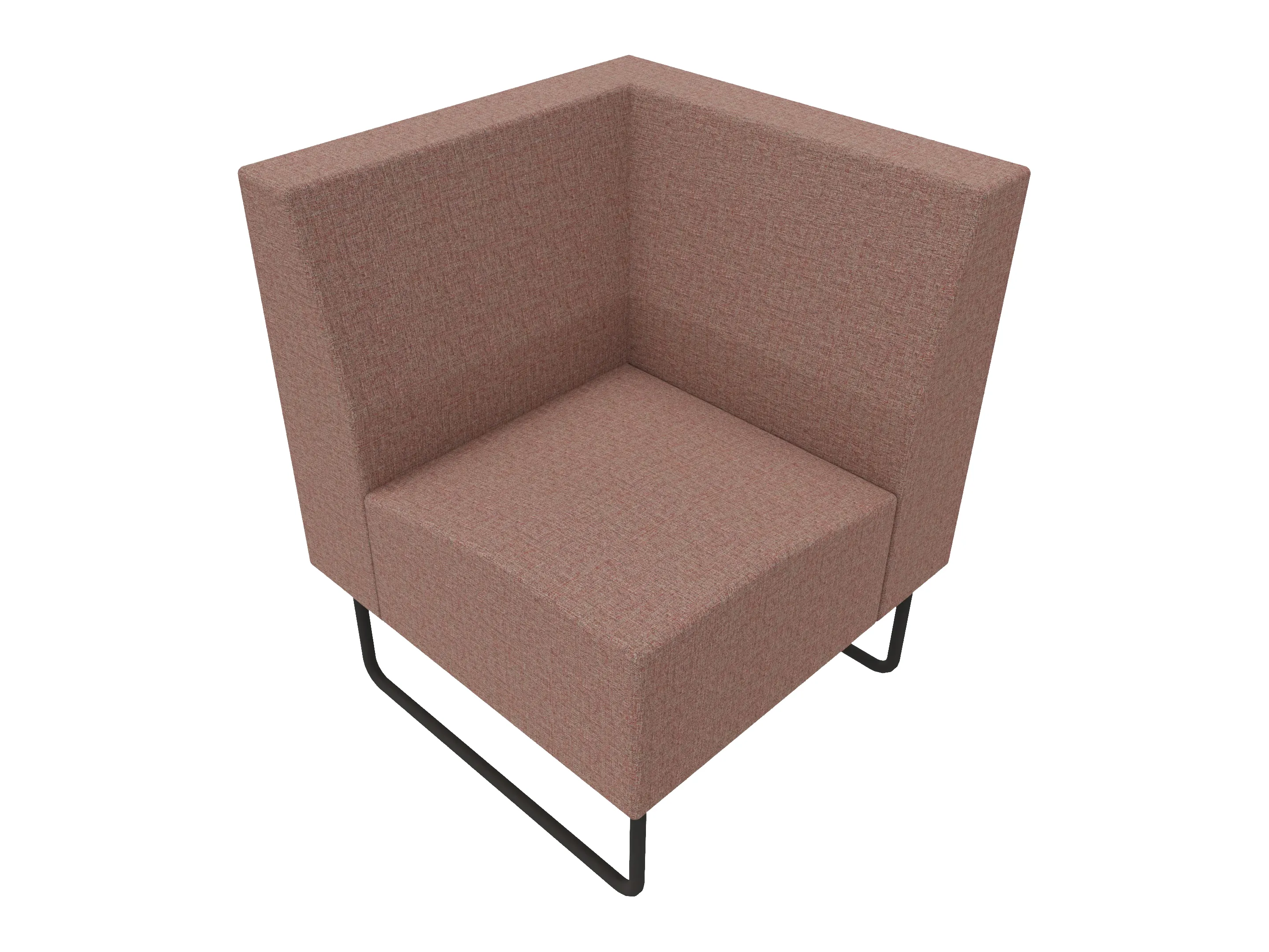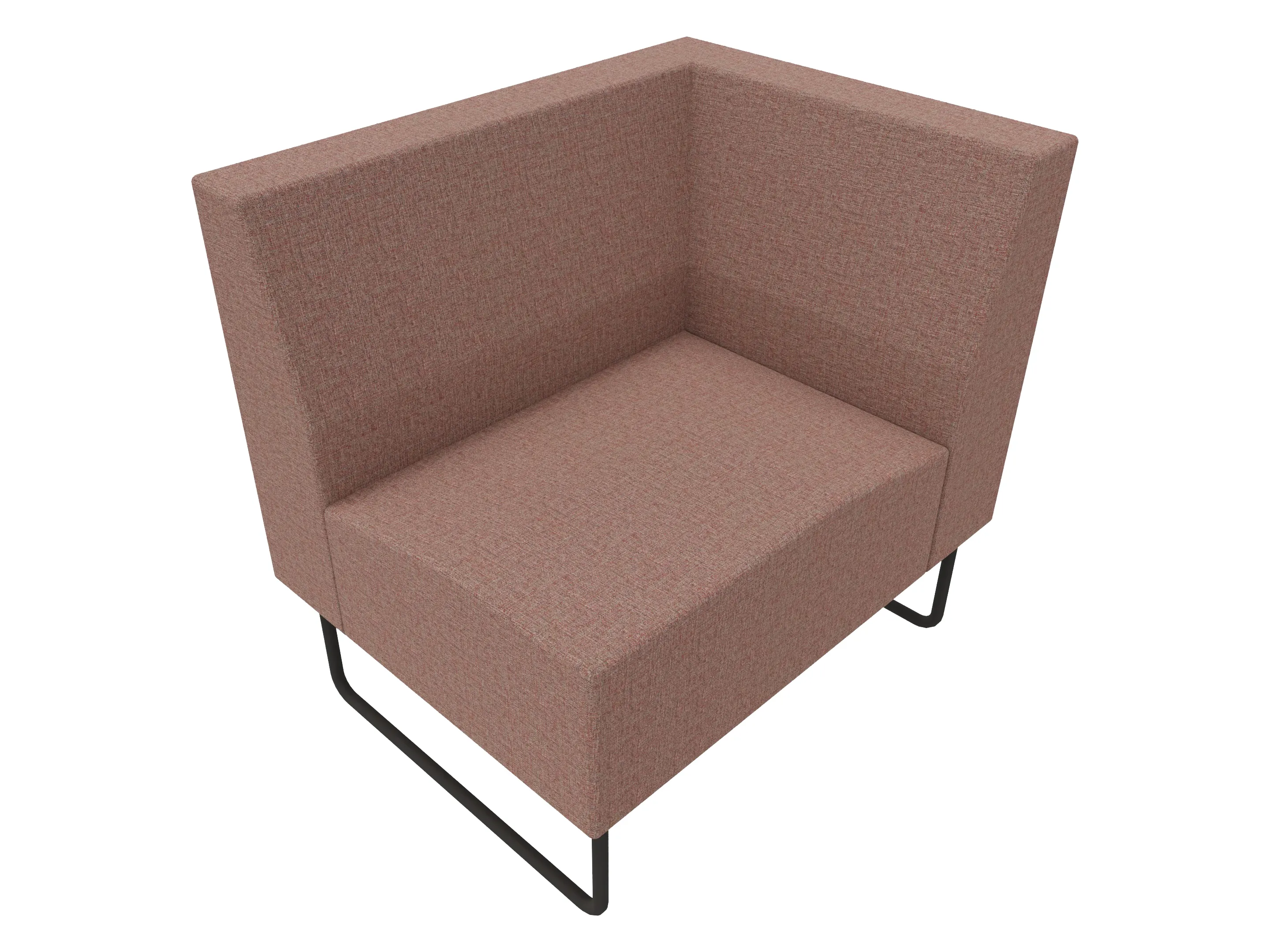 Volledige gestoffeerde bank van 1000mm breed, hoekstuk, armleuning rechts voorstaand gezien, lage rug (770mm totale hoogte) op een sledeframe.