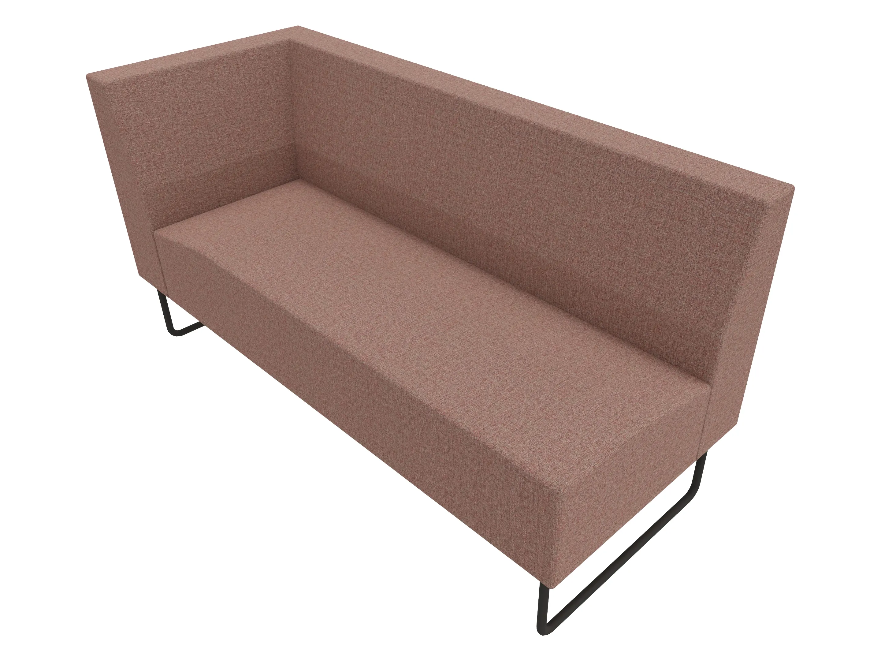 Volledige gestoffeerde bank van 800mm breed, hoekstuk, armleuning rechts voorstaand gezien, lage rug (770mm totale hoogte) op een sledeframe.