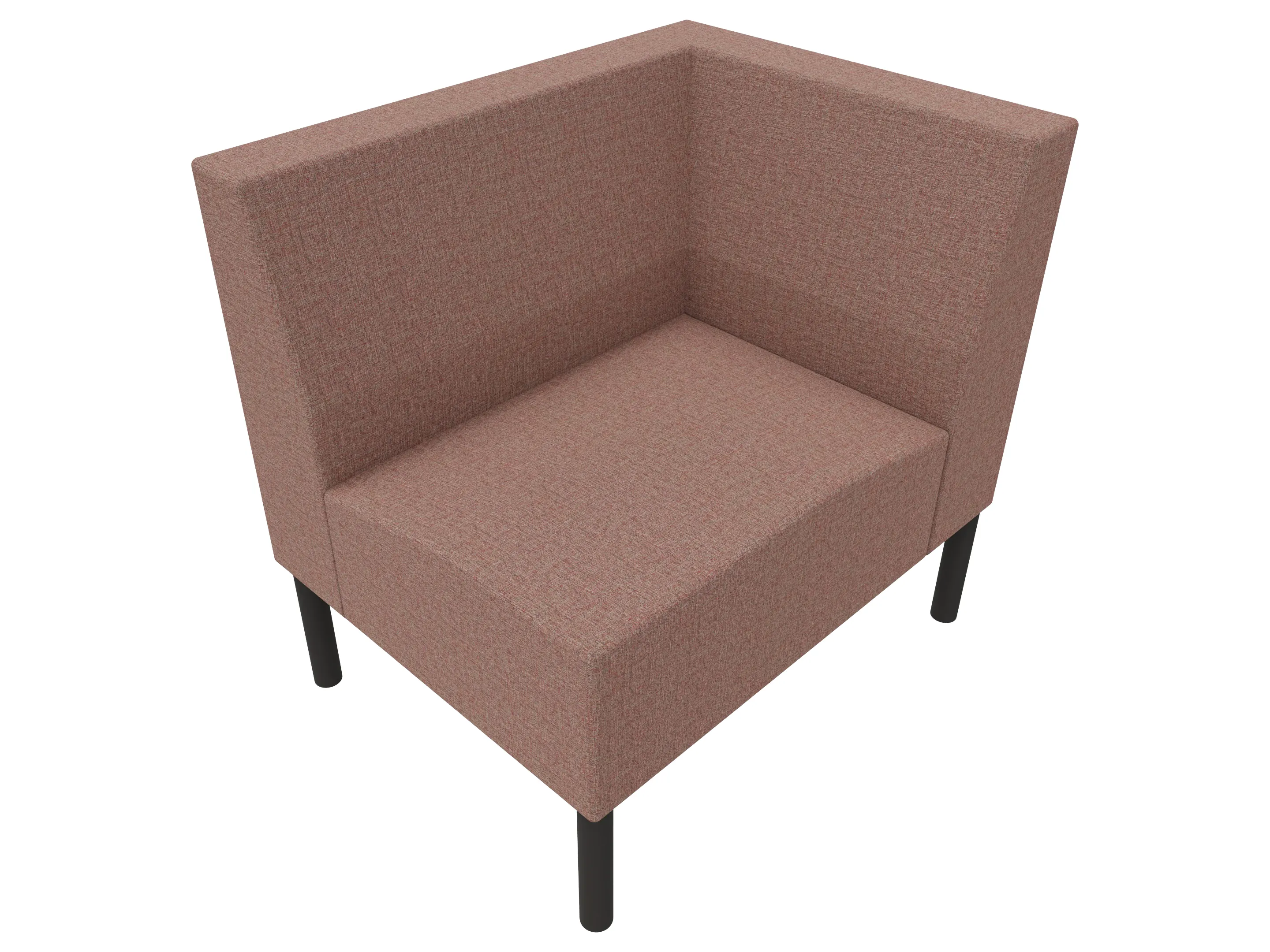Volledige gestoffeerde bank van 1000mm breed, hoekstuk, armleuning rechts voorstaand gezien, lage rug (770mm totale hoogte) op een 4-poots frame.