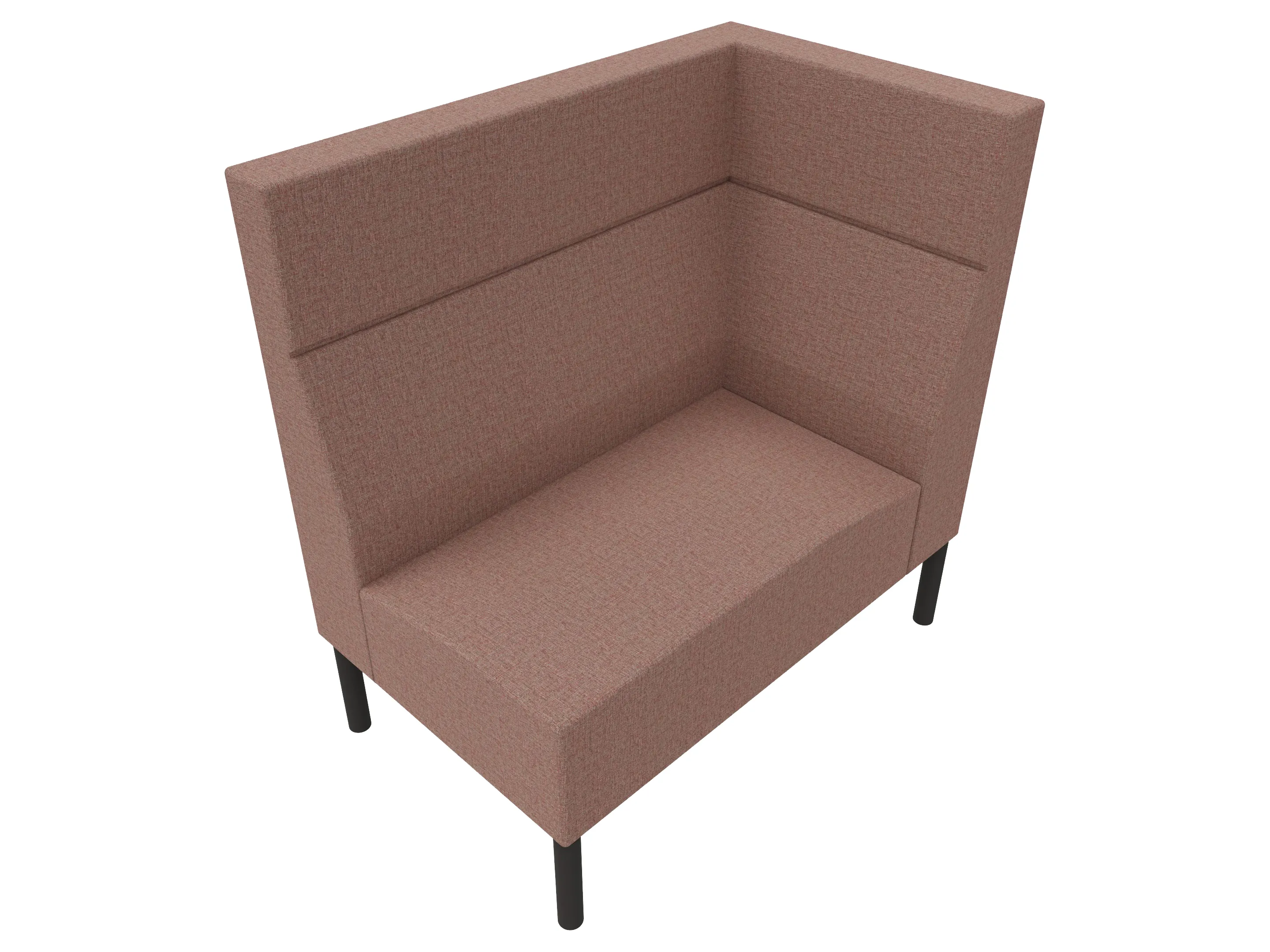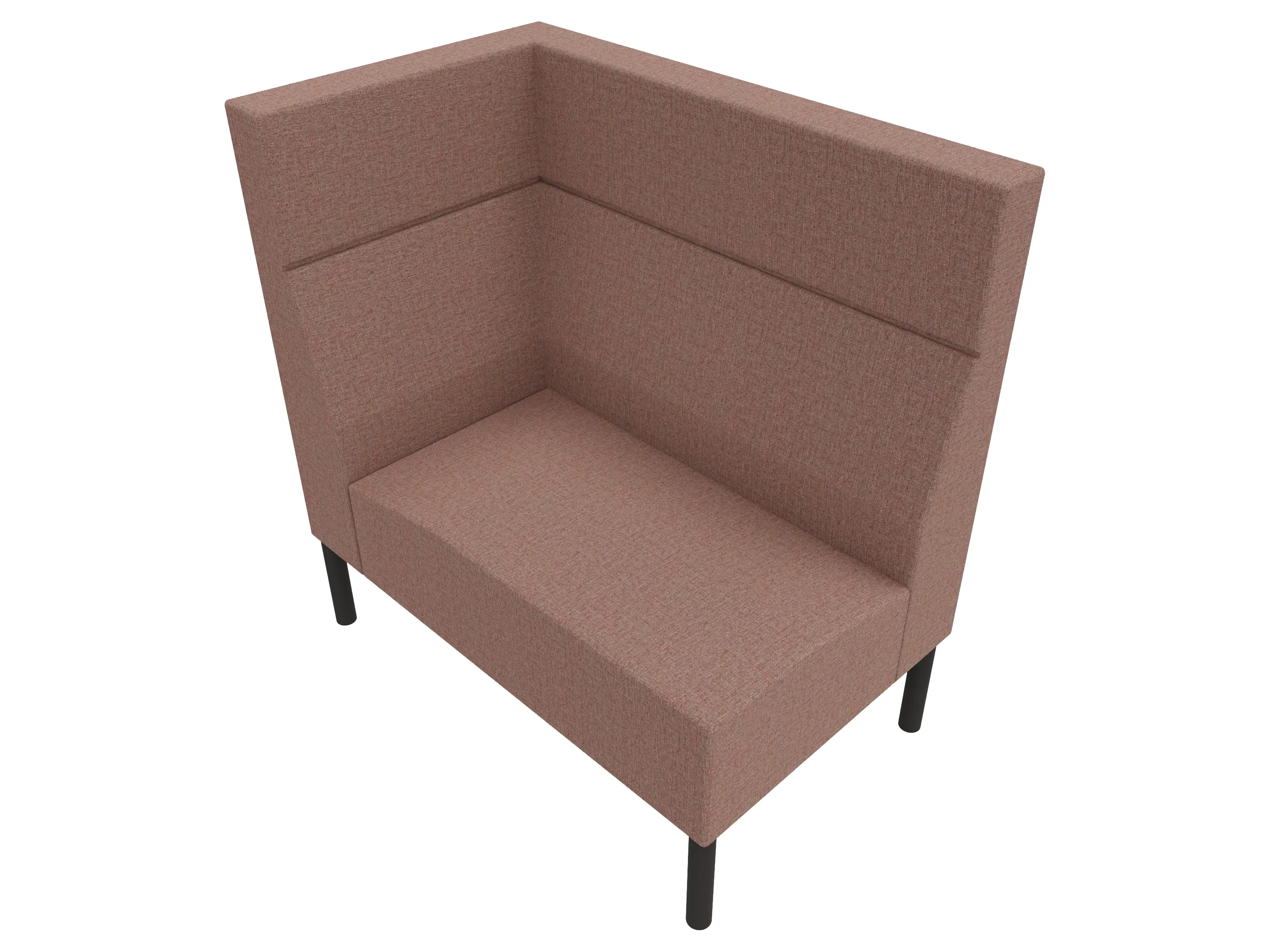 Volledige gestoffeerde bank van 1000mm breed, hoekstuk, armleuning rechts voorstaand gezien, extra hoge rug (1280mm totale hoogte) op een 4-poots frame.