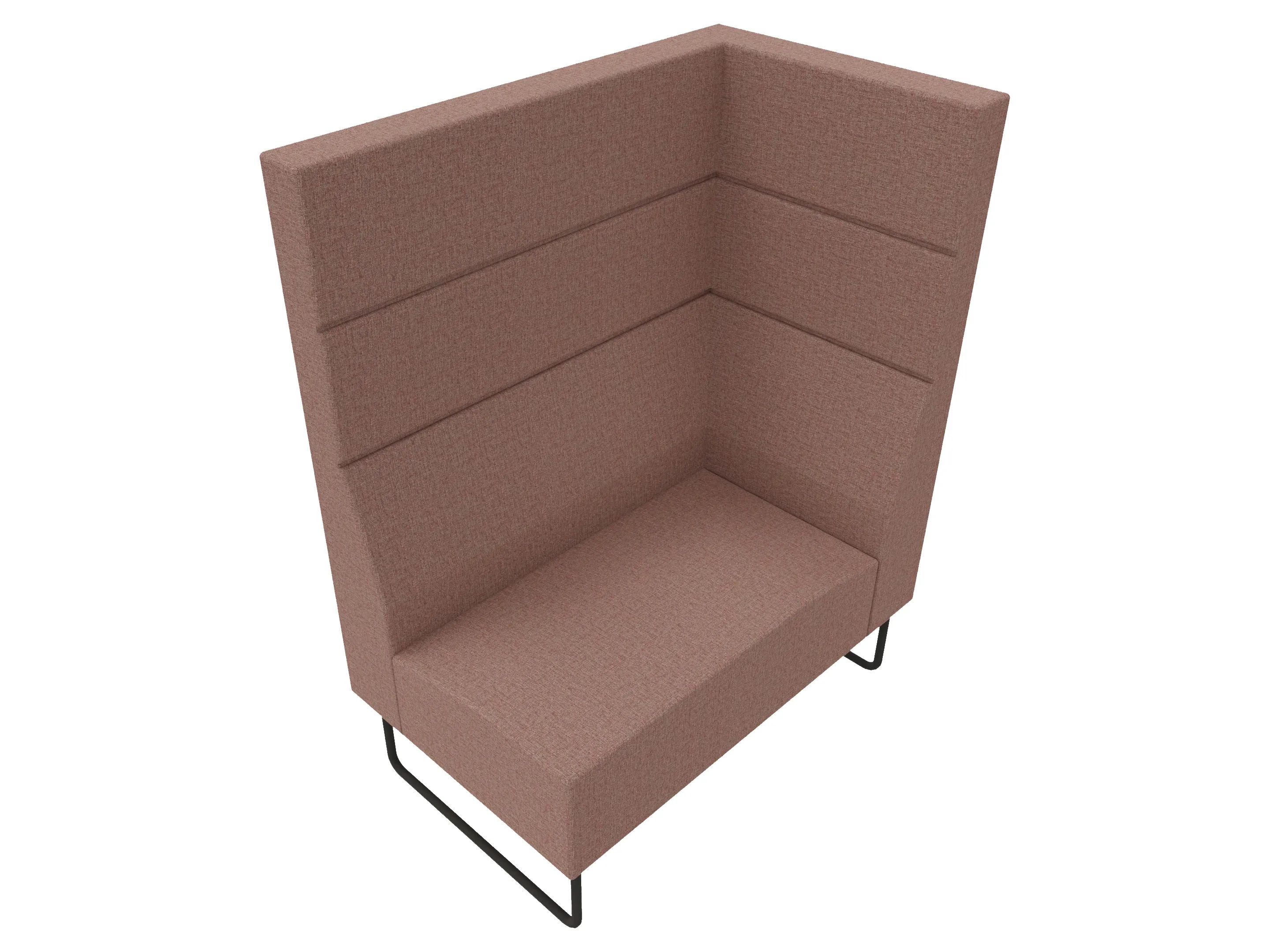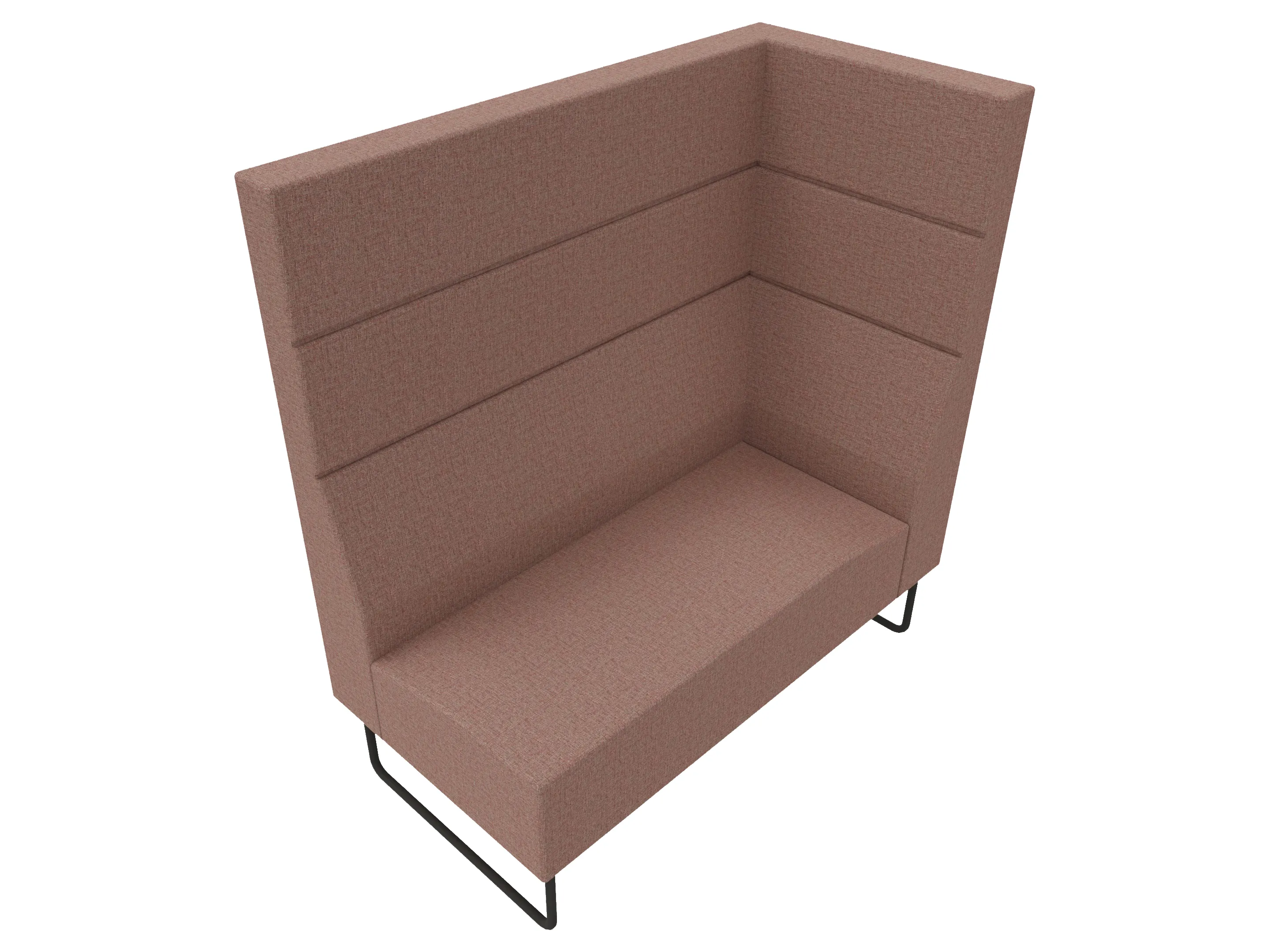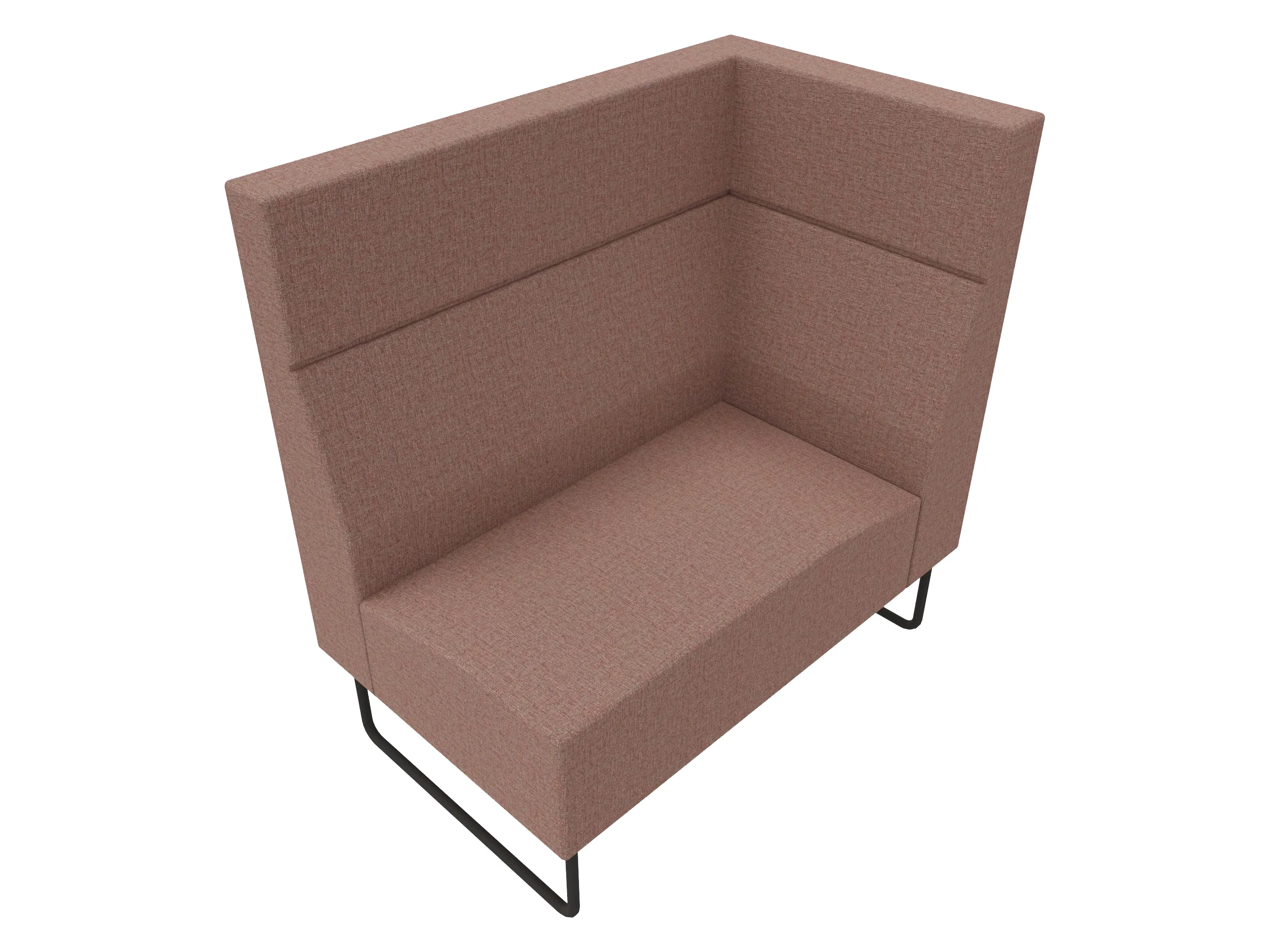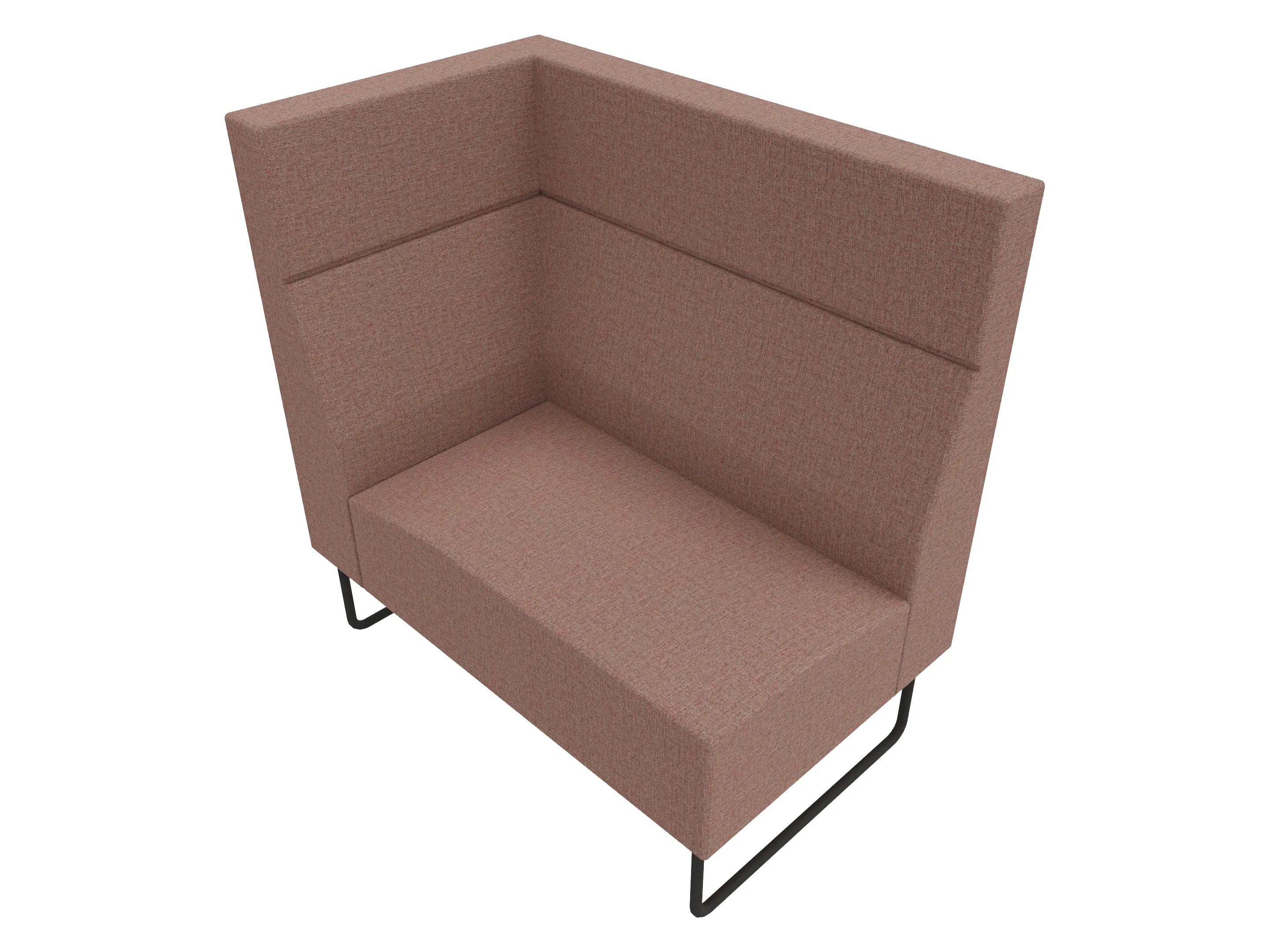 Volledige gestoffeerde bank van 1200mm breed, hoekstuk, armleuning rechts voorstaand gezien, hoge rug (1030mm totale hoogte) op een sledeframe.