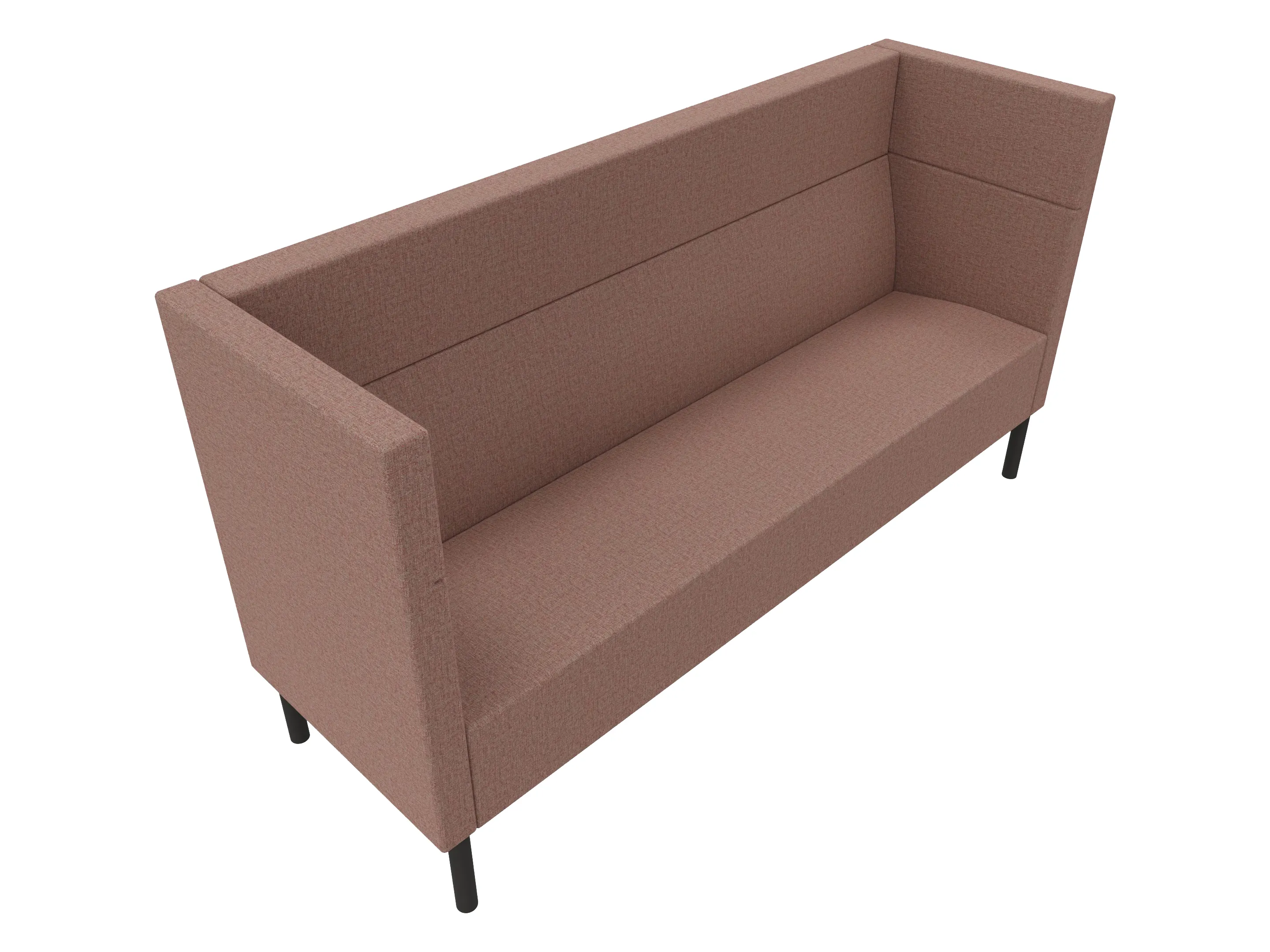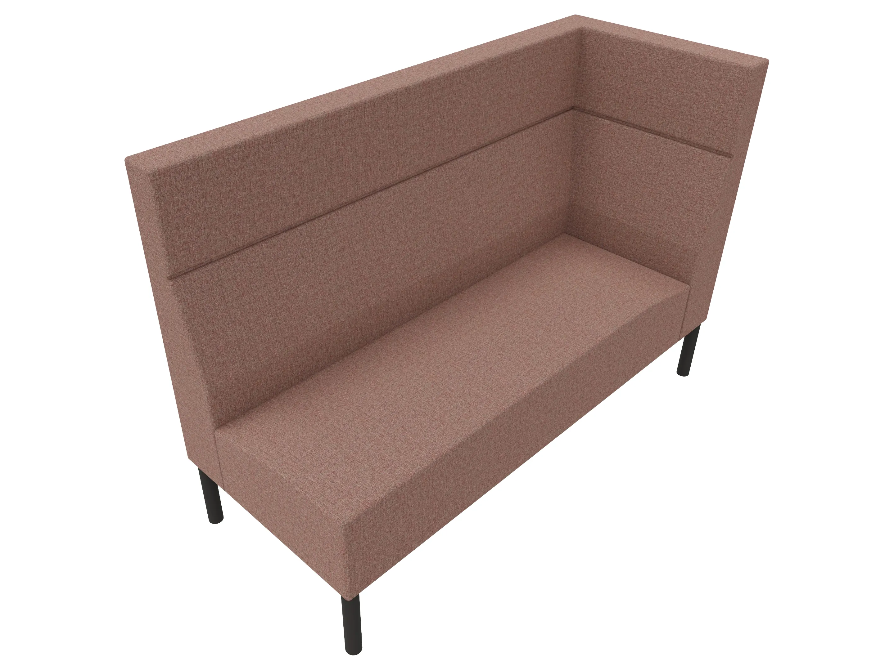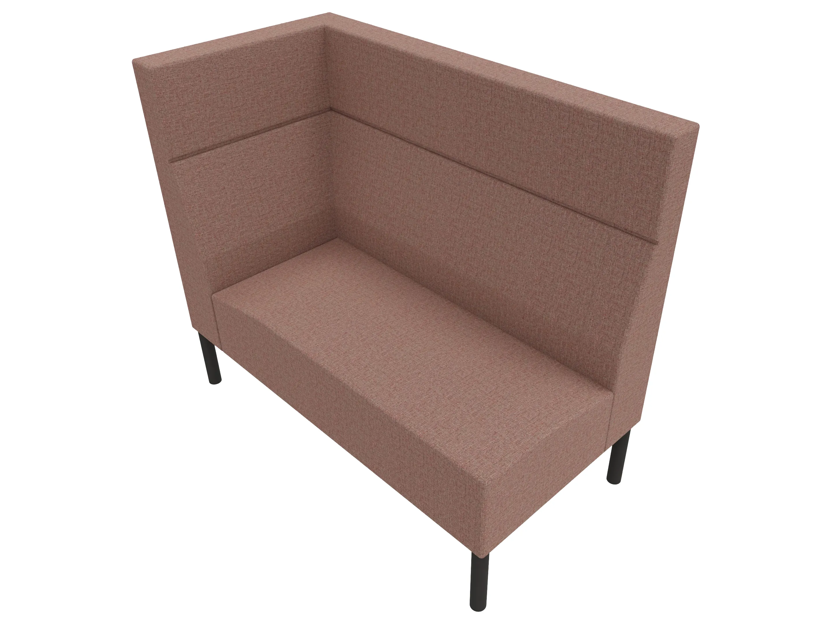 Volledige gestoffeerde bank van 800mm breed, hoekstuk, armleuning rechts voorstaand gezien, extra hoge rug (1280mm totale hoogte) op een 4-poots frame.