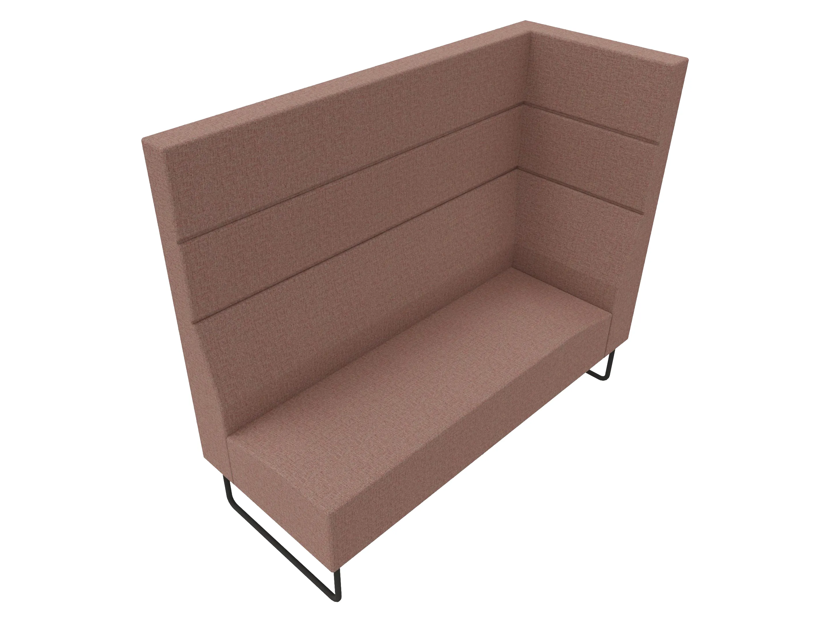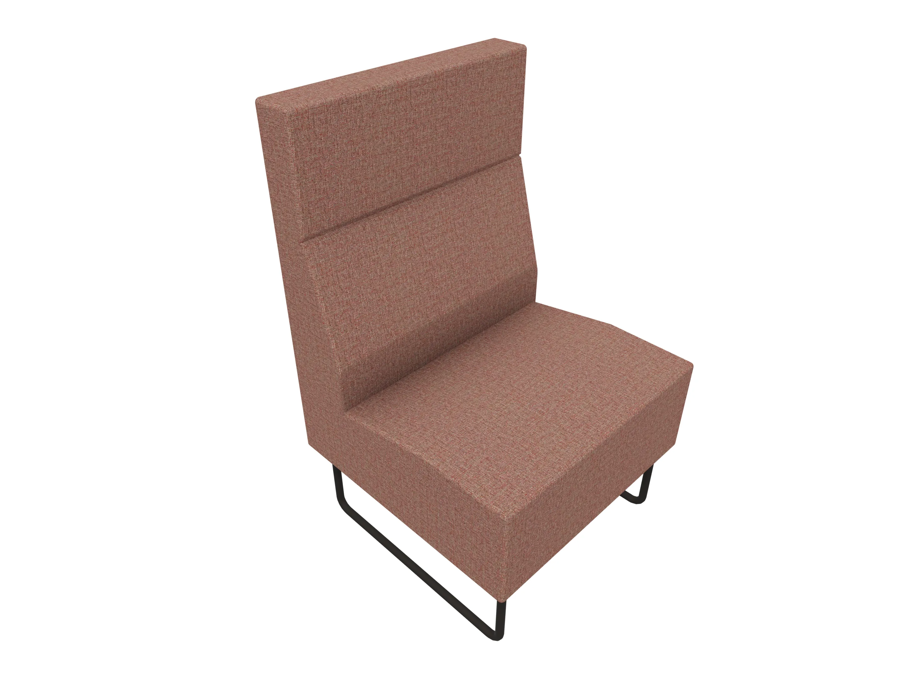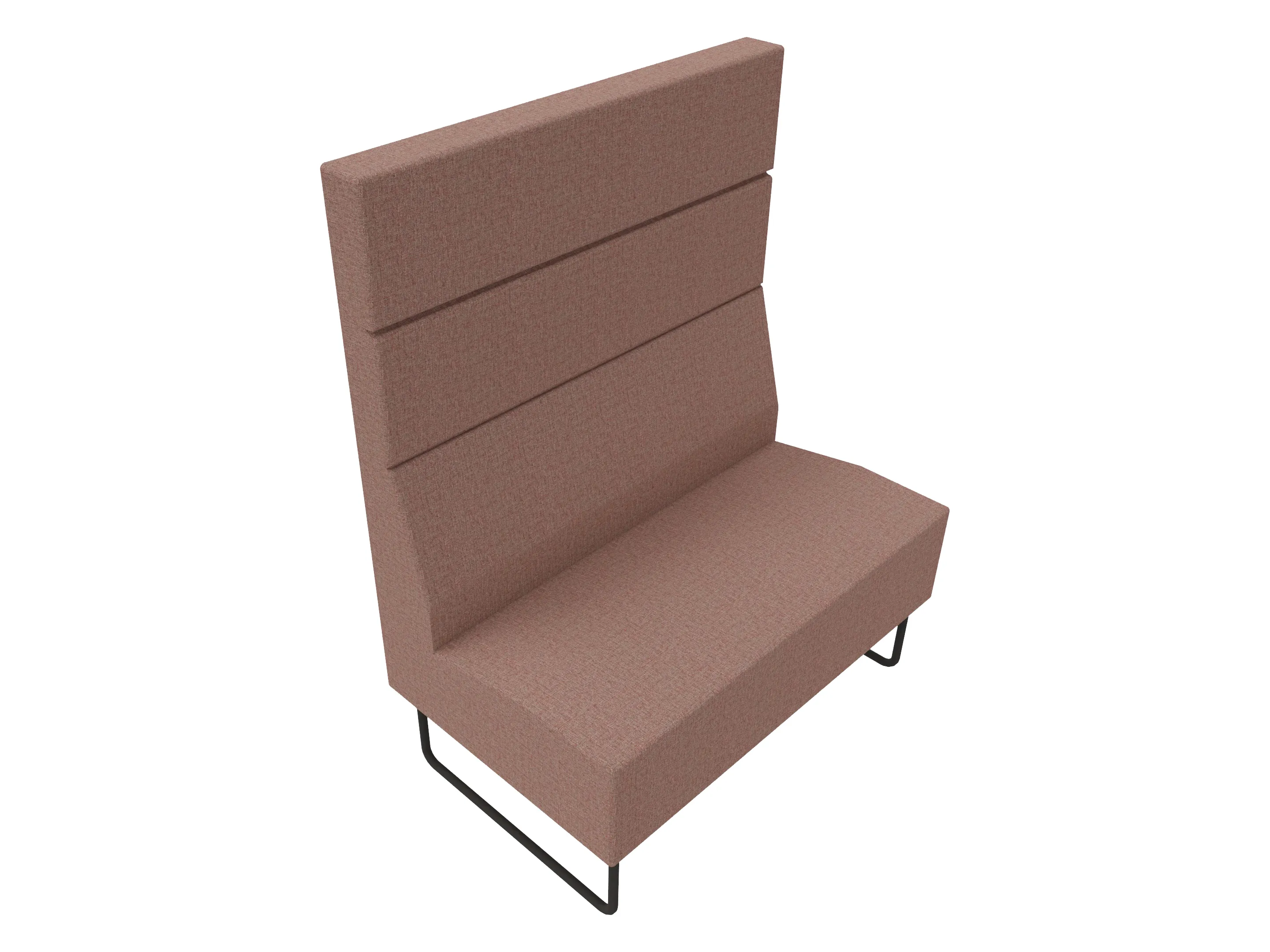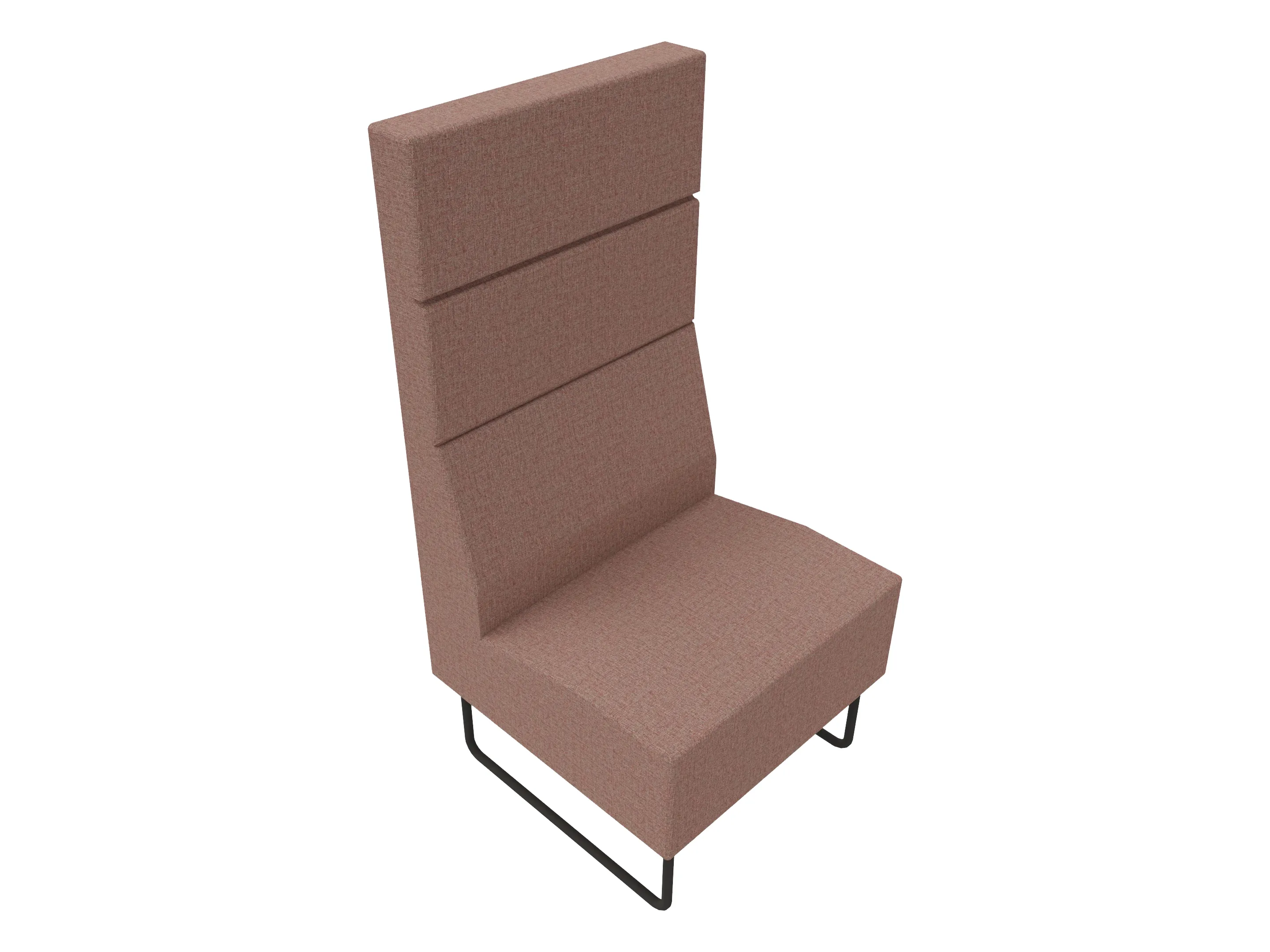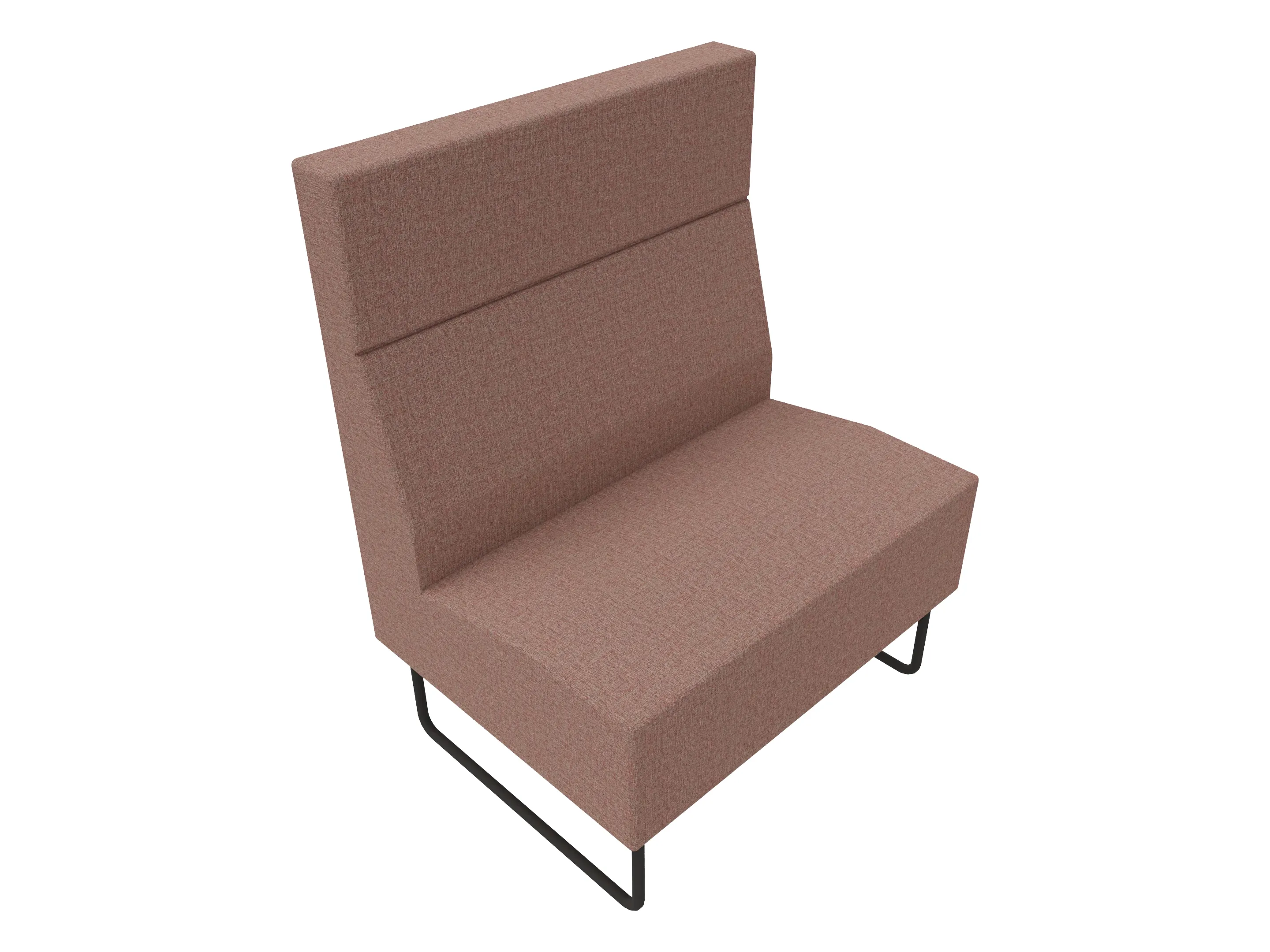 Volledige gestoffeerde bank van 620mm breed, rechte module, hoge rug (1030mm totale hoogte) op een sledeframe. Zonder armleuningen.
