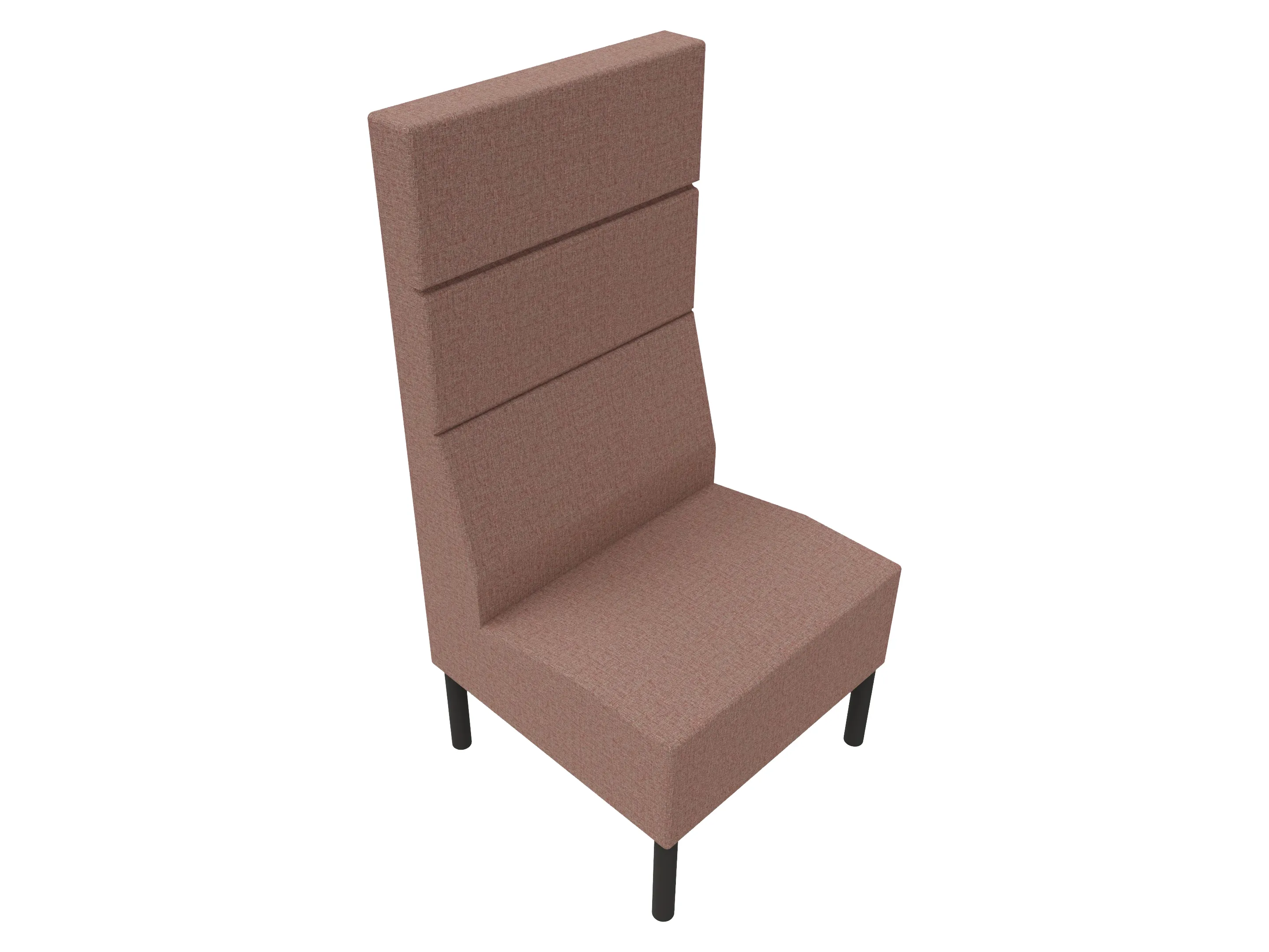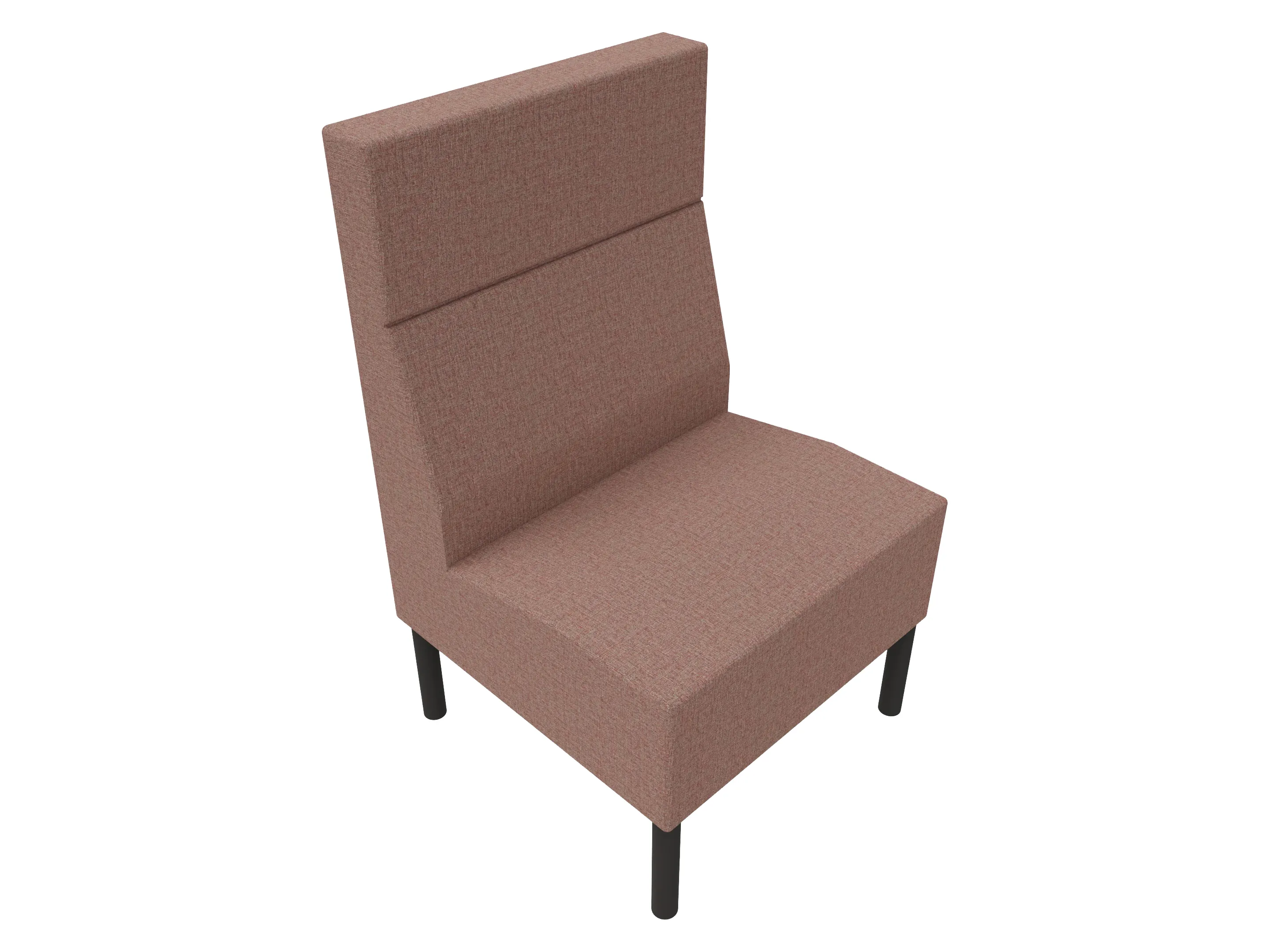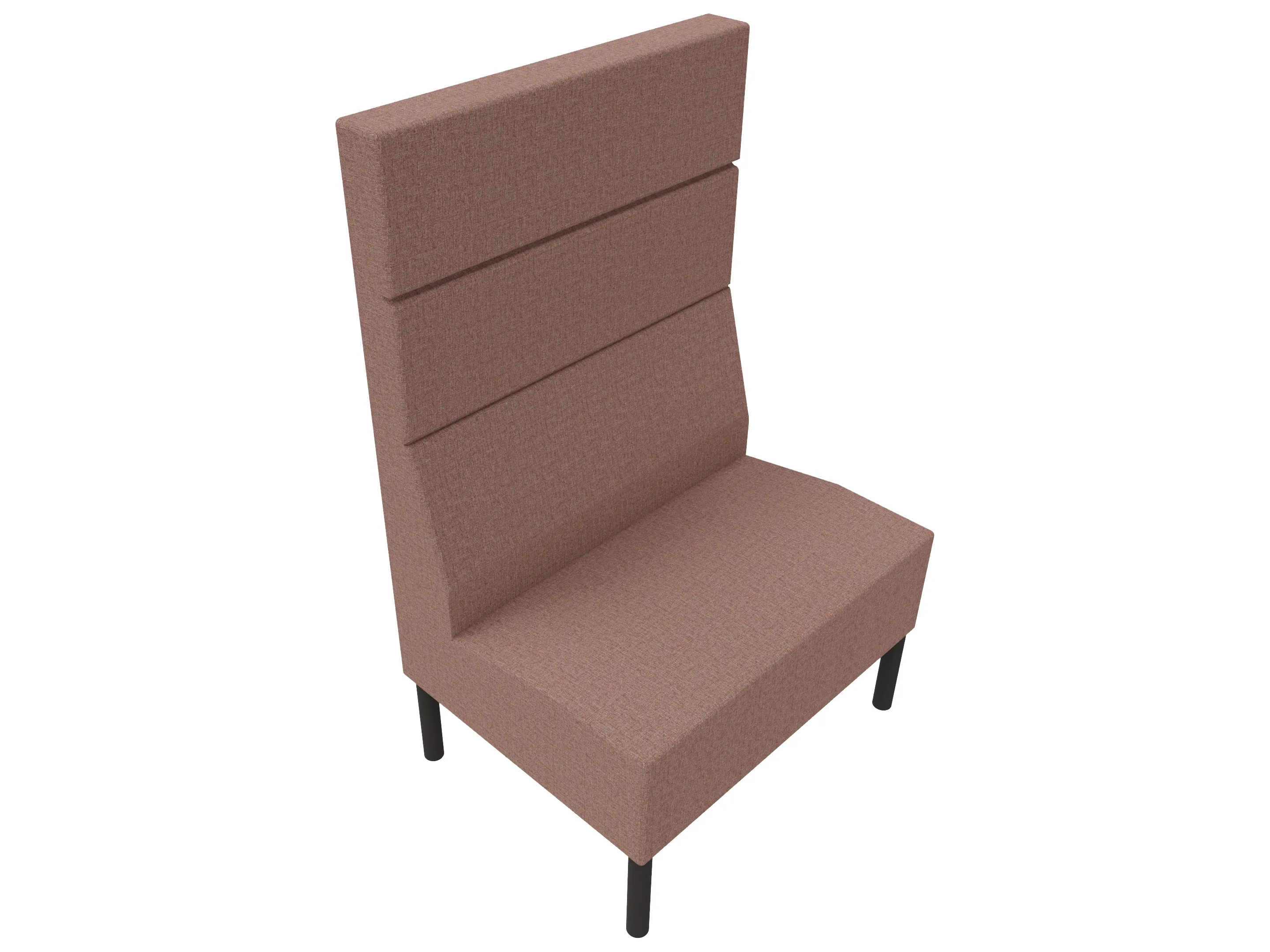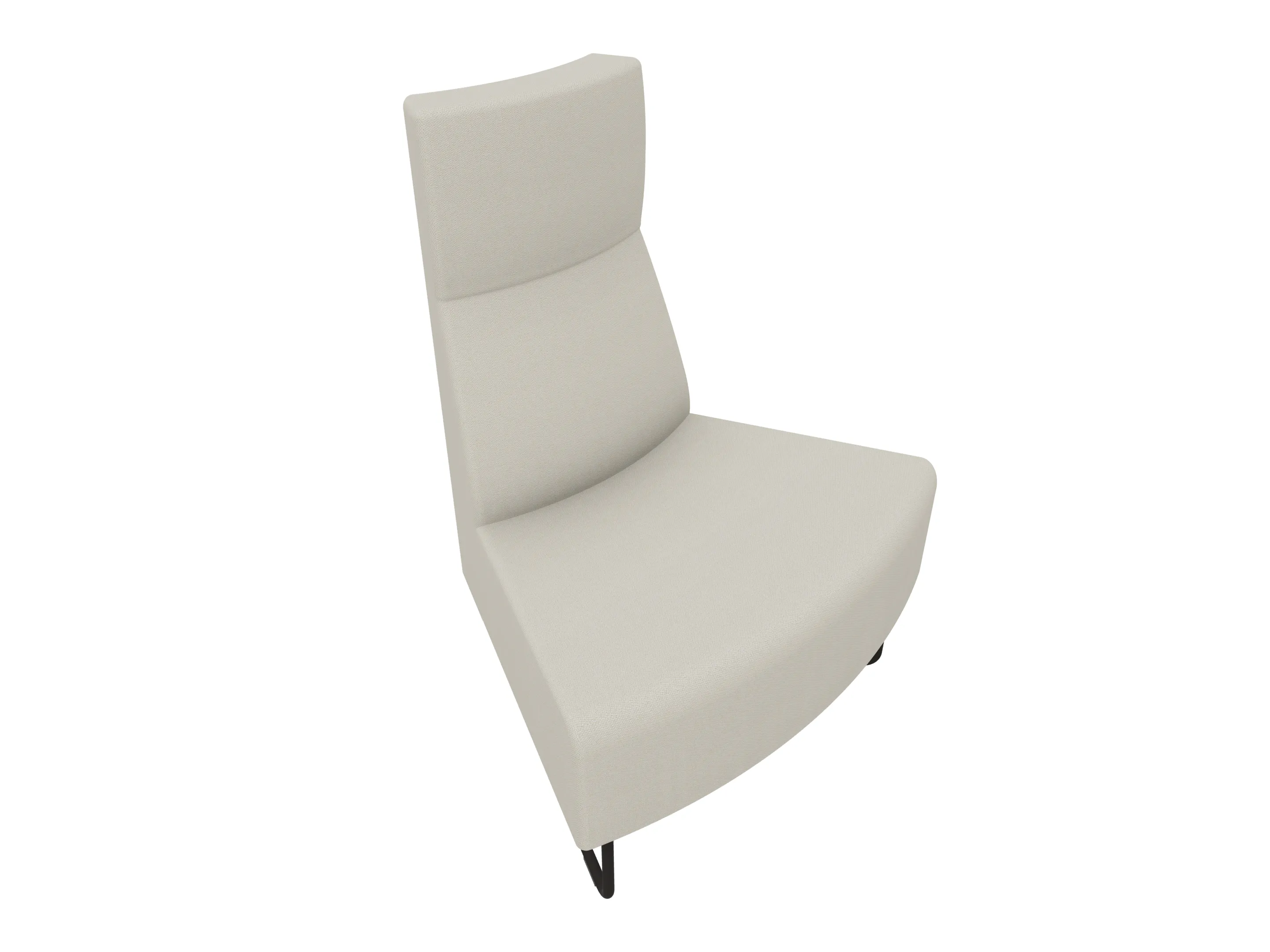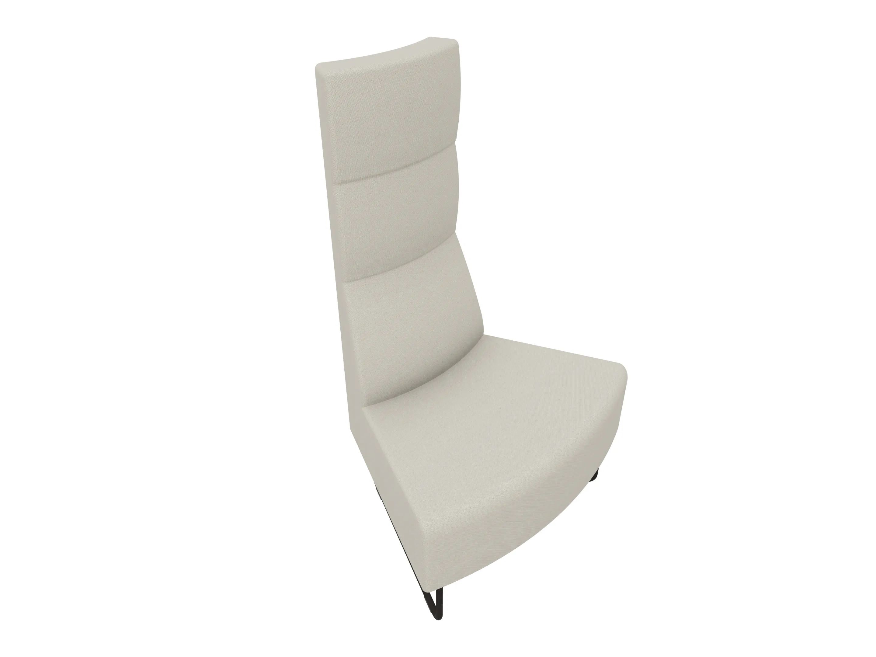 Volledige gestoffeerde bank van 620mm breed, rechte module, hoge rug (1030mm totale hoogte) op een sledeframe. Zonder armleuningen.
