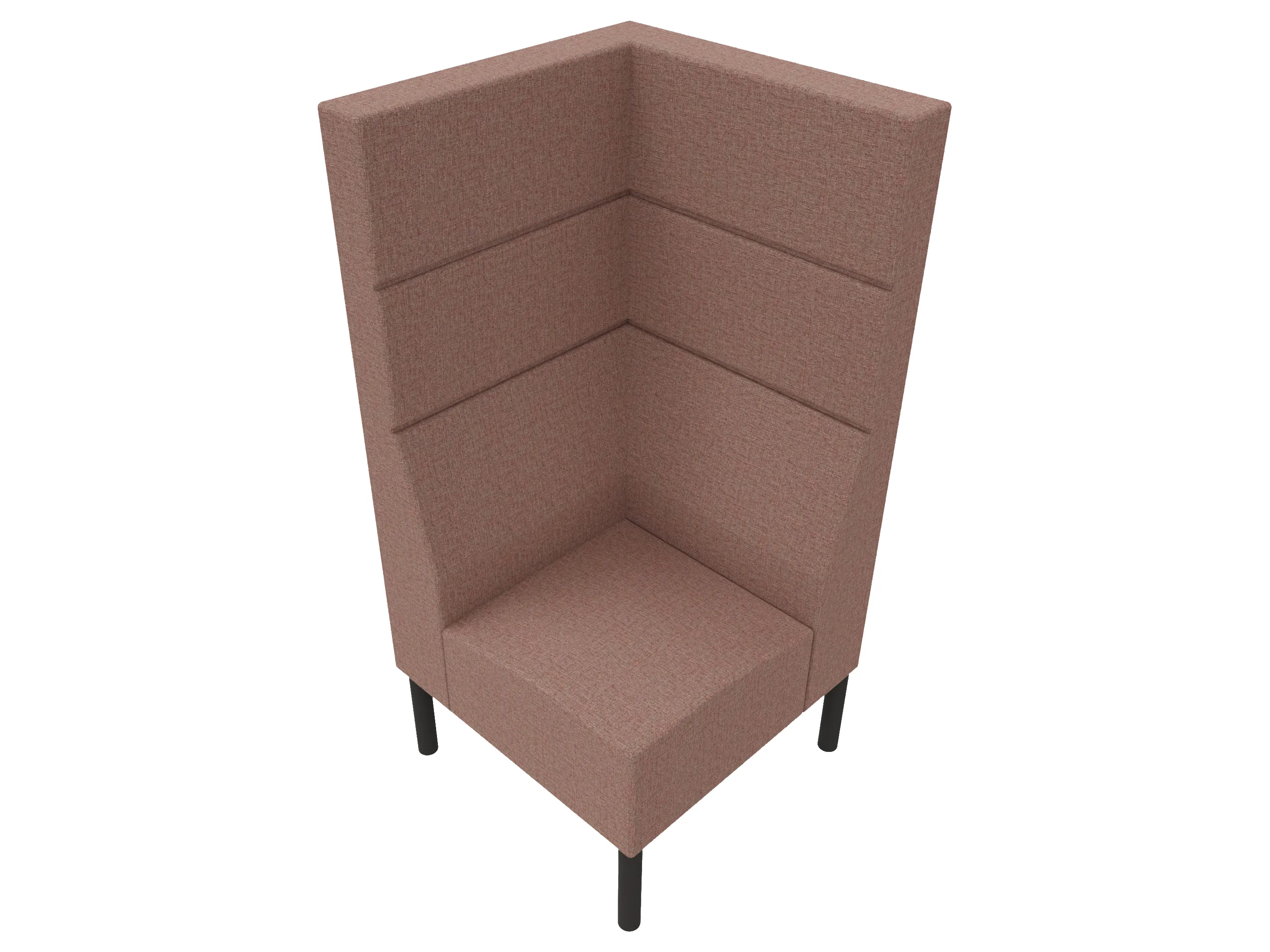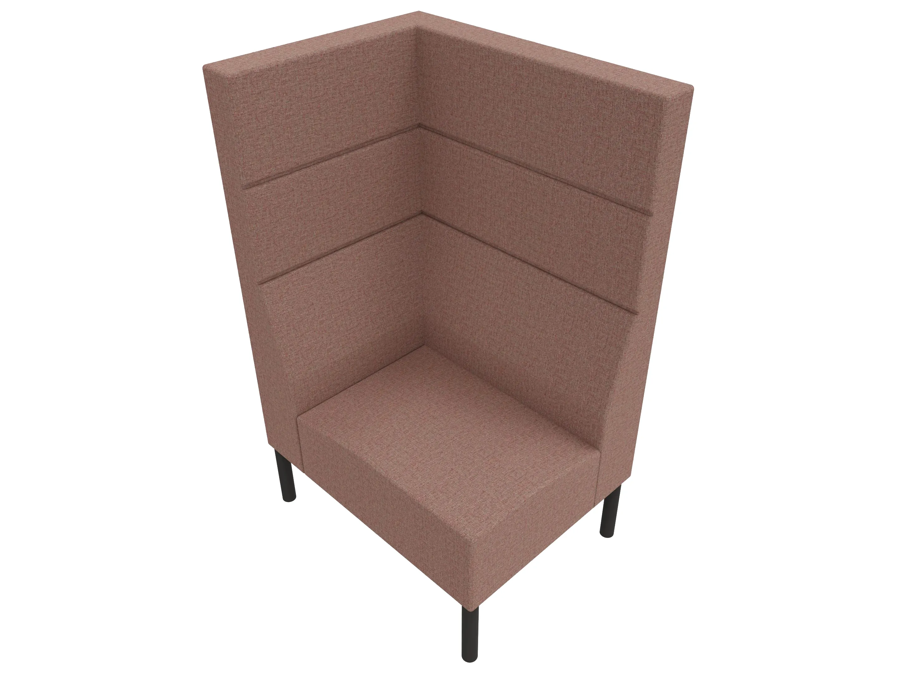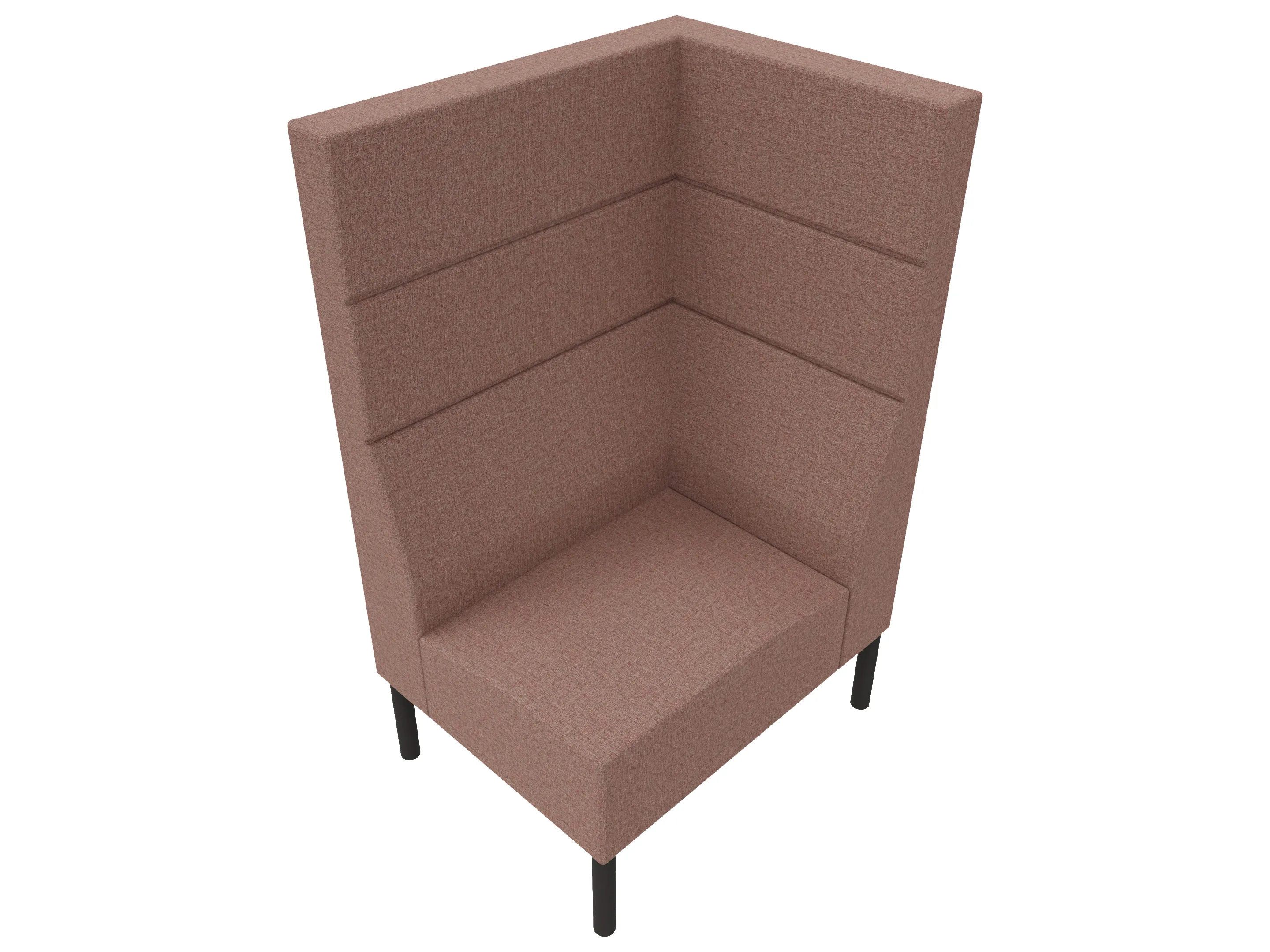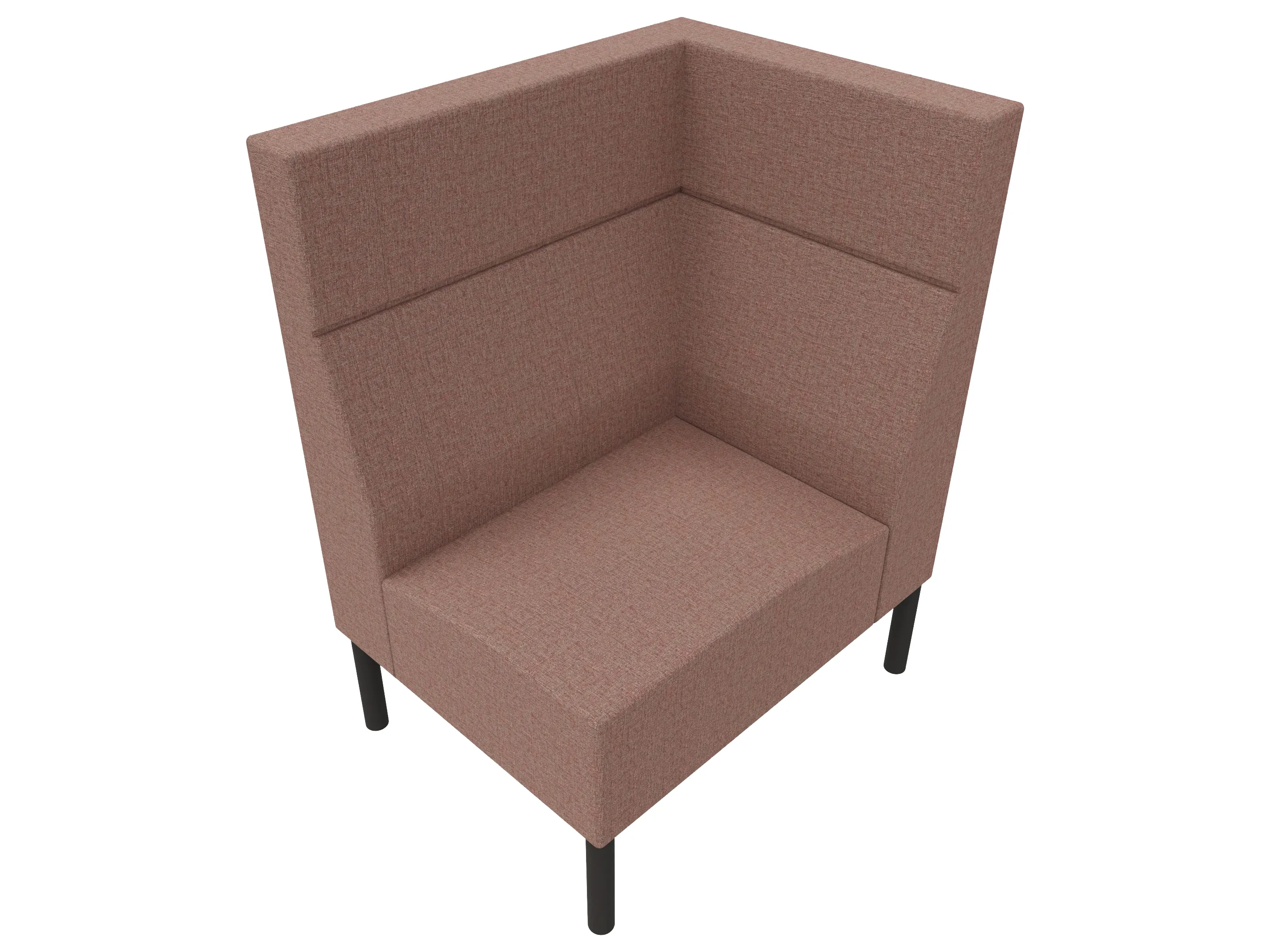Volledig gestoffeerde 1-zits bank met hoge ombouw aan de zijkanten en achterkant op een 4-poots frame. 850 x 620 x 1030mm (B x D x H).