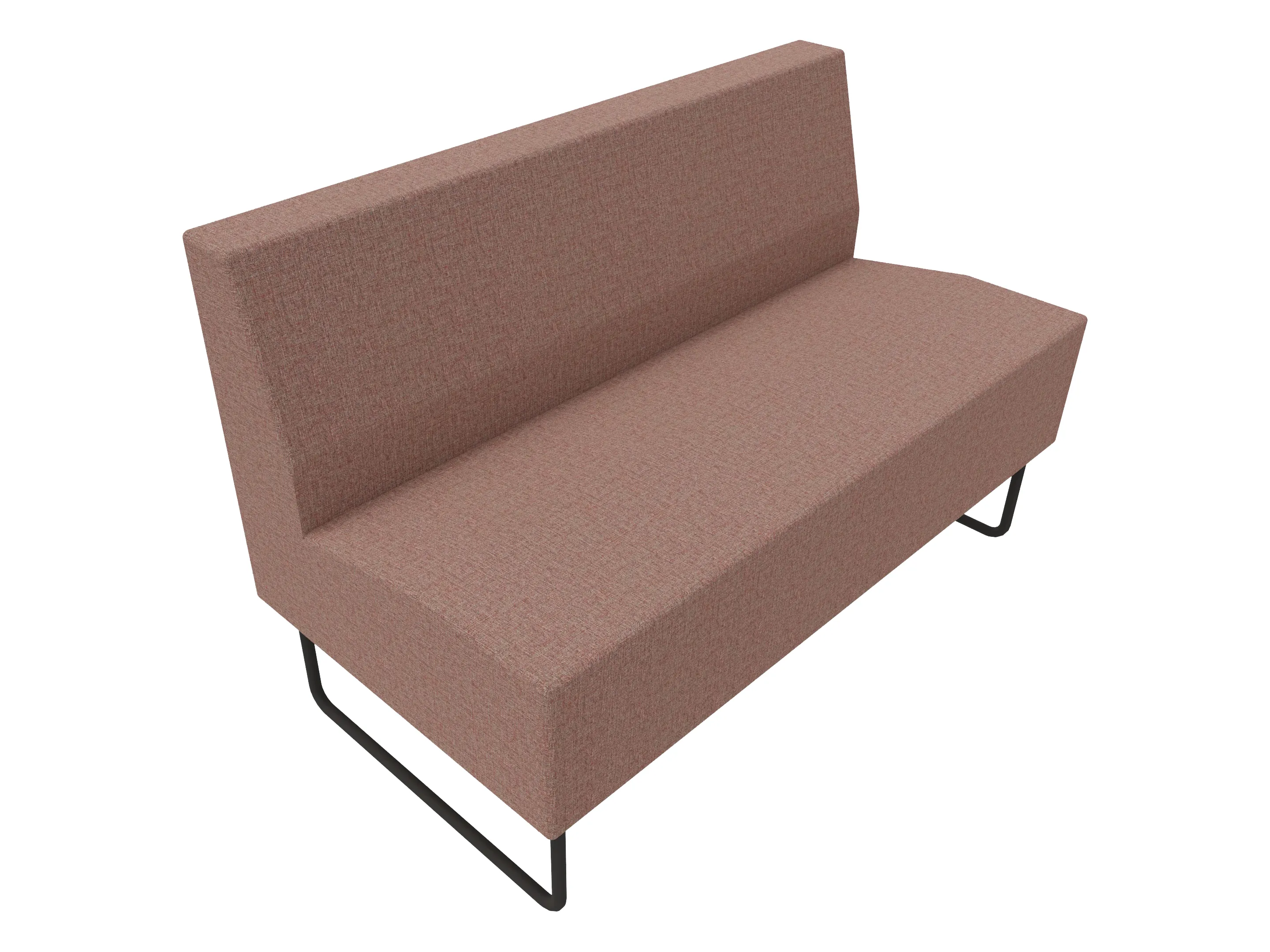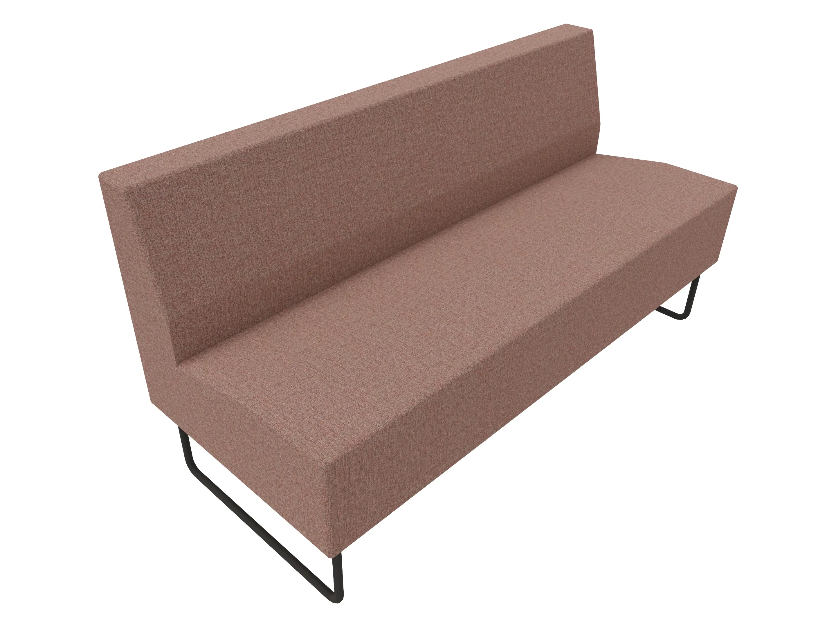 Volledige gestoffeerde bank van 620mm breed, rechte module, lage rug (770mm totale hoogte) op een sledeframe. Zonder armleuningen.