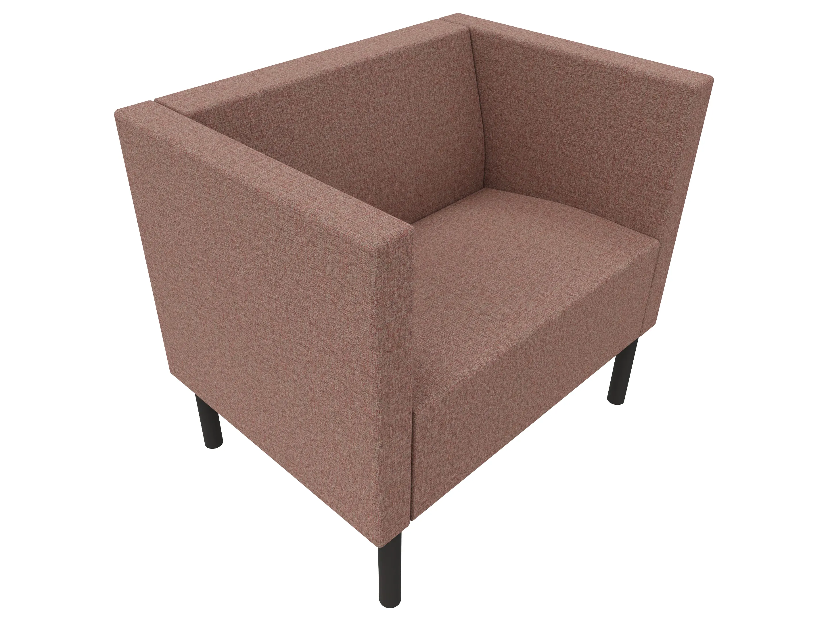Volledig gestoffeerde 1-zits bank met lage ombouw aan de zijkanten en achterkant op een 4-poots frame. 850 x 620 x 770mm (B x D x H).