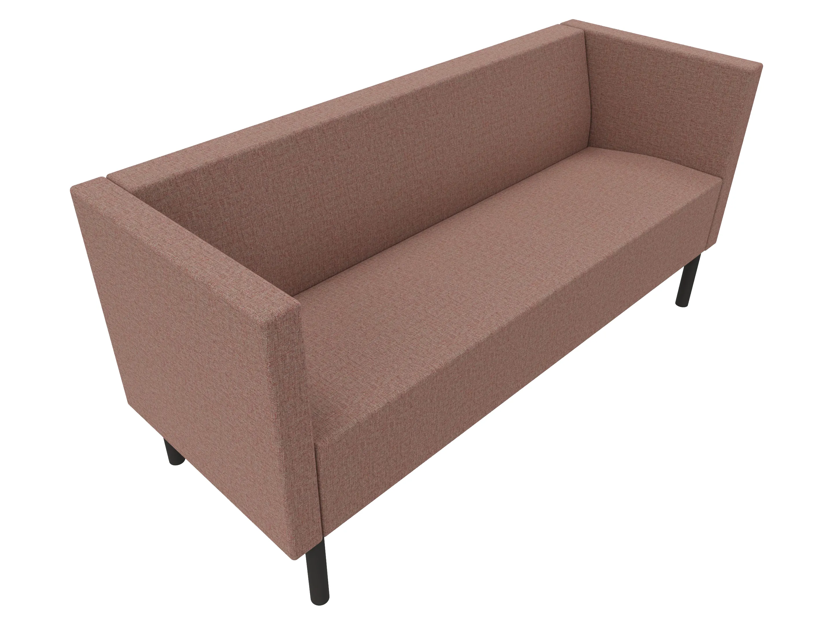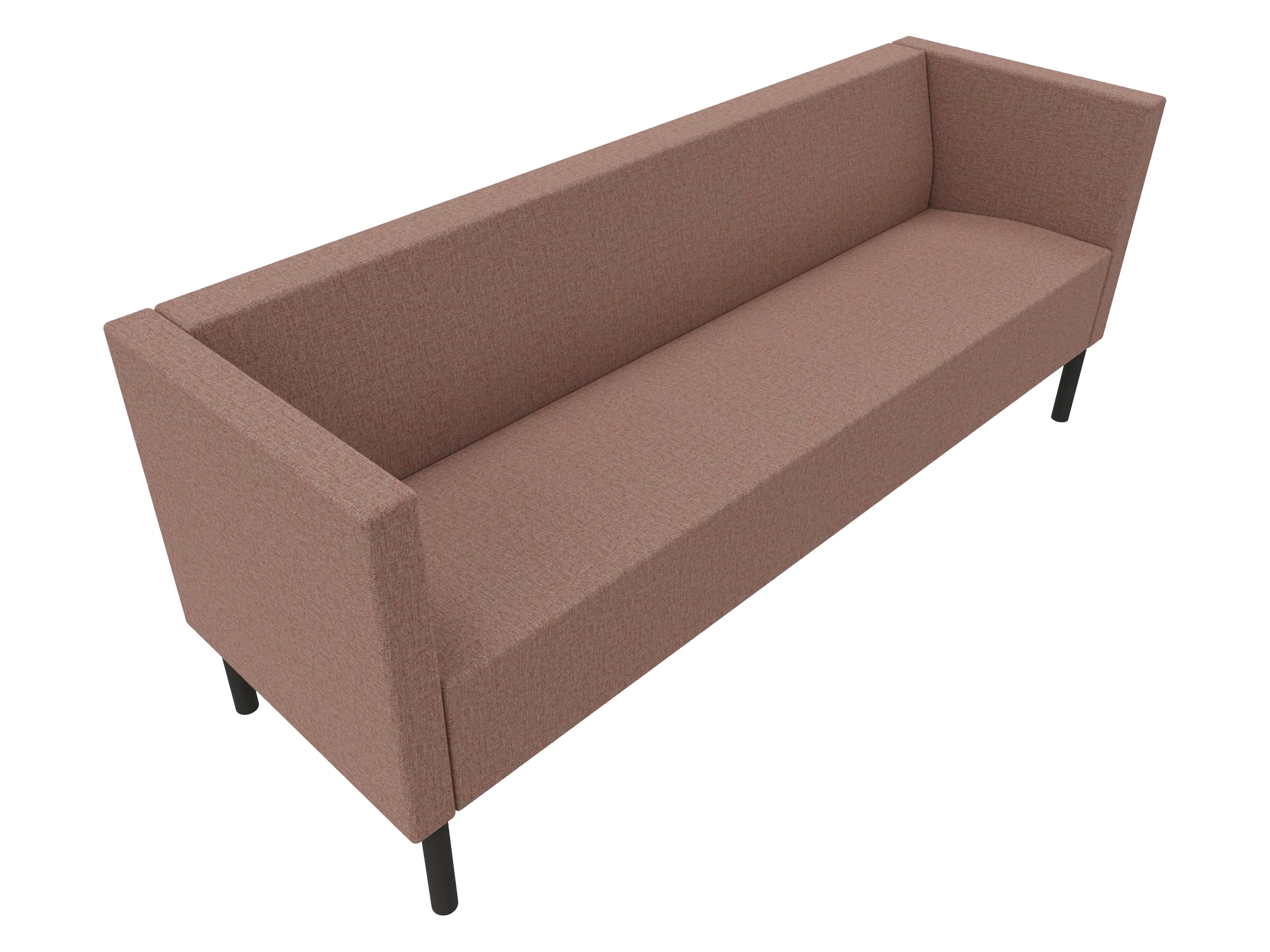 Volledige gestoffeerde bank van 800mm breed, hoekstuk, armleuning rechts voorstaand gezien, lage rug (770mm totale hoogte) op een 4-poots frame.