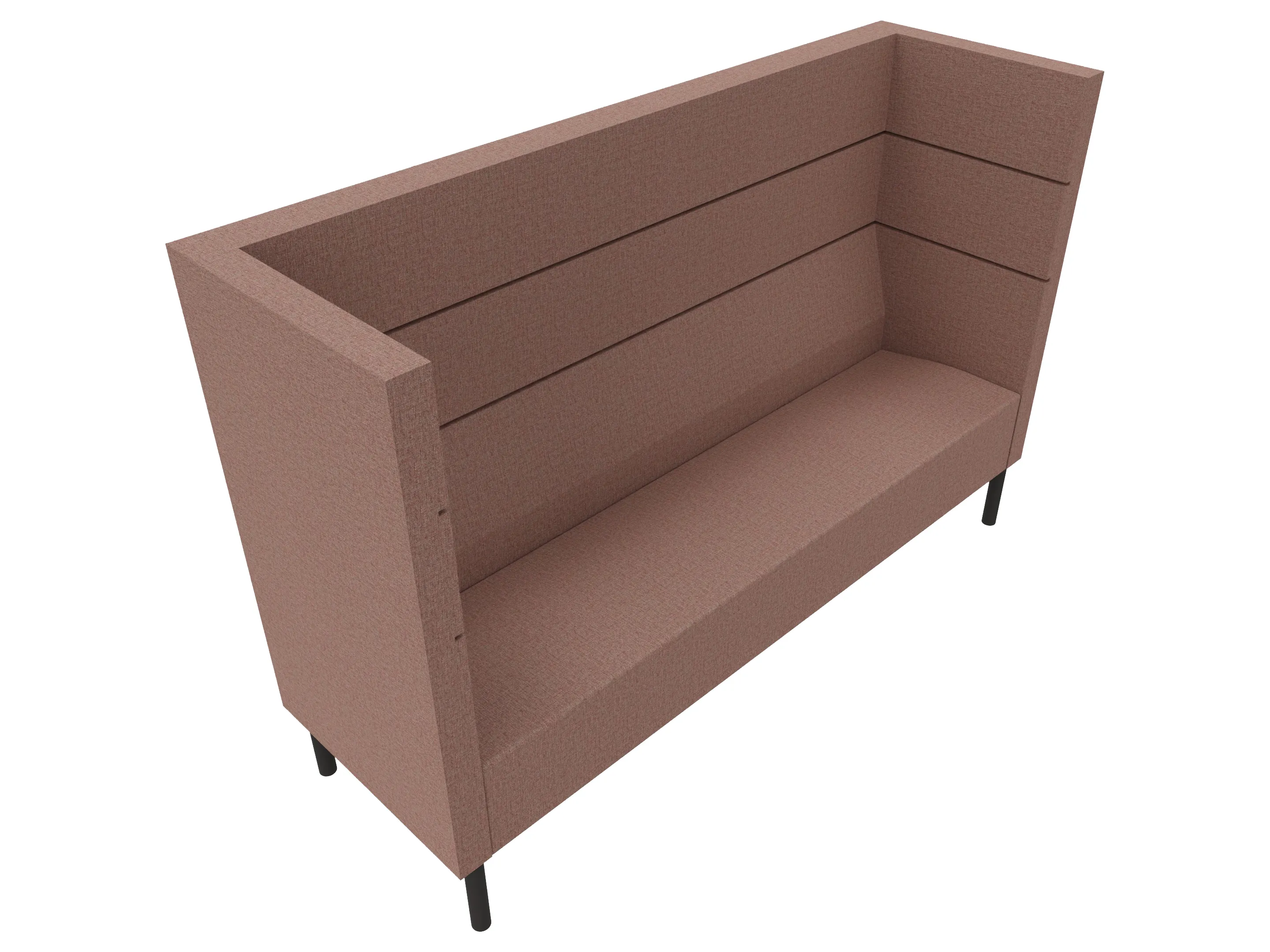 Volledig gestoffeerde 3-zits bank met extra hoge ombouw aan de zijkanten en achterkant op een 4-poots frame. 1950 x 620 x 1280mm (B x D x H).