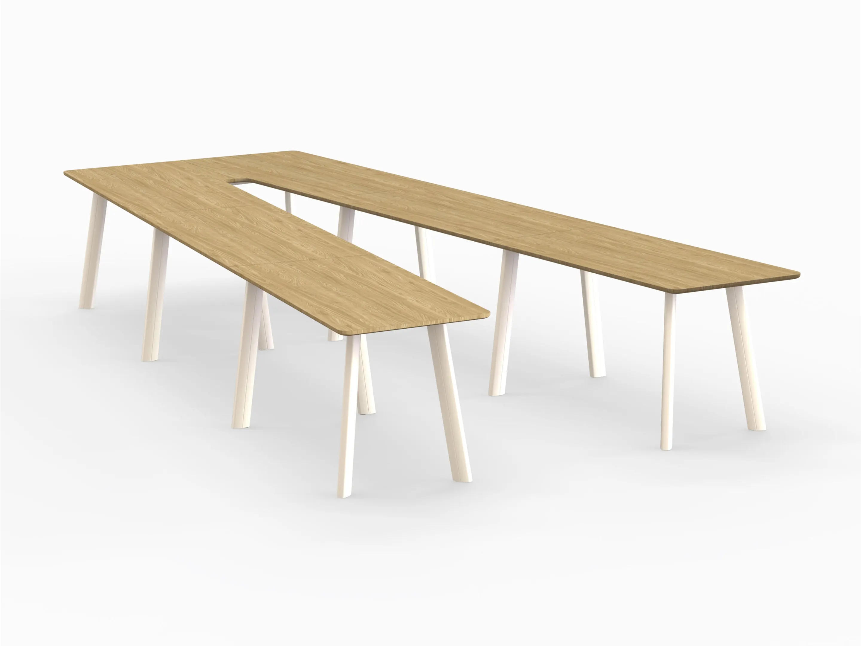 Metro II vergadertafel - V-vormig, 4200 x 2300/1500mm, 14-poots onderstel