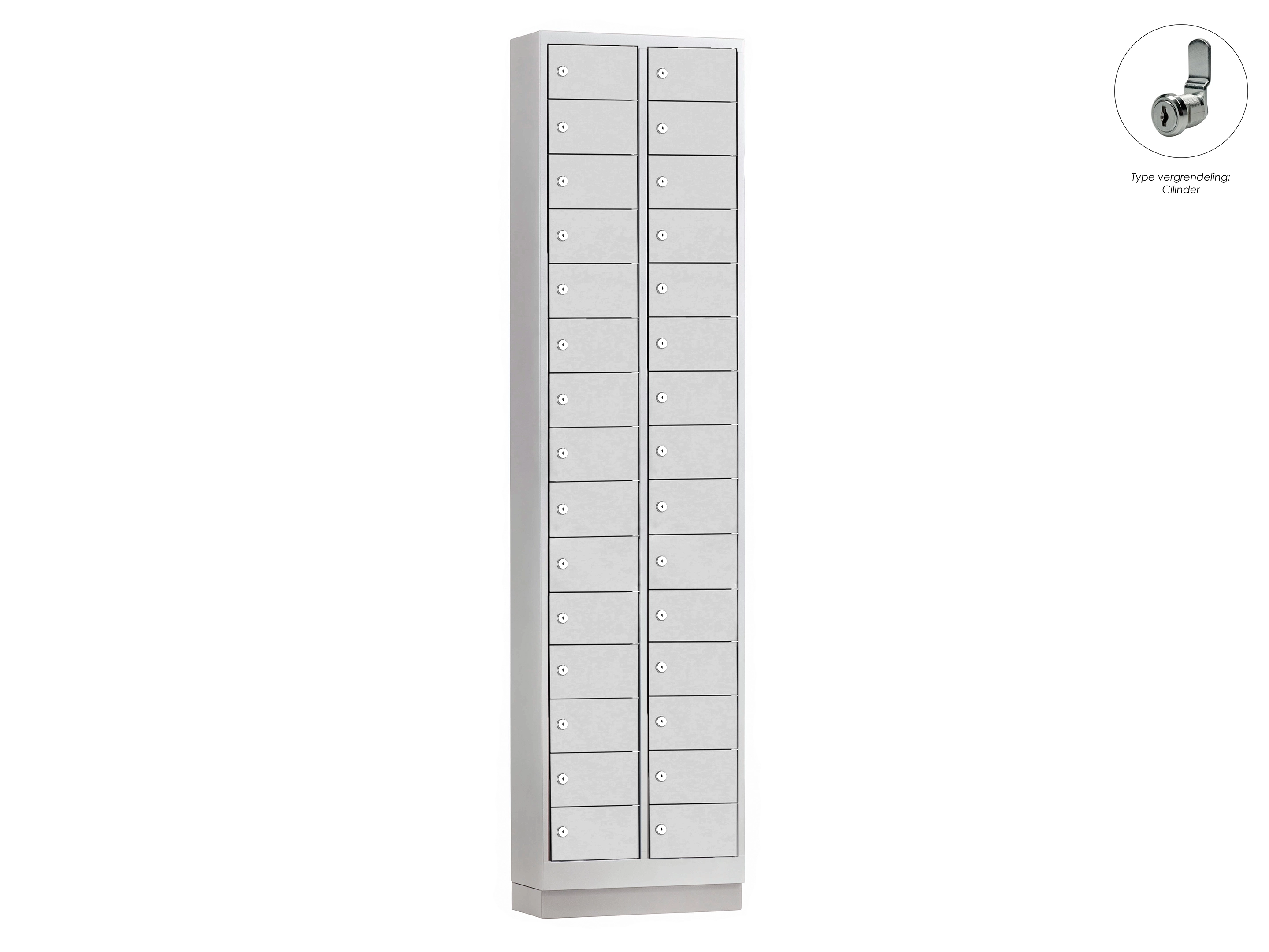 Minilocker ML - 2 kolomen, 30 deuren, 180x46x20 cm, grijs/grijs , cilinder