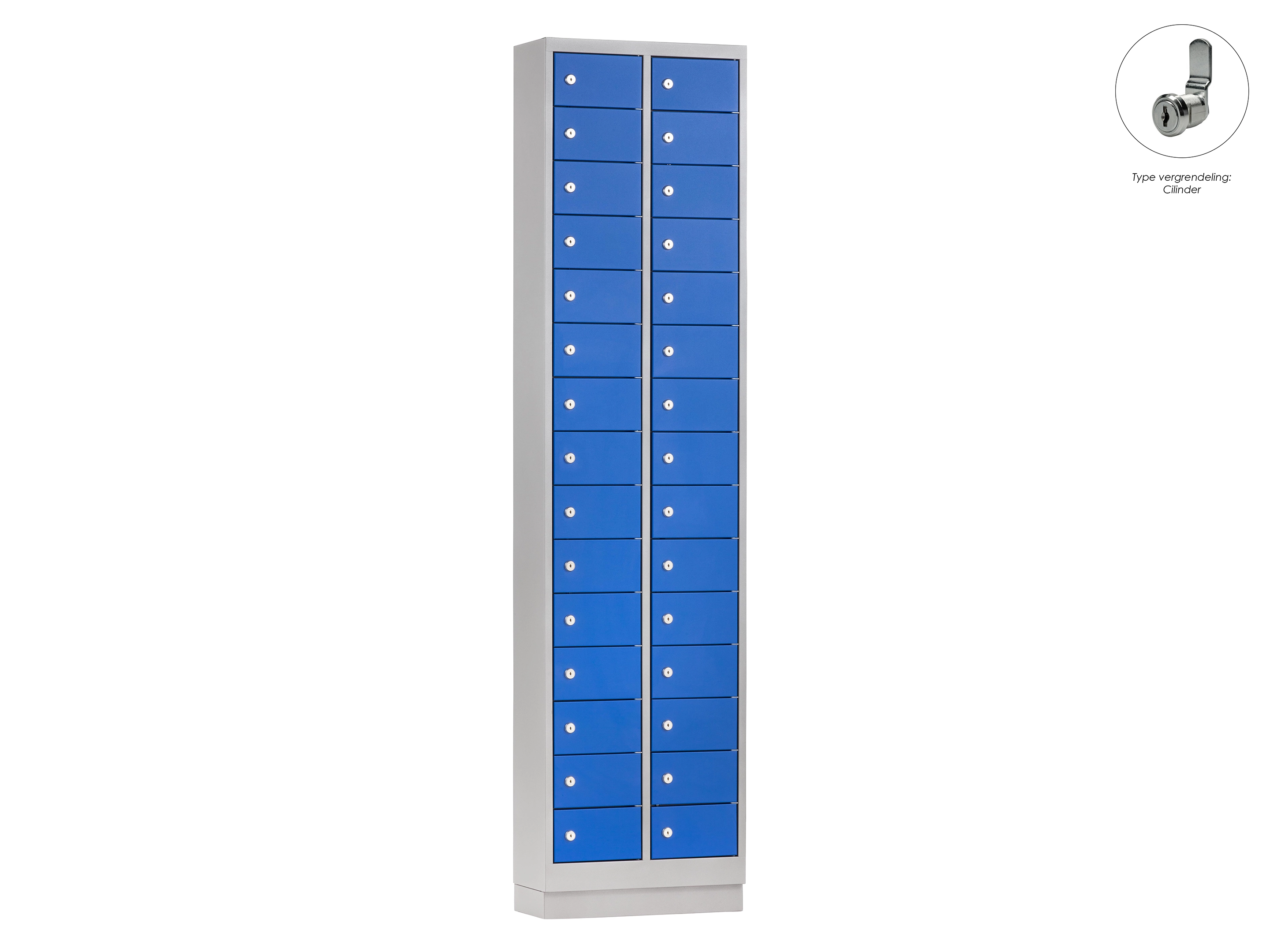 Minilocker ML - 2 kolomen, 30 deuren, 180x46x20 cm, grijs/blauw, cilinder