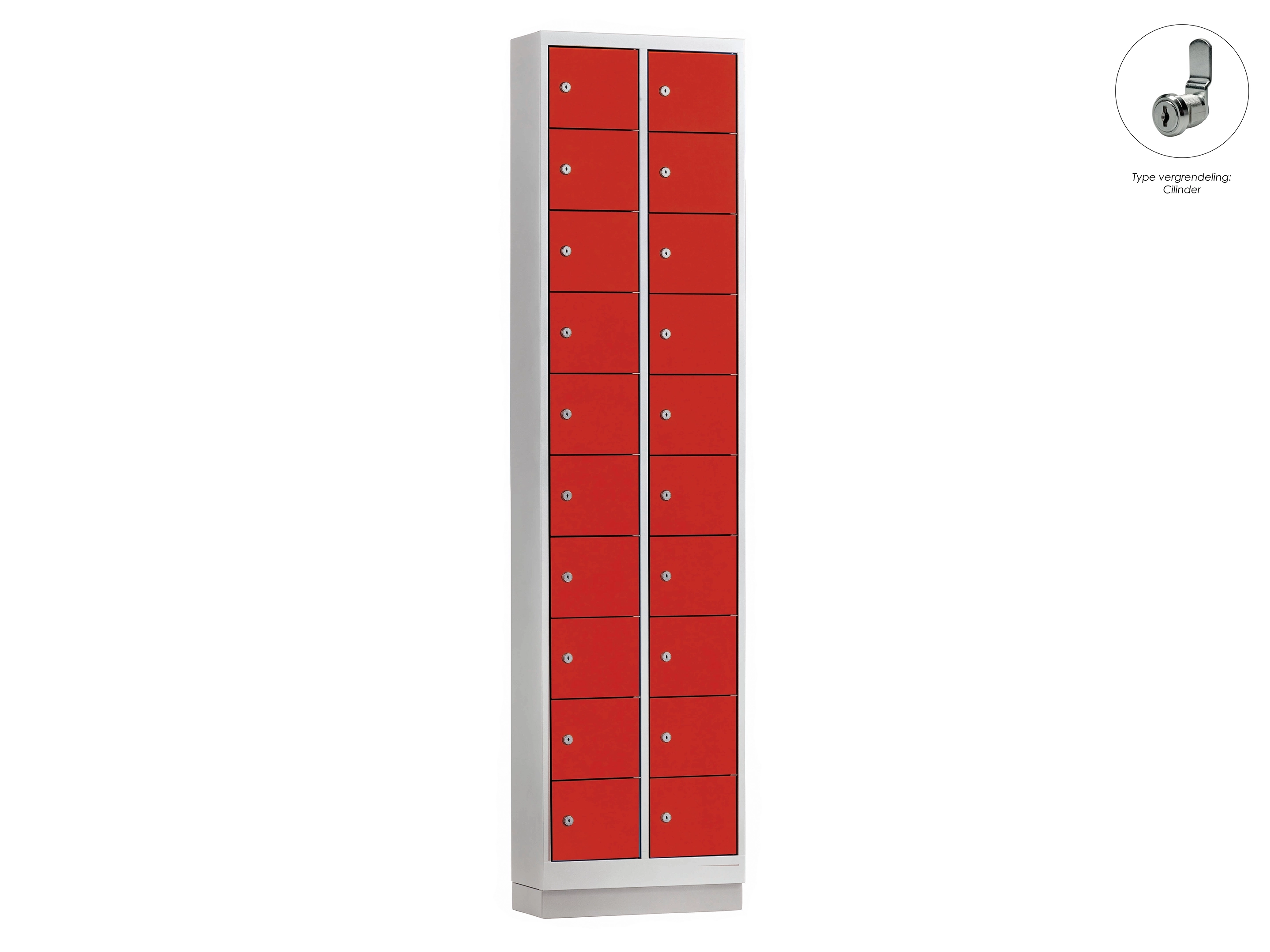 Minilocker ML - 2 kolomen, 20 deuren, 180x46x20 cm, grijs/rood, cilinder