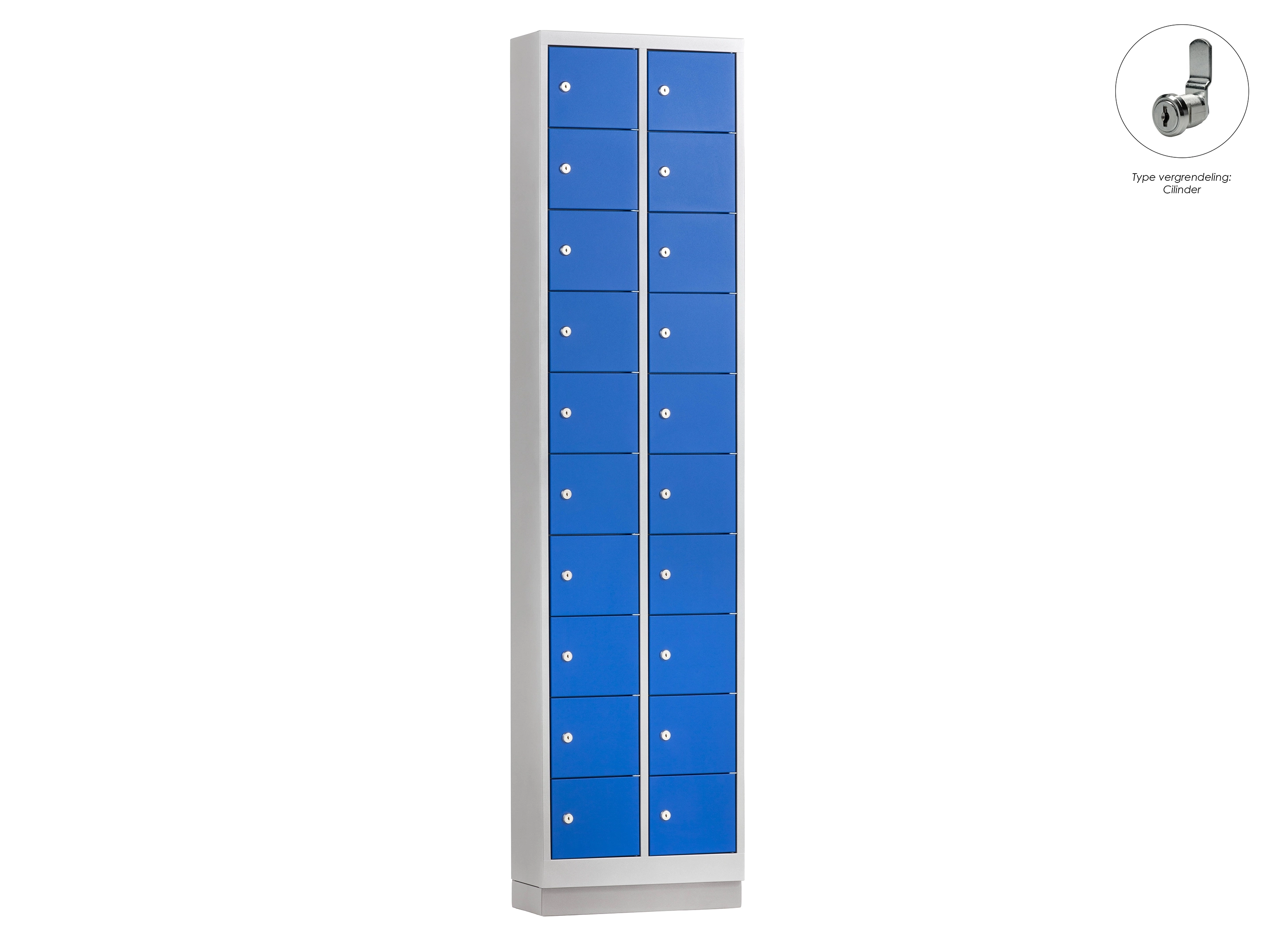 Minilocker ML - 2 kolomen, 20 deuren, 180x46x20 cm, grijs/blauw, cilinder