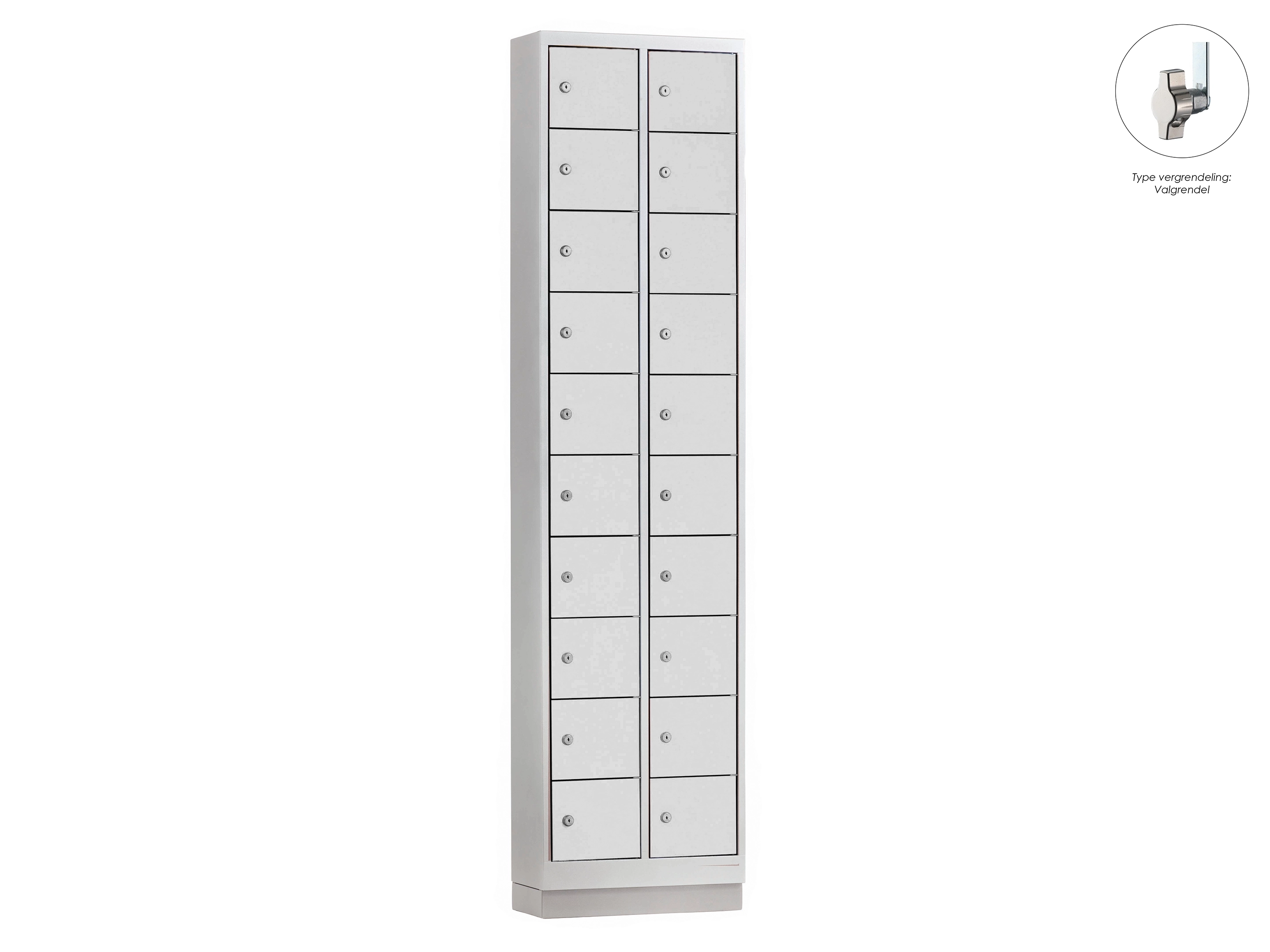 Minilocker ML - 2 kolomen, 20 deuren, 180x46x20 cm, grijs/grijs, valgrendel