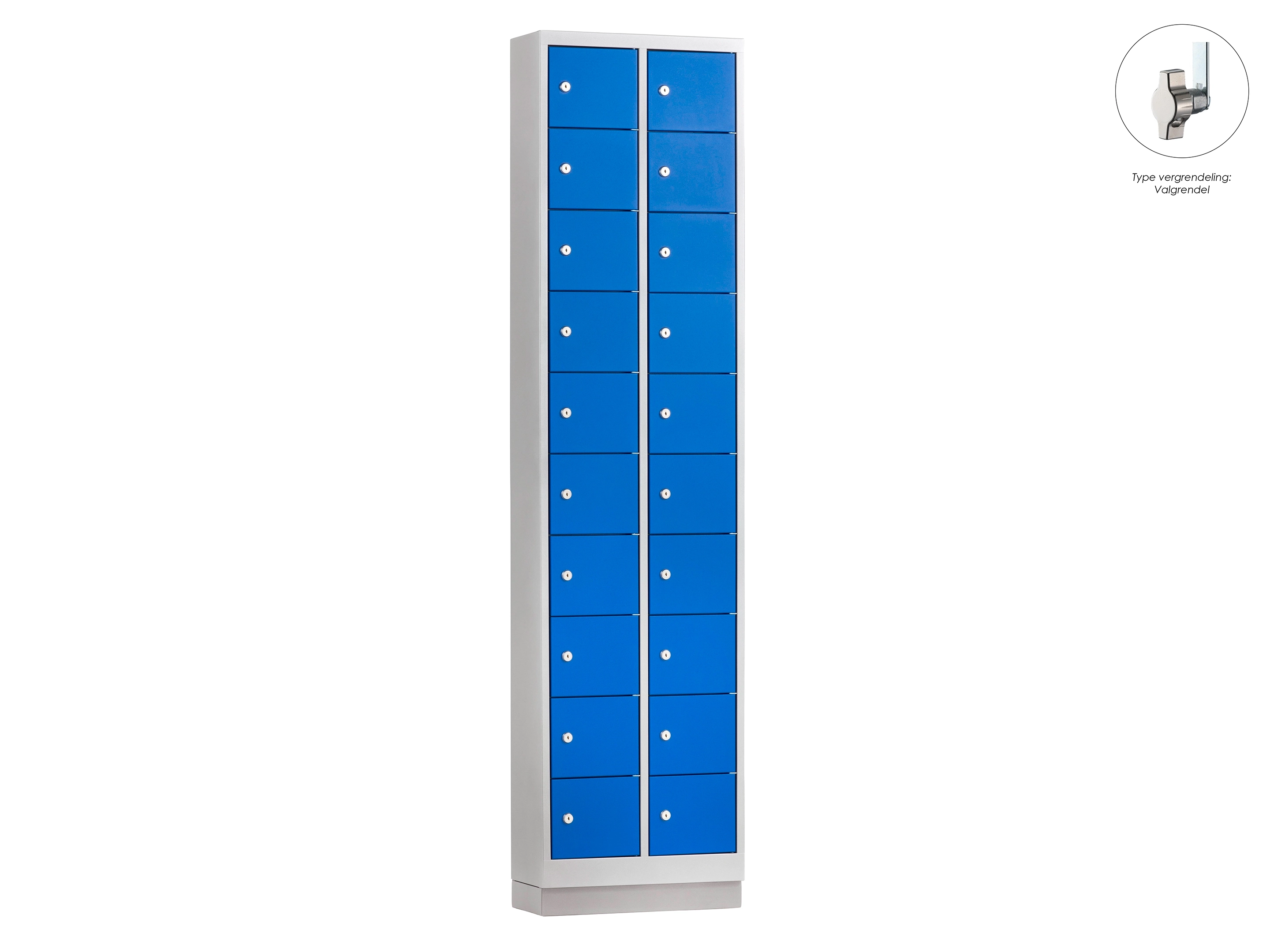 Minilocker ML - 2 kolomen, 20 deuren, 180x46x20 cm, grijs/blauw, valgrendel