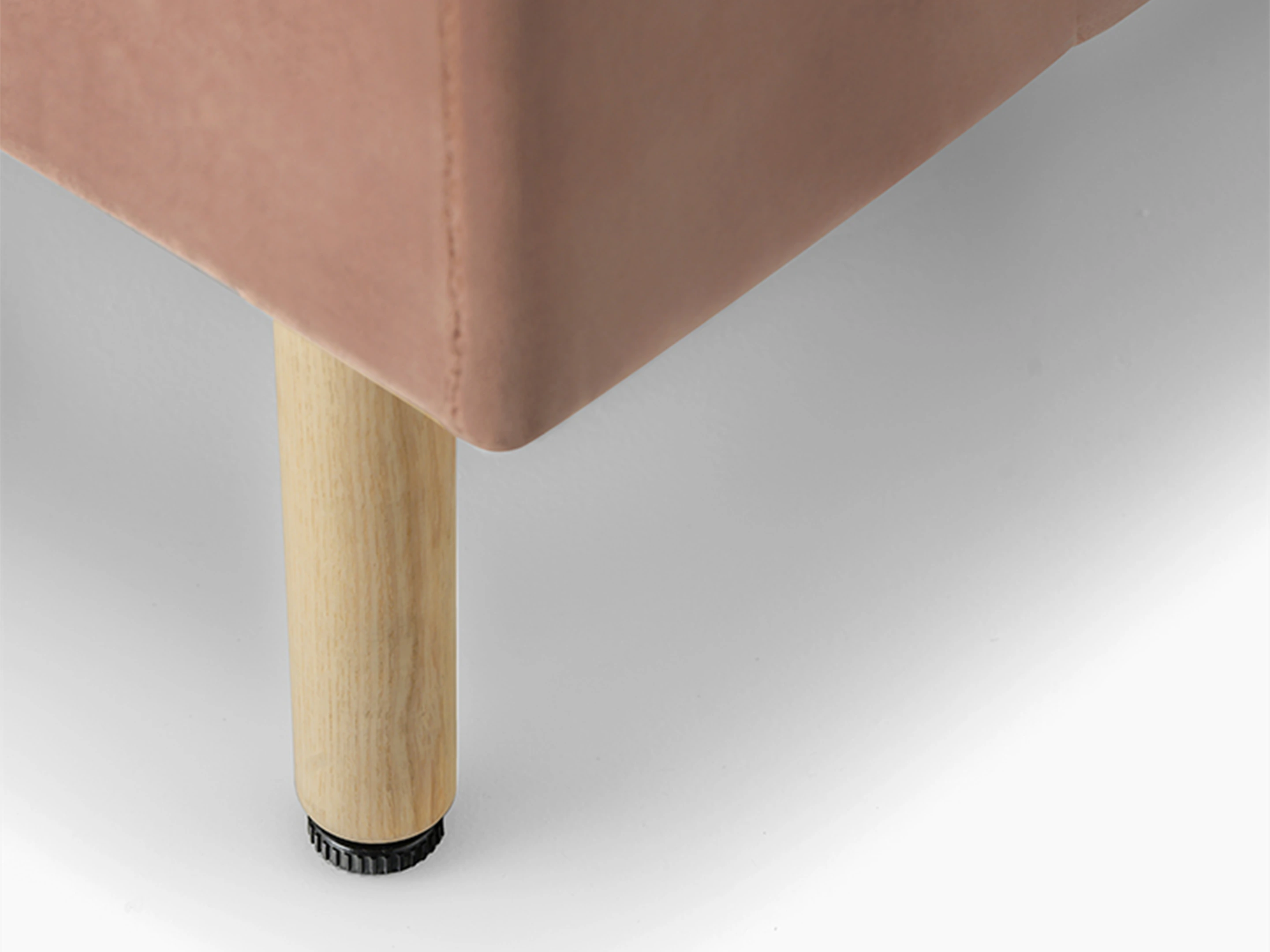 Treinbank volledig gestoffeerd, gemonteerd op ronde houten poten. Standaard vlak gestoffeerd. Afmeting: 1000 x 640 x 1100mm (BxDxH)