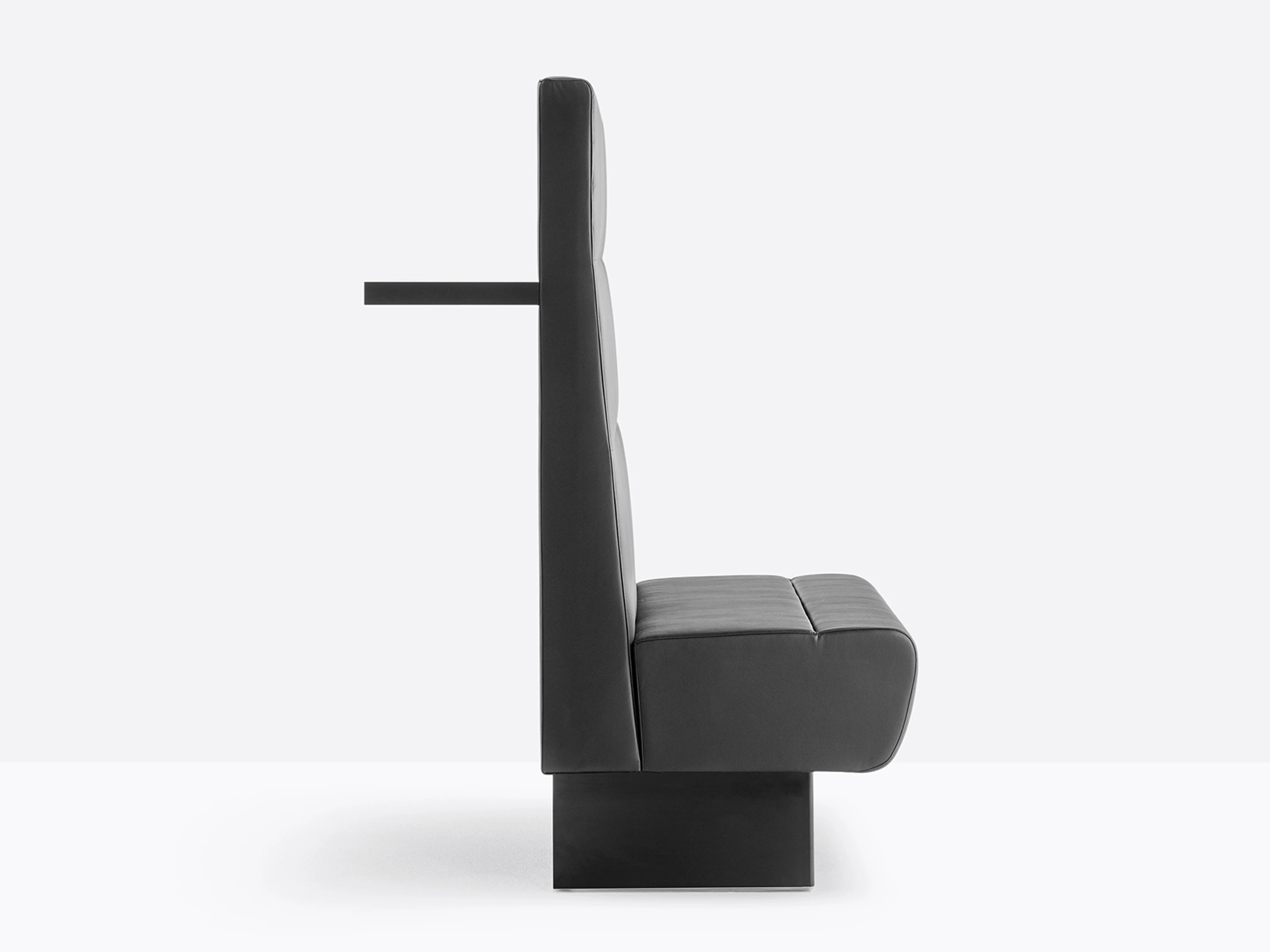 Treinbank volledig gestoffeerd en voorzien van een aluminium plint (in kleur). Standaard vlak gestoffeerd. Afmeting: 1000 x 640 x 1400mm (BxDxH)