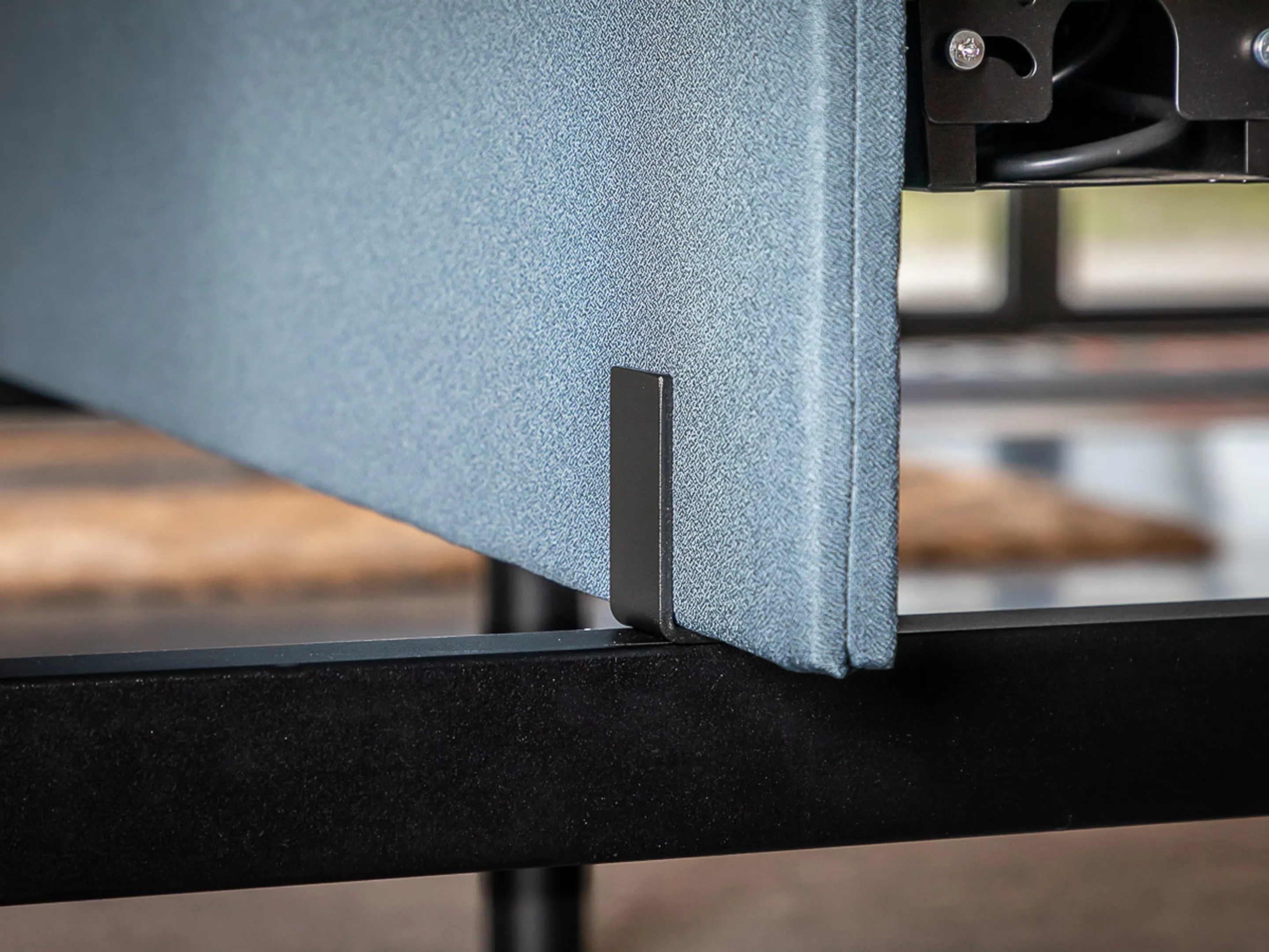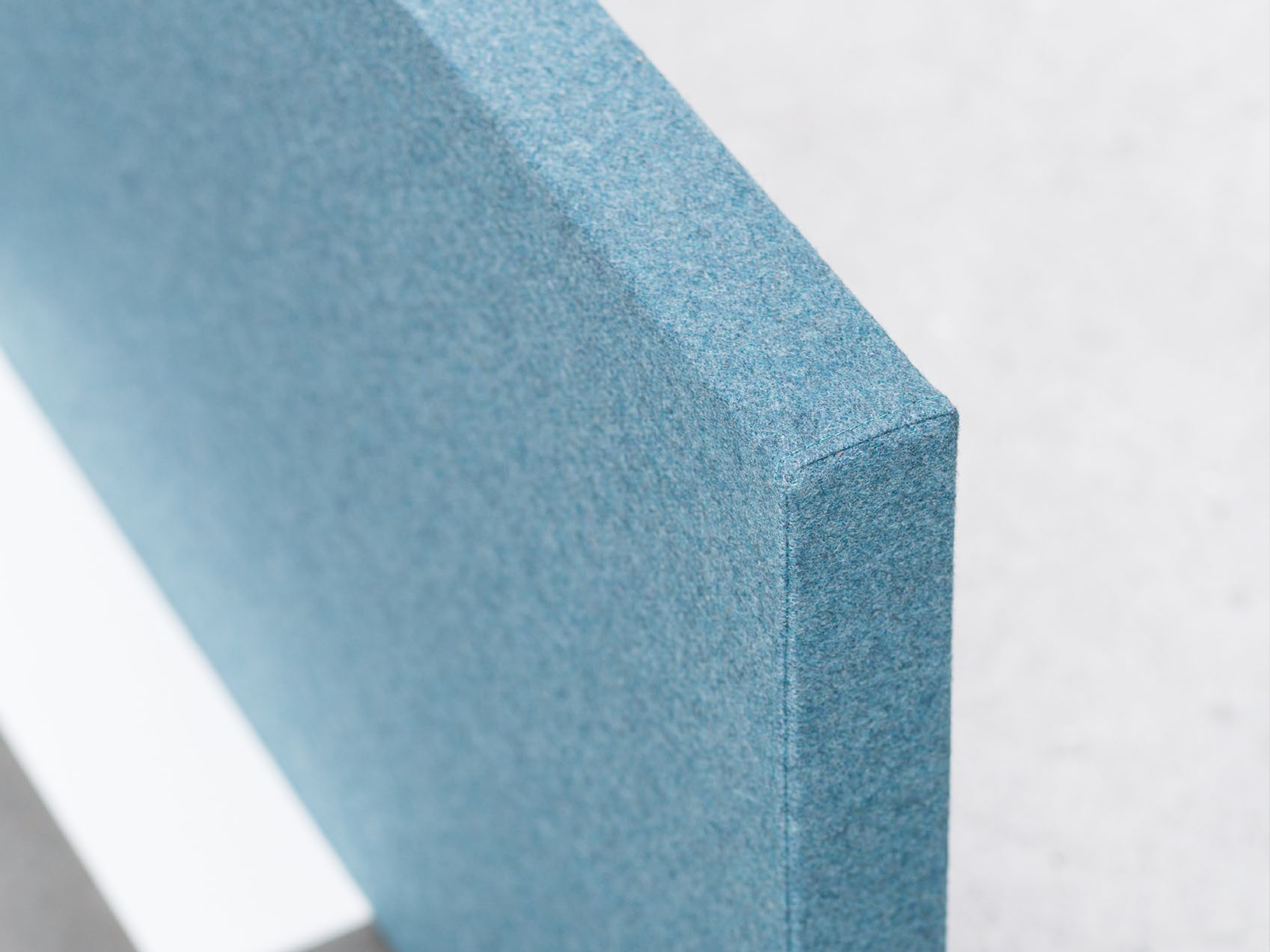 Akoestische vulling op basis van gerecycleerde textiel- vezel. Per zijde van een wand een akoestische waardes van αw= 0,4[H] / NRC = 0,50. De wanden zijn voorzien van een “harde” kern. Bij deze wand is een stiknaad zichtbaar in het midden van de wand