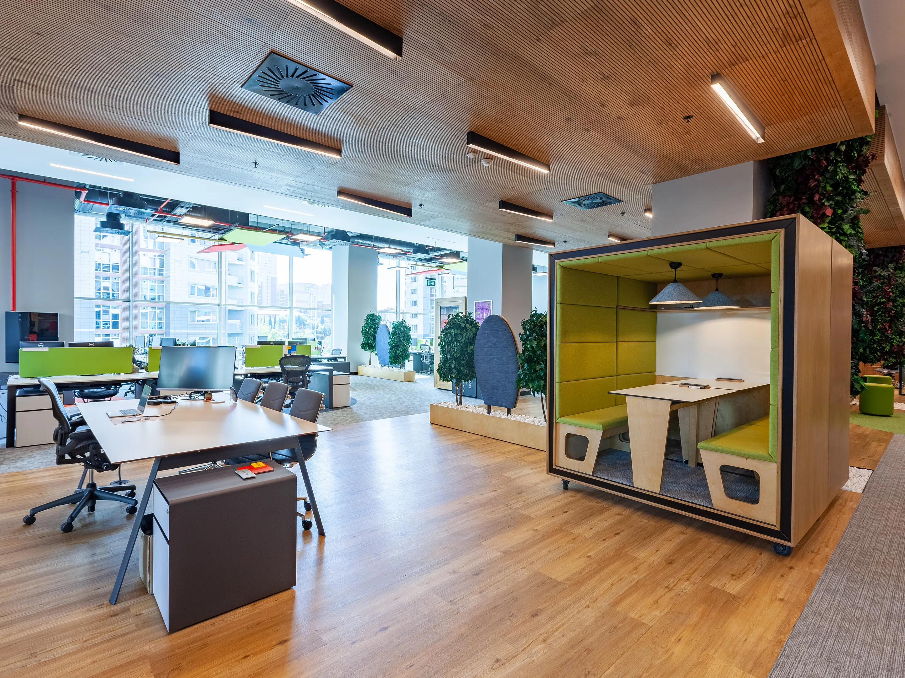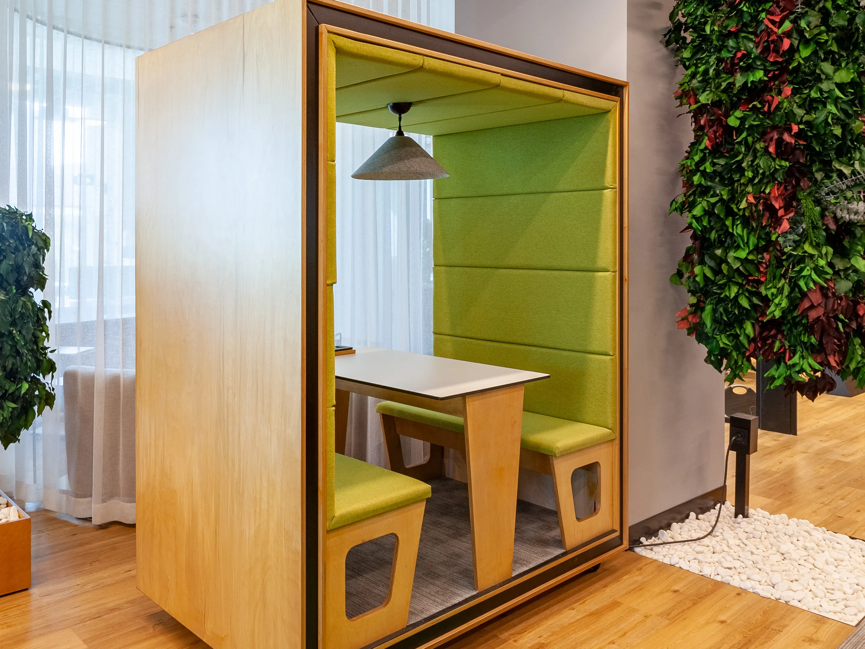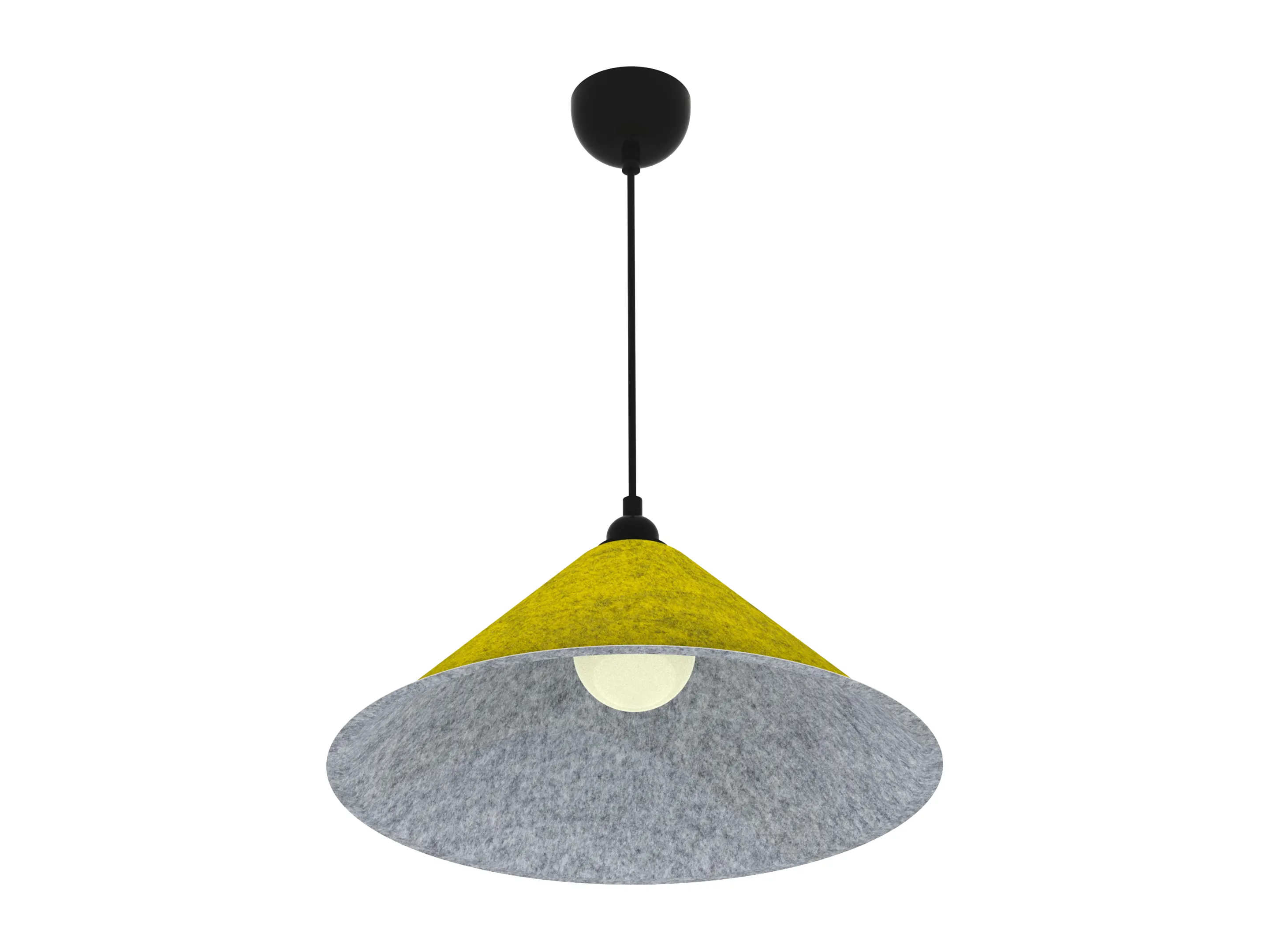 Akoestische hanglamp met een E27 fitting geschikt voor IP20 18W verlichting en een NRC Waarde van 0,65. Incl. 2m verstelbare kabel om de lamp op te hangen.