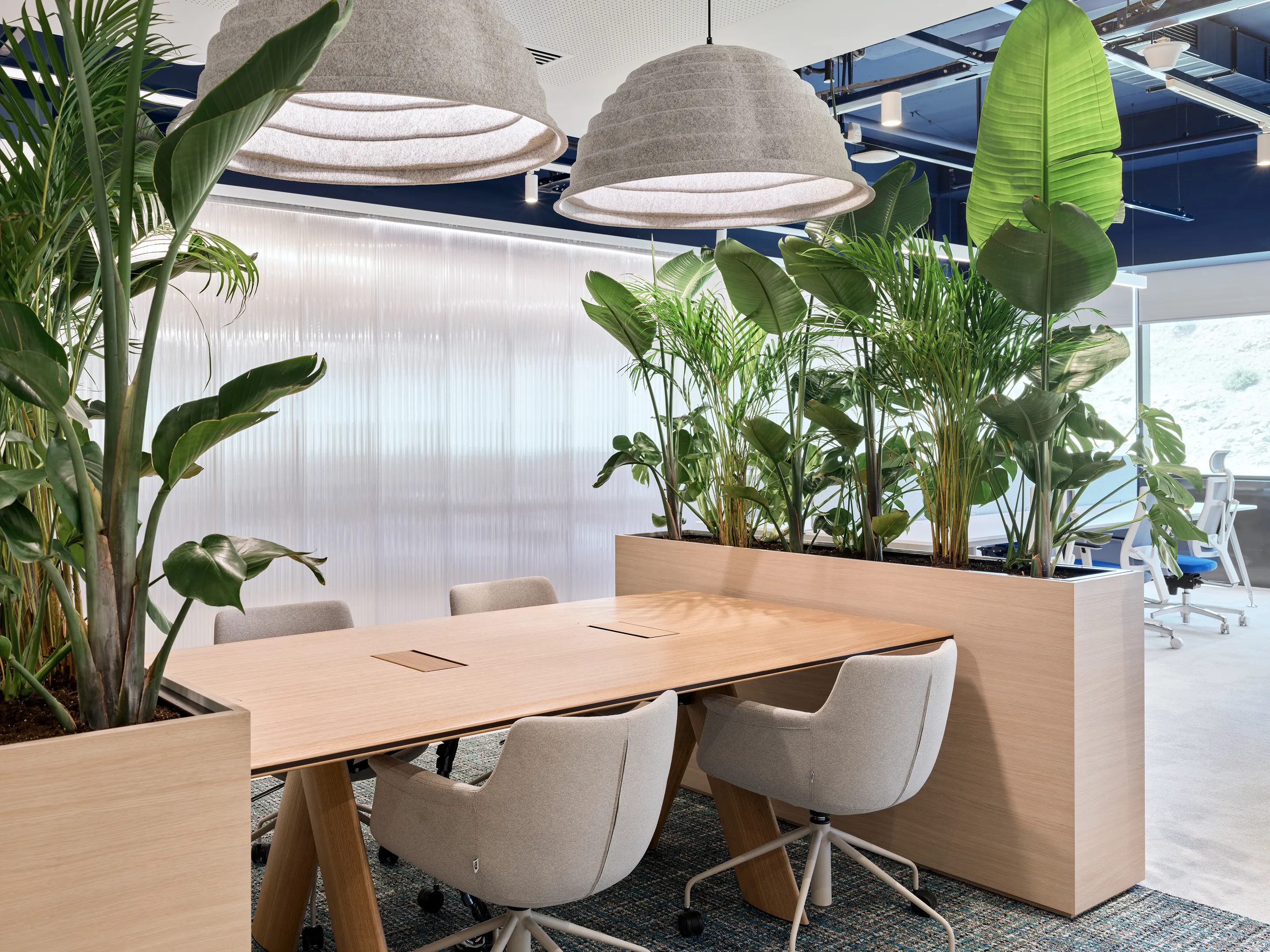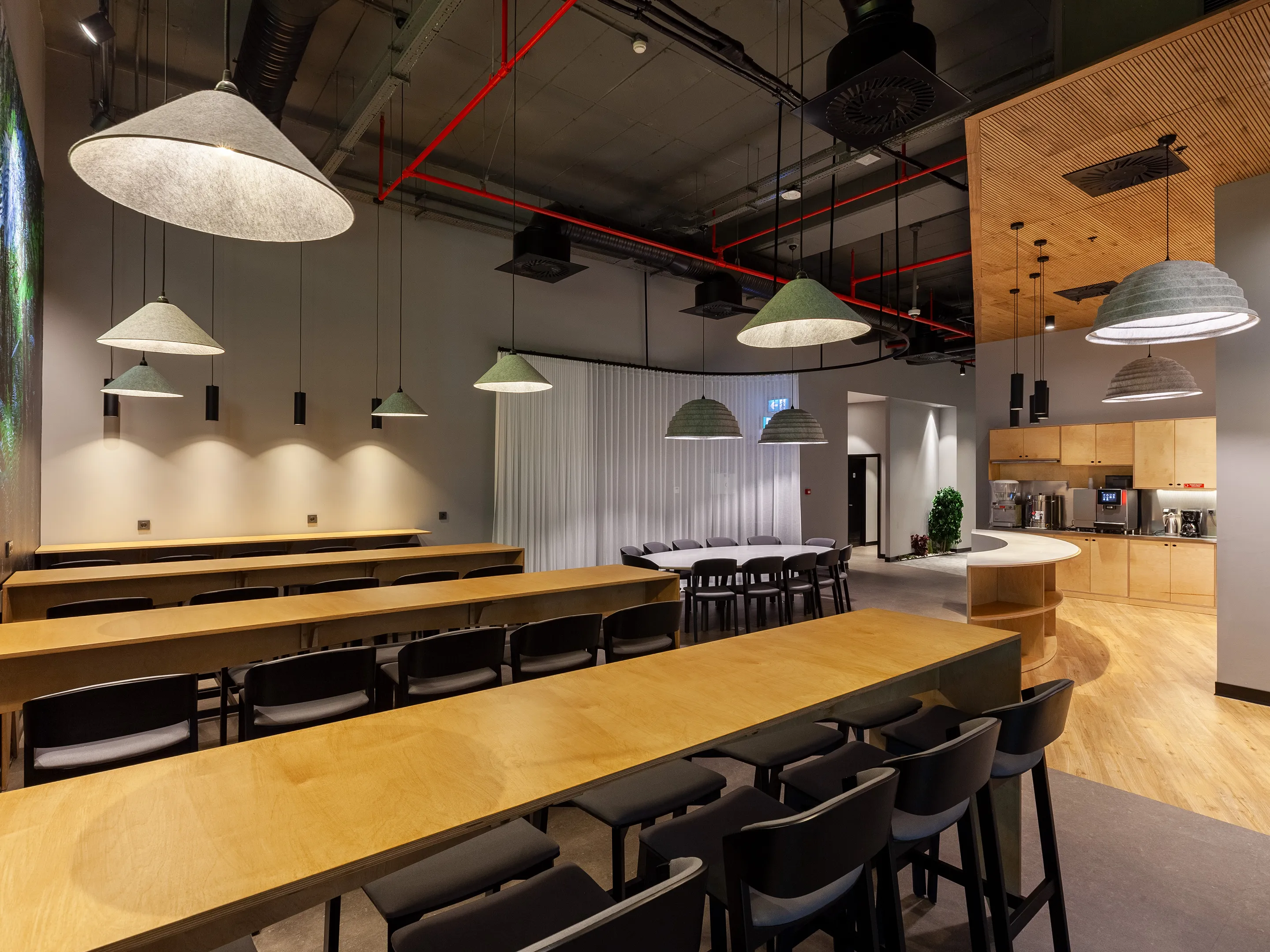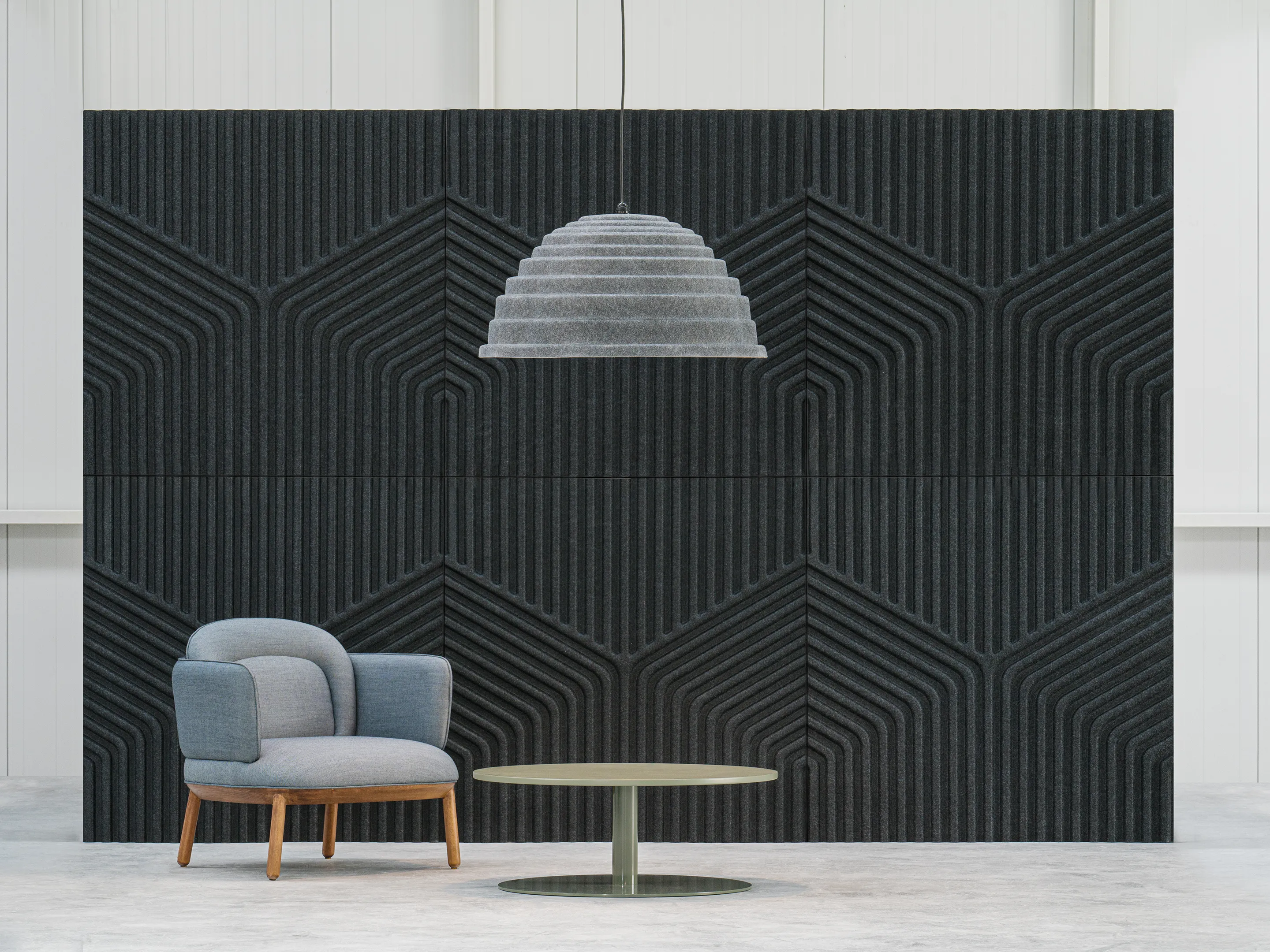 Akoestische hanglamp incl. IP20 26W LED verlichting en een NRC Waarde van 0,75. Incl. 2m verstelbare kabel om de lamp op te hangen.