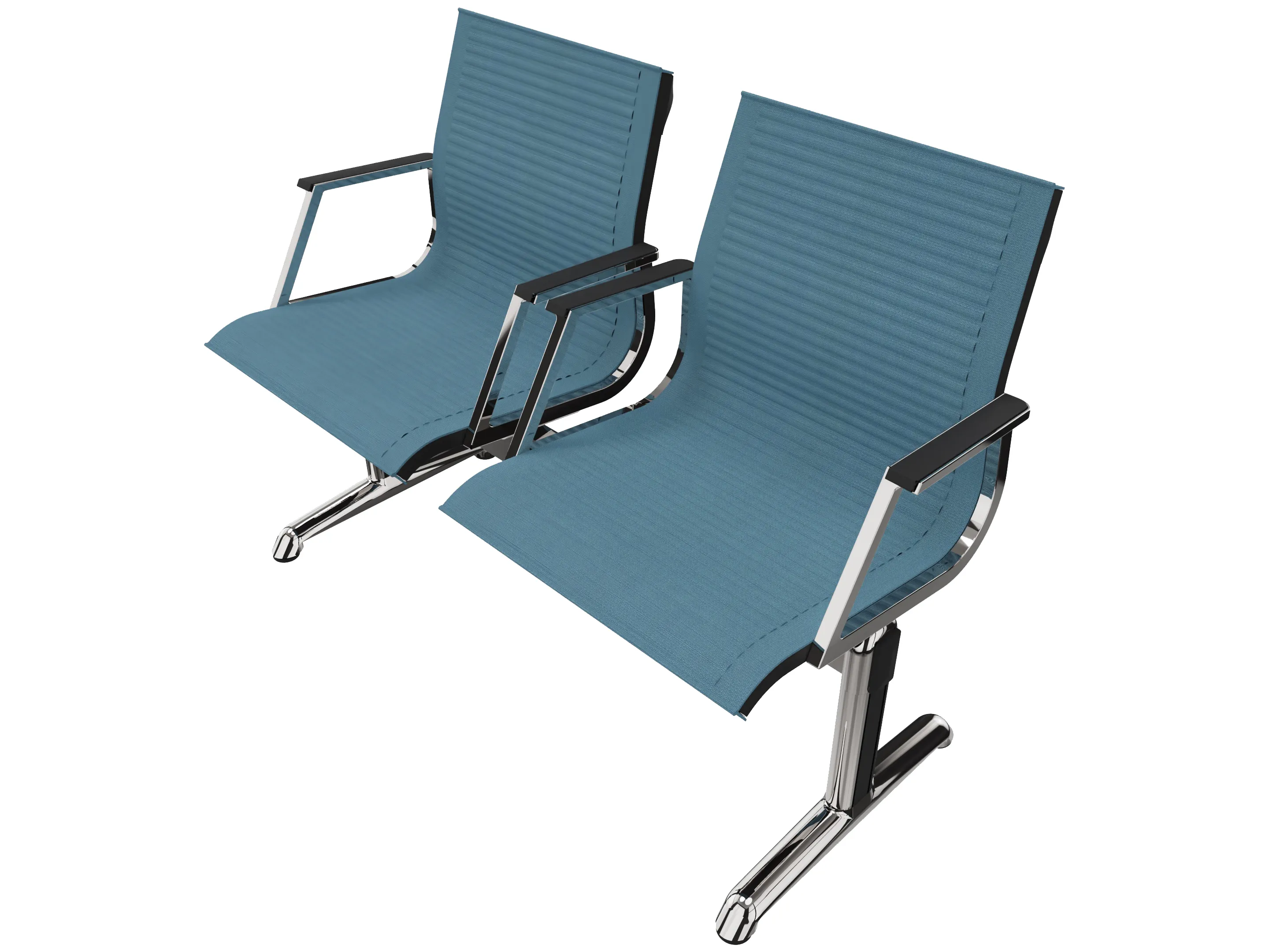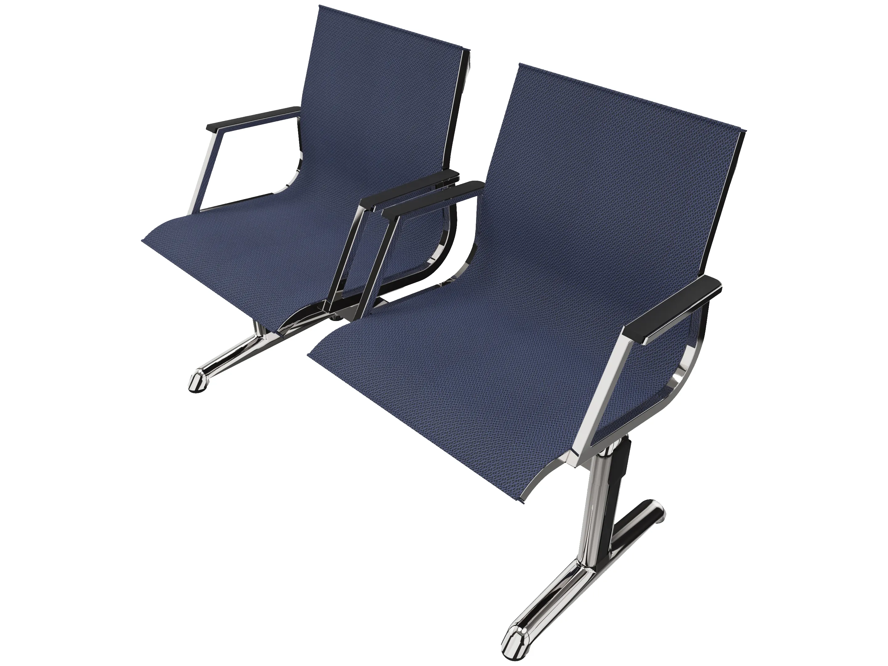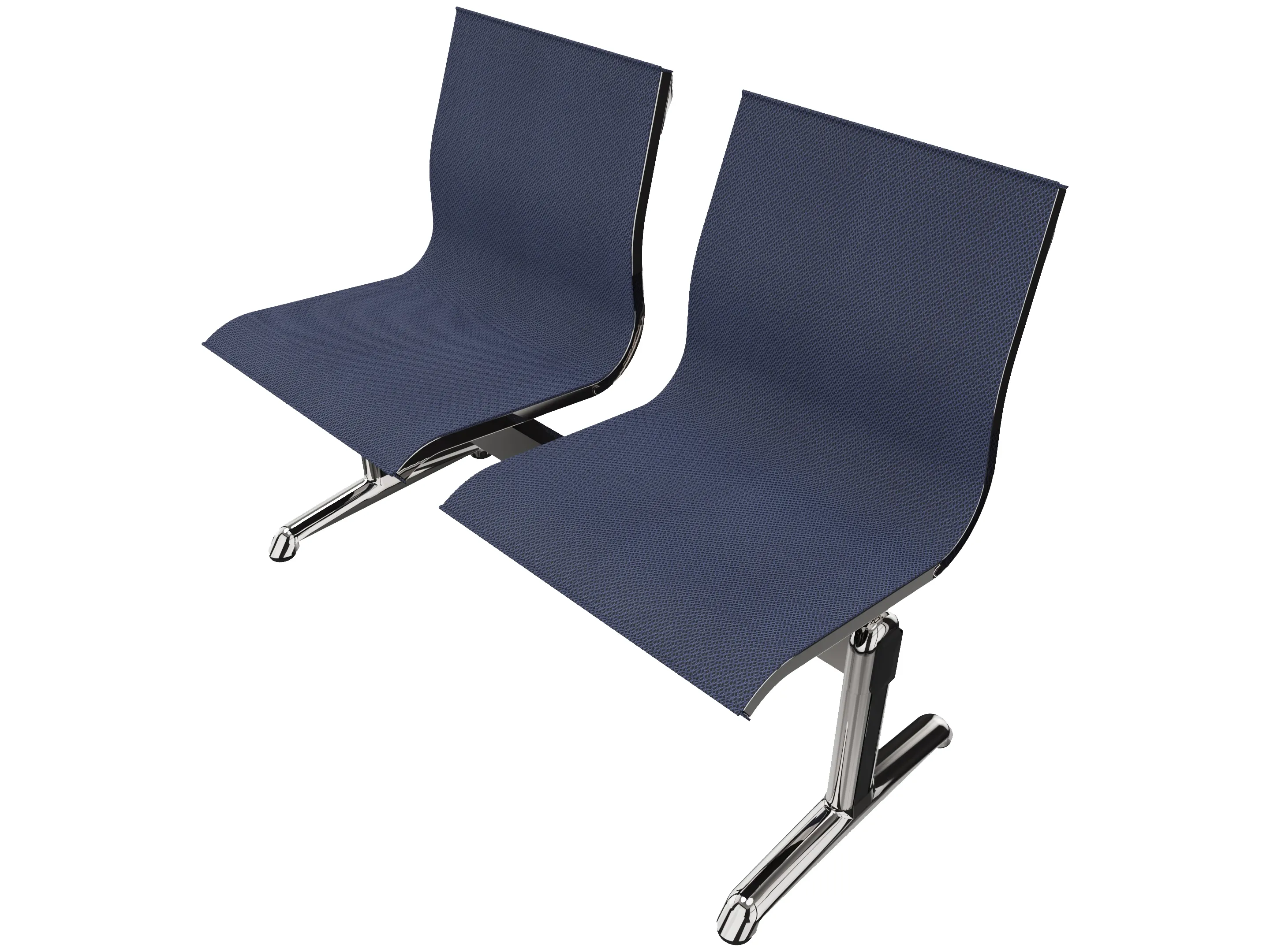 Wachtkamerbank in "mesh" 2-zits uitvoering "mesh", met 2 poten, en zonder armsteunen. Frame altijd verchroomd.