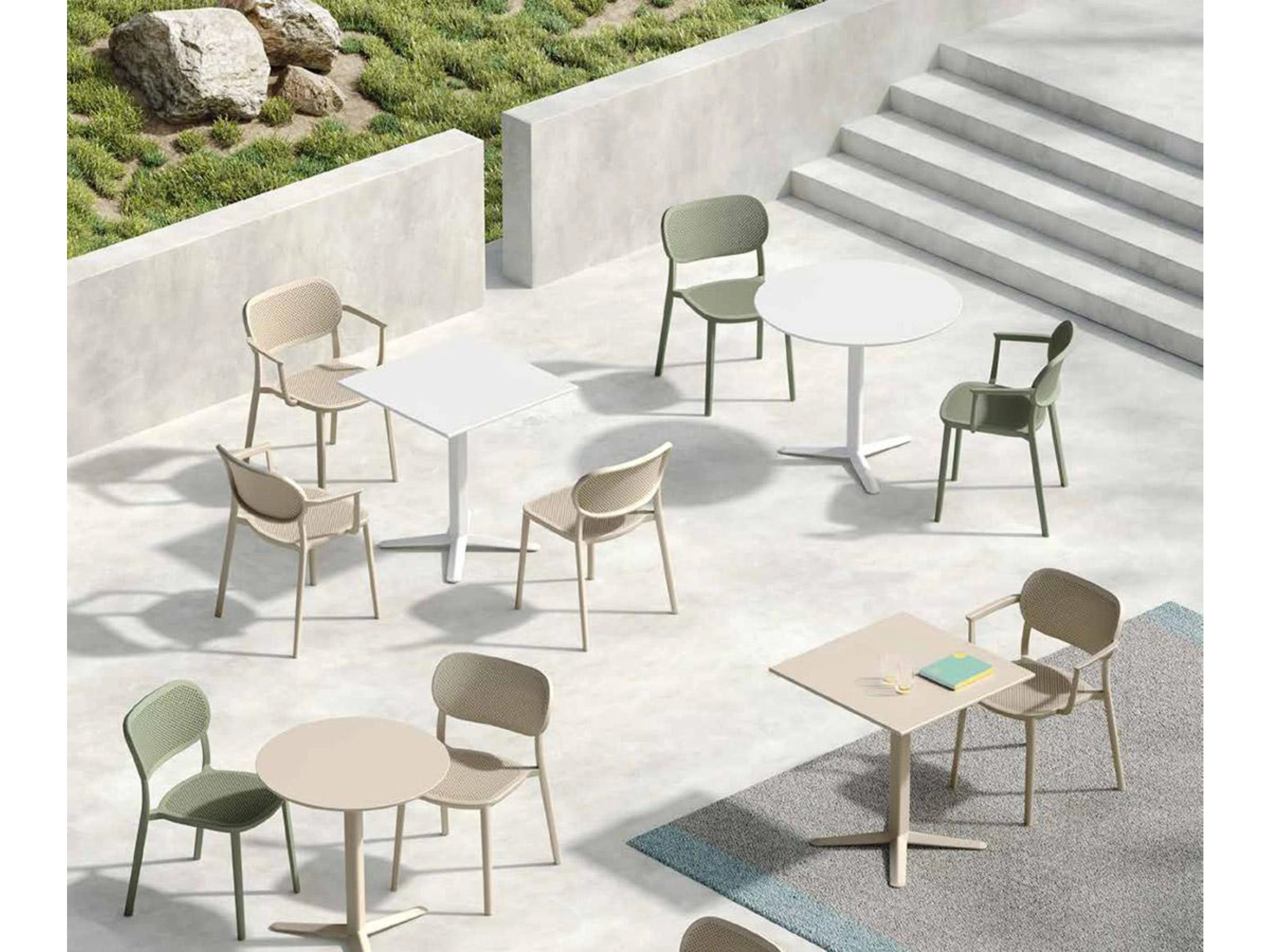 4-poots stoel volledig gemaakt van kunststof, inclusief armleggers.