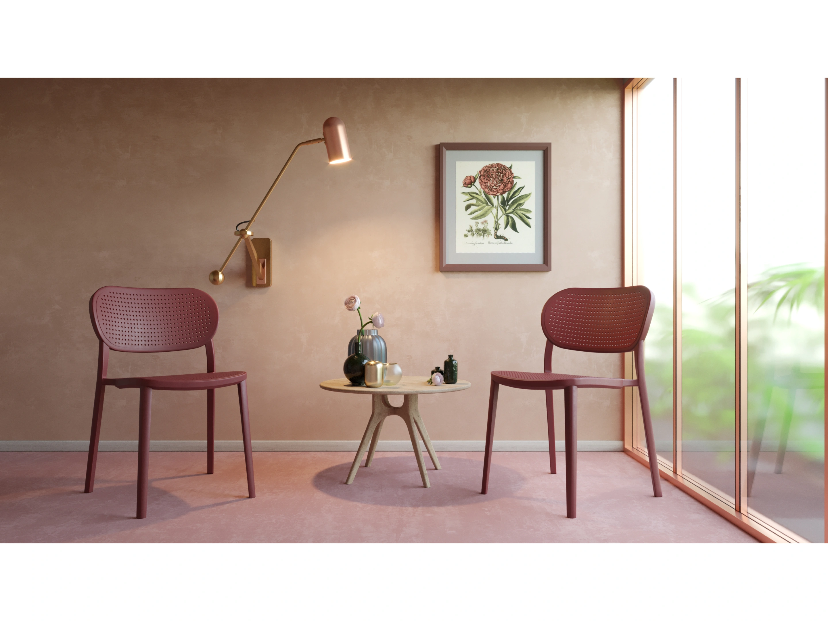 4-poots stoel volledig gemaakt van kunststof, exclusief armleggers.