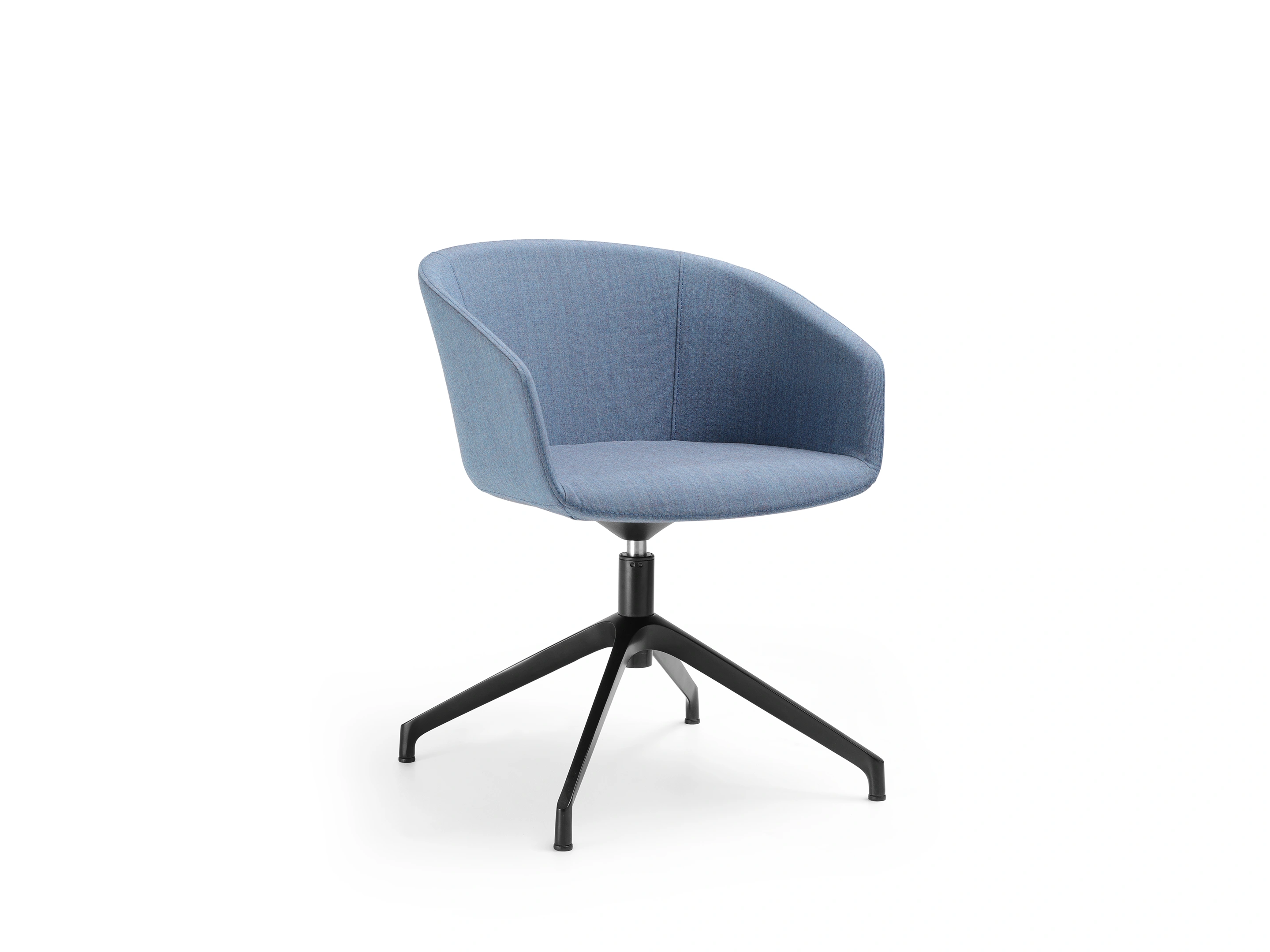 Volledig gestoffeerde, draaibare kuip met hoogteinstelling, gepolijst aluminium 4-teens voetkruis voorzien van glijddoppen