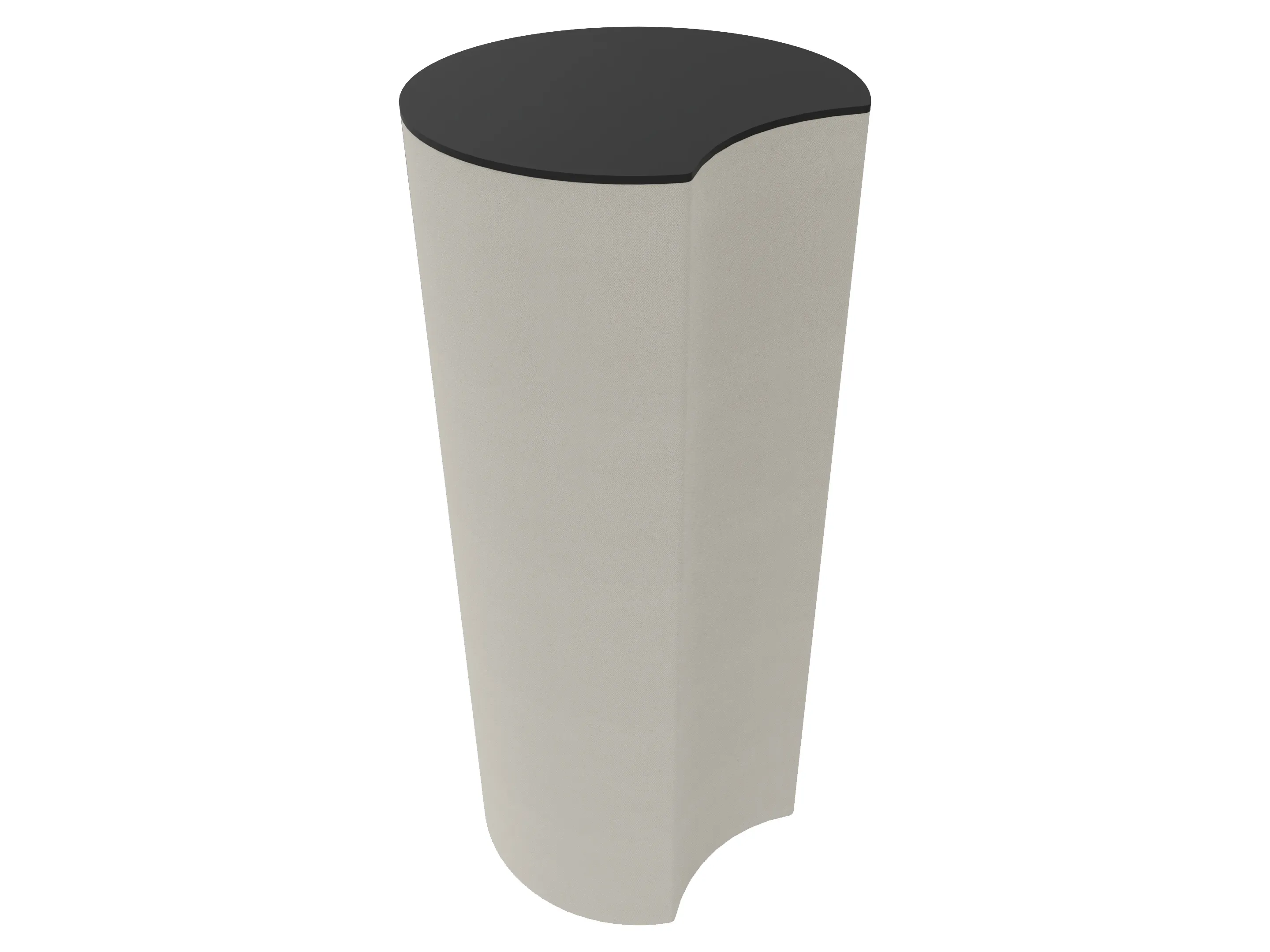 Volledig gestoffeerde en koppelbare akoestische module met vlak oppervlak voor decoratie op te plaatsen. Ø 310mm, hoogte 900mm.